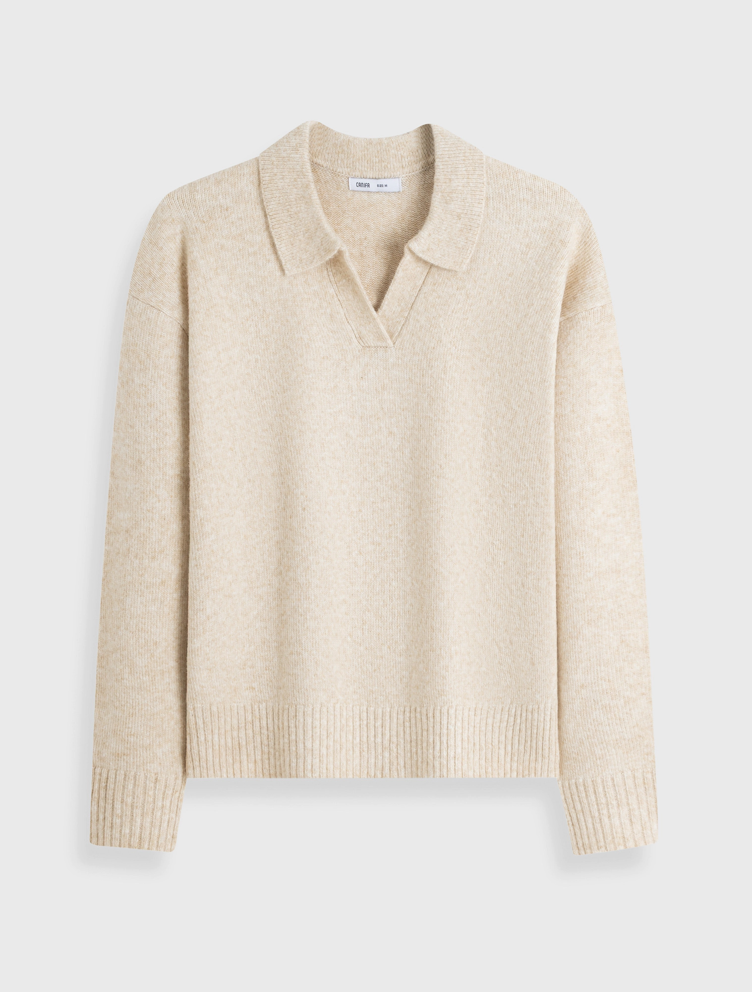 Áo polo nữ dài tay, dáng rộng vừa.