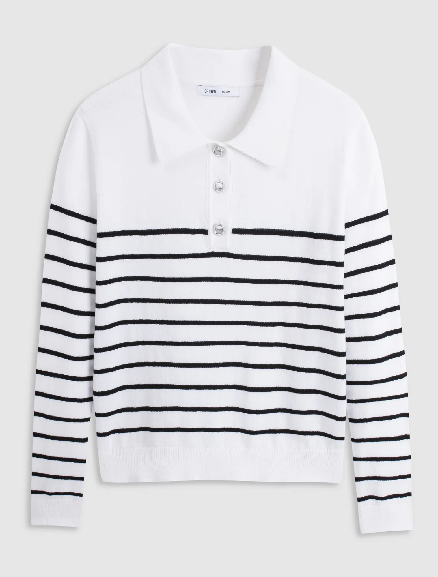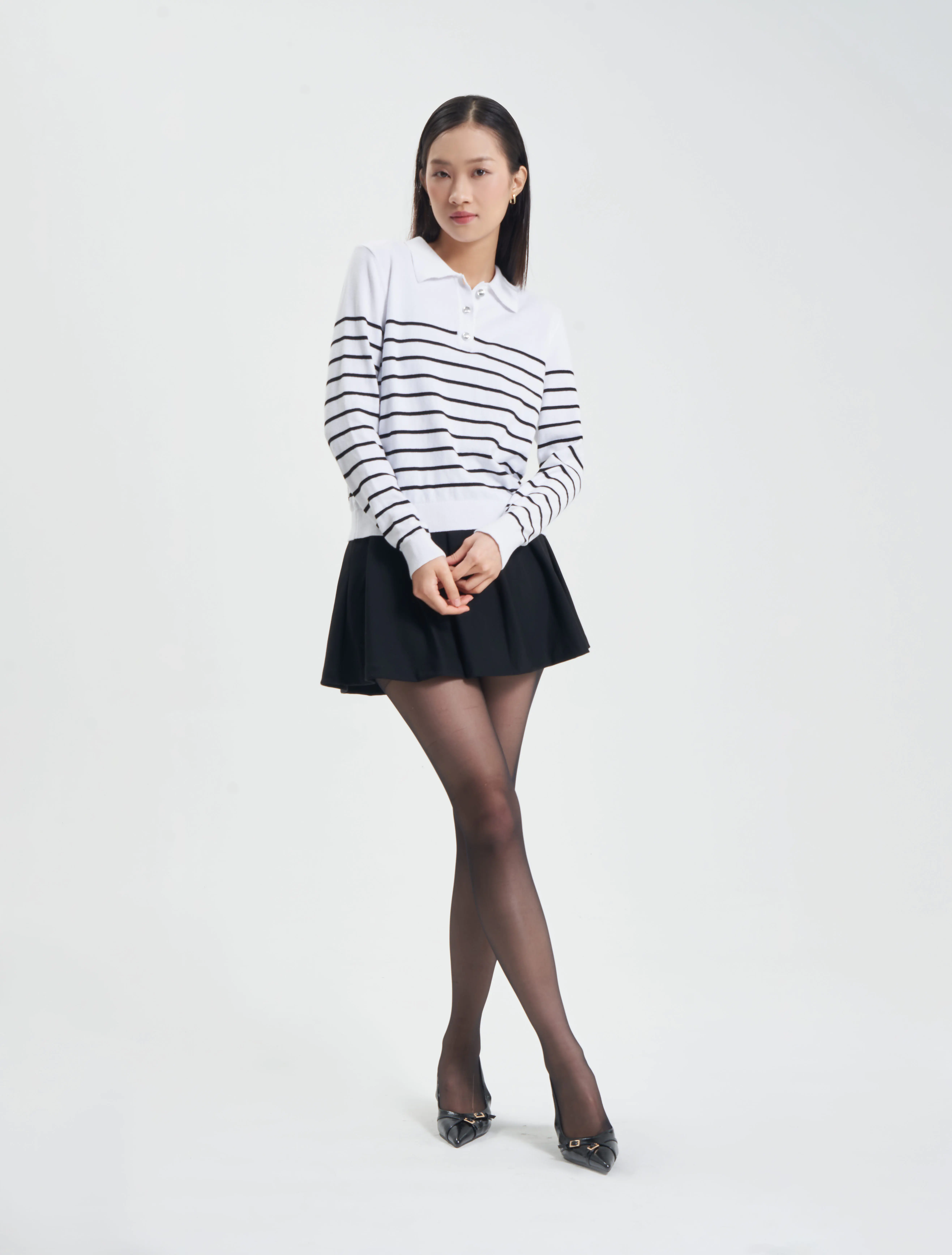 Áo len polo nữ dài tay, dáng áo rộng vừa, chất liệu