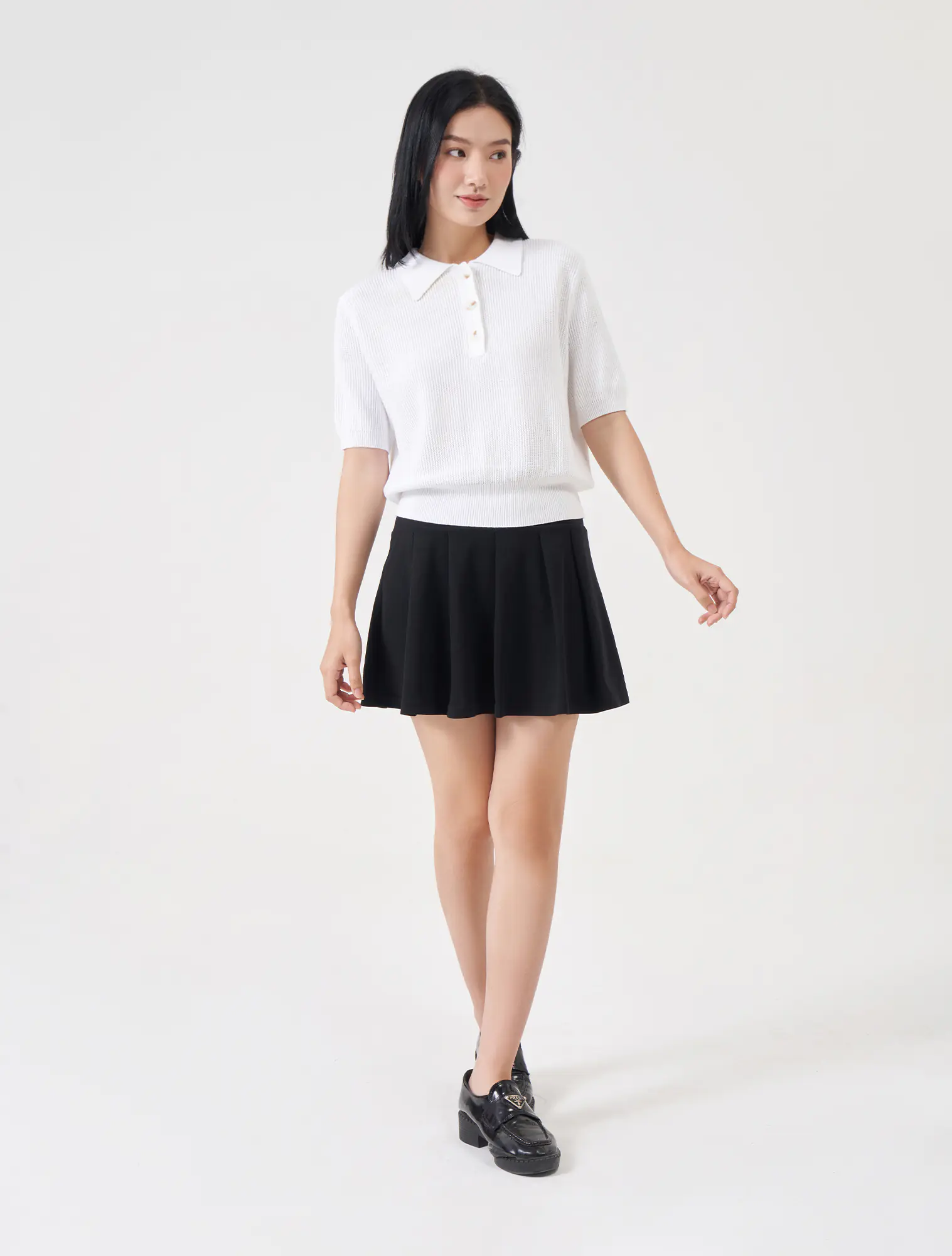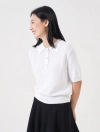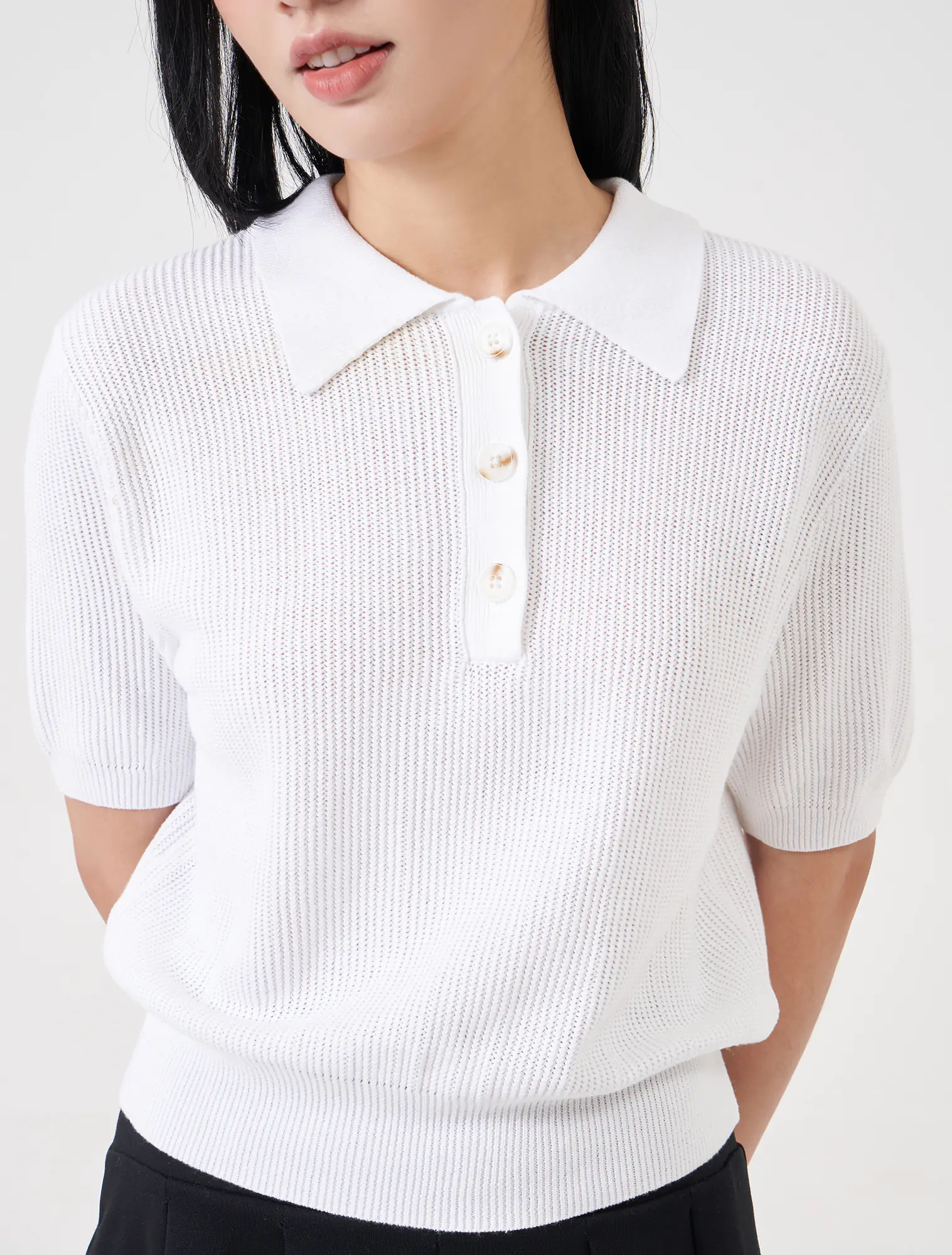 Áo len polo nữ cộc tay, dáng áo rộng vừa, chất liệu và kiểu dáng phù hợp với thời tiết giao mùa, hoàn cảnh sử dụng linh hoạt.