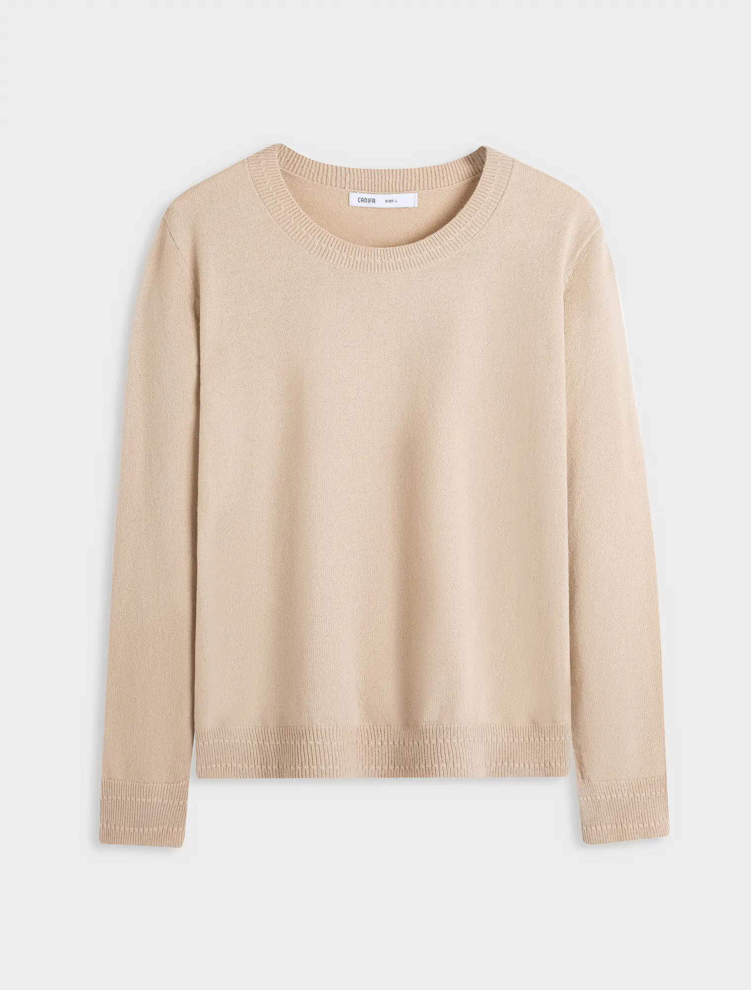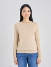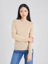 Áo len dài tay nữ cổ tròn dáng rộng vừa, chi tiết kiểu ở cổ tay và gấu áo. Chất liệu mỏng nhẹ, có khả năng giữ ấm tốt.