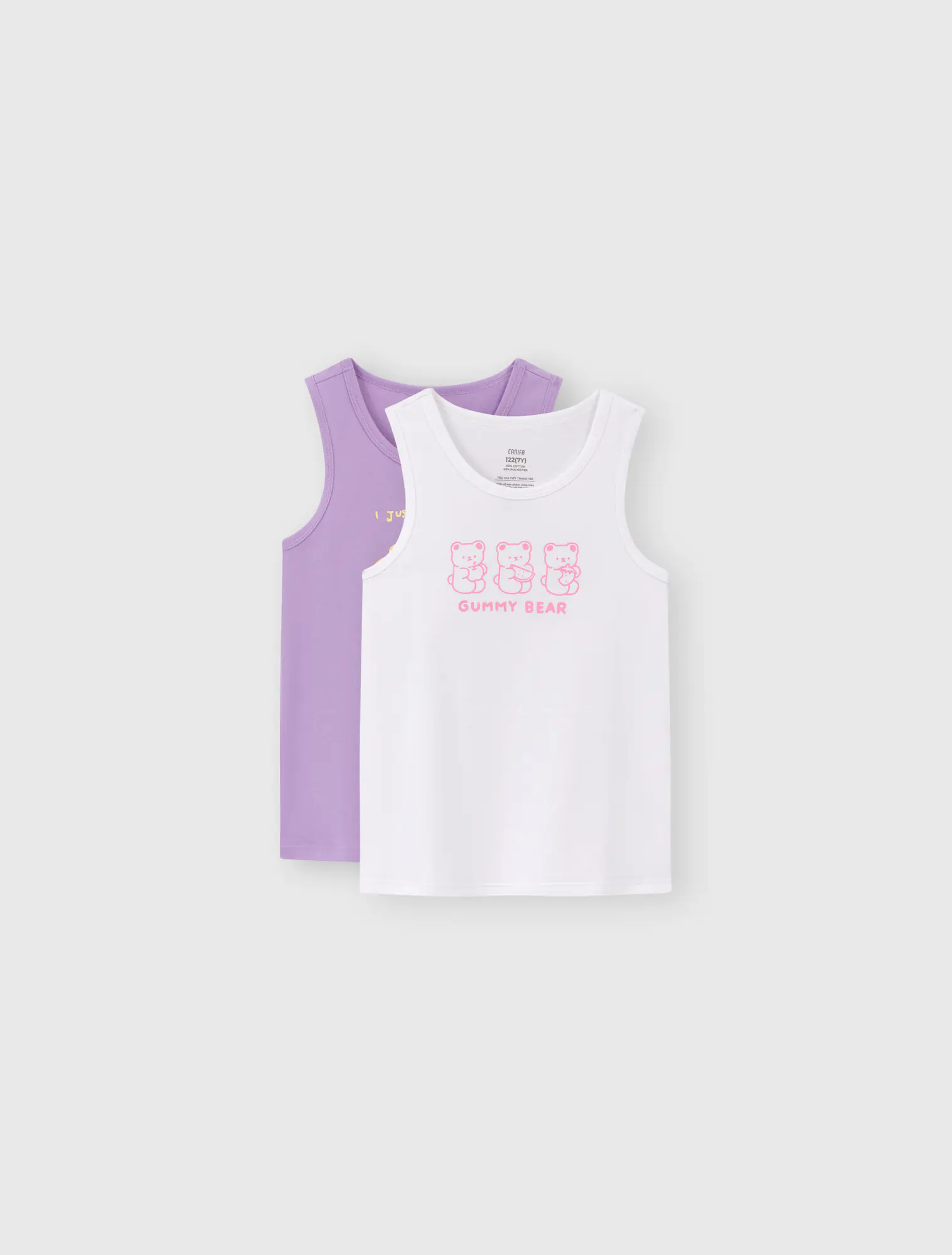 Pack áo ba lỗ mặc nhà bé gái - 2 chiếc. Kiểu dáng cơ bản dế sử dụng, màu sắc tươi sáng ngọt ngào, hình in dễ thương phù hợp bé gái.