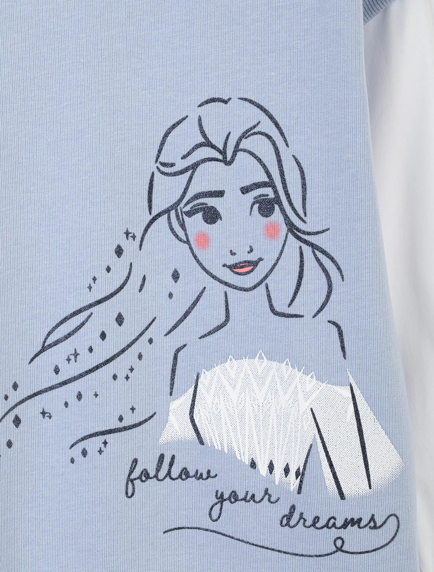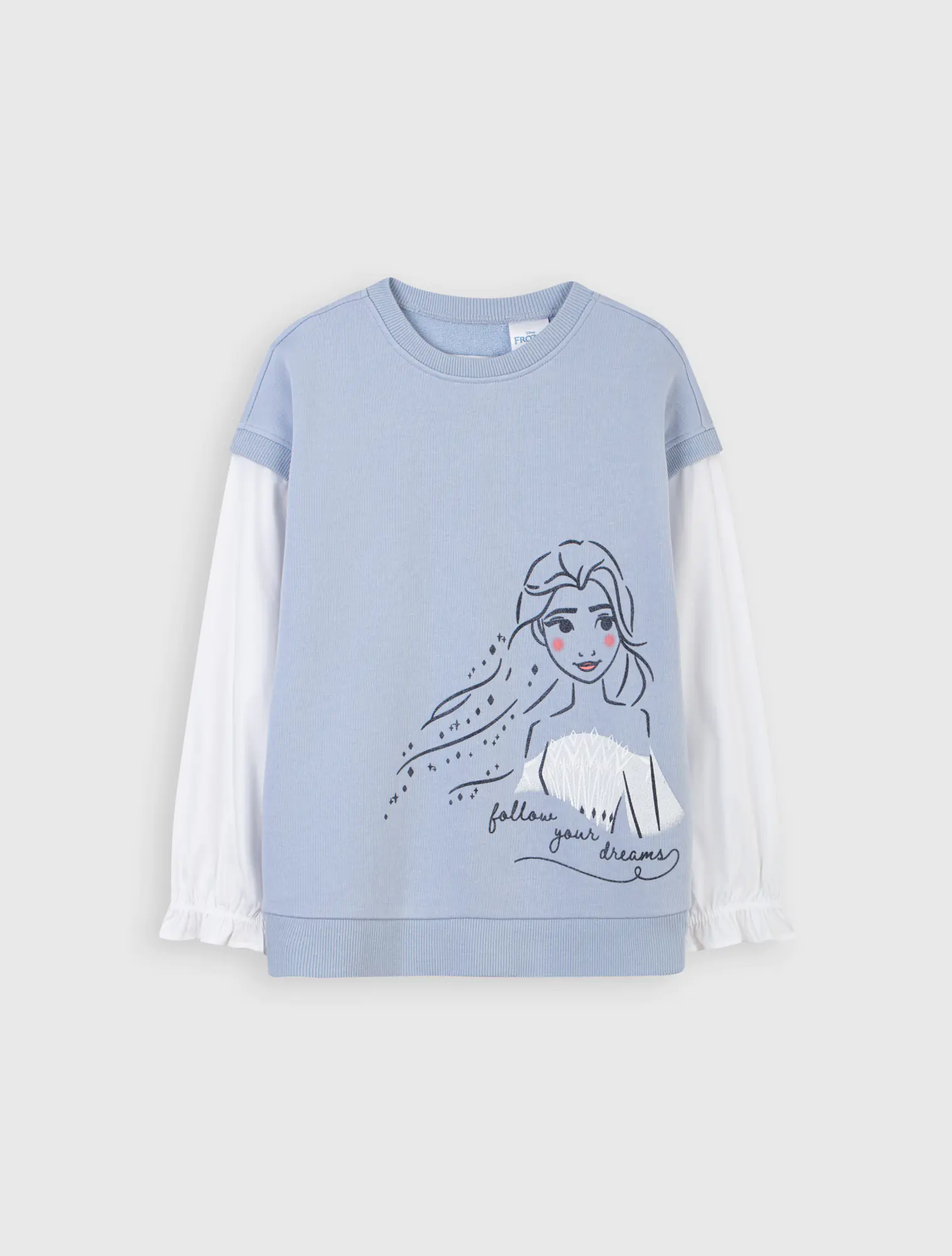 cổ tròn, phối tay bằng dệt thoi, in frozen trước ngực
