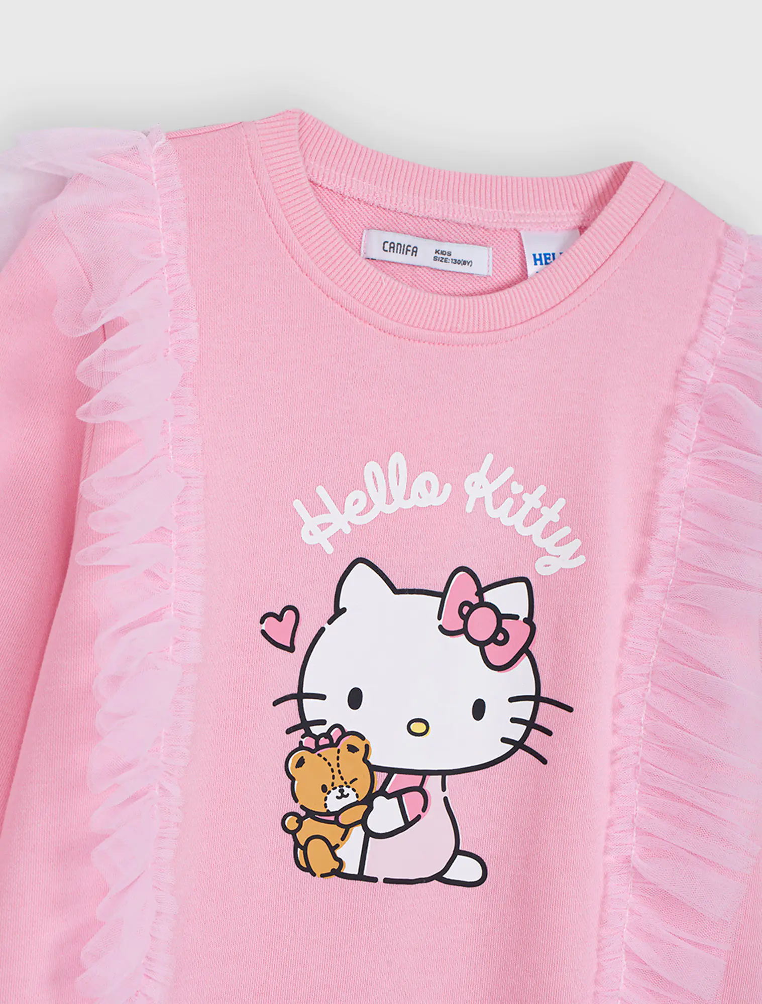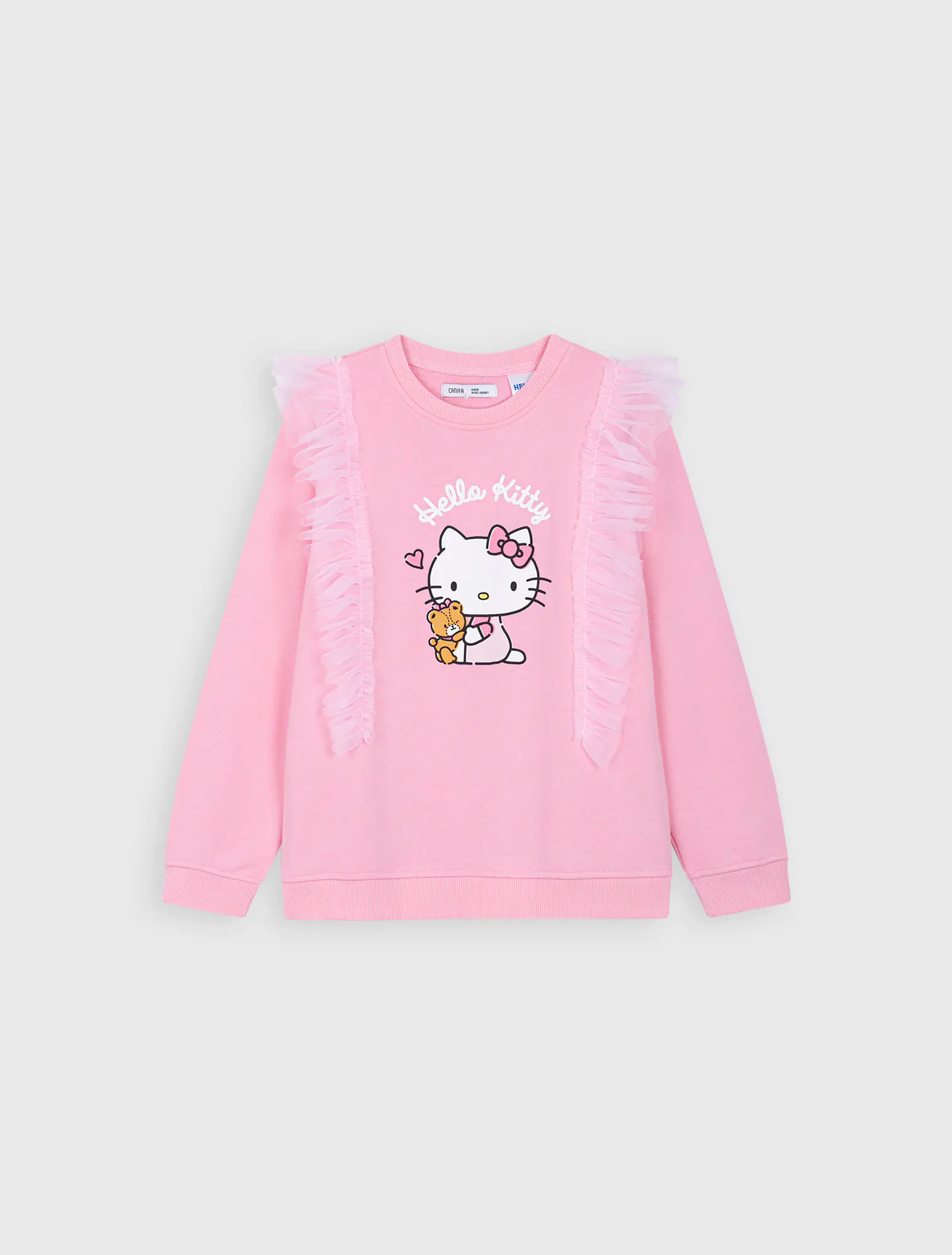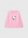 Áo nỉ bé gái bèo vai dài tay có hình in Hello Kitty