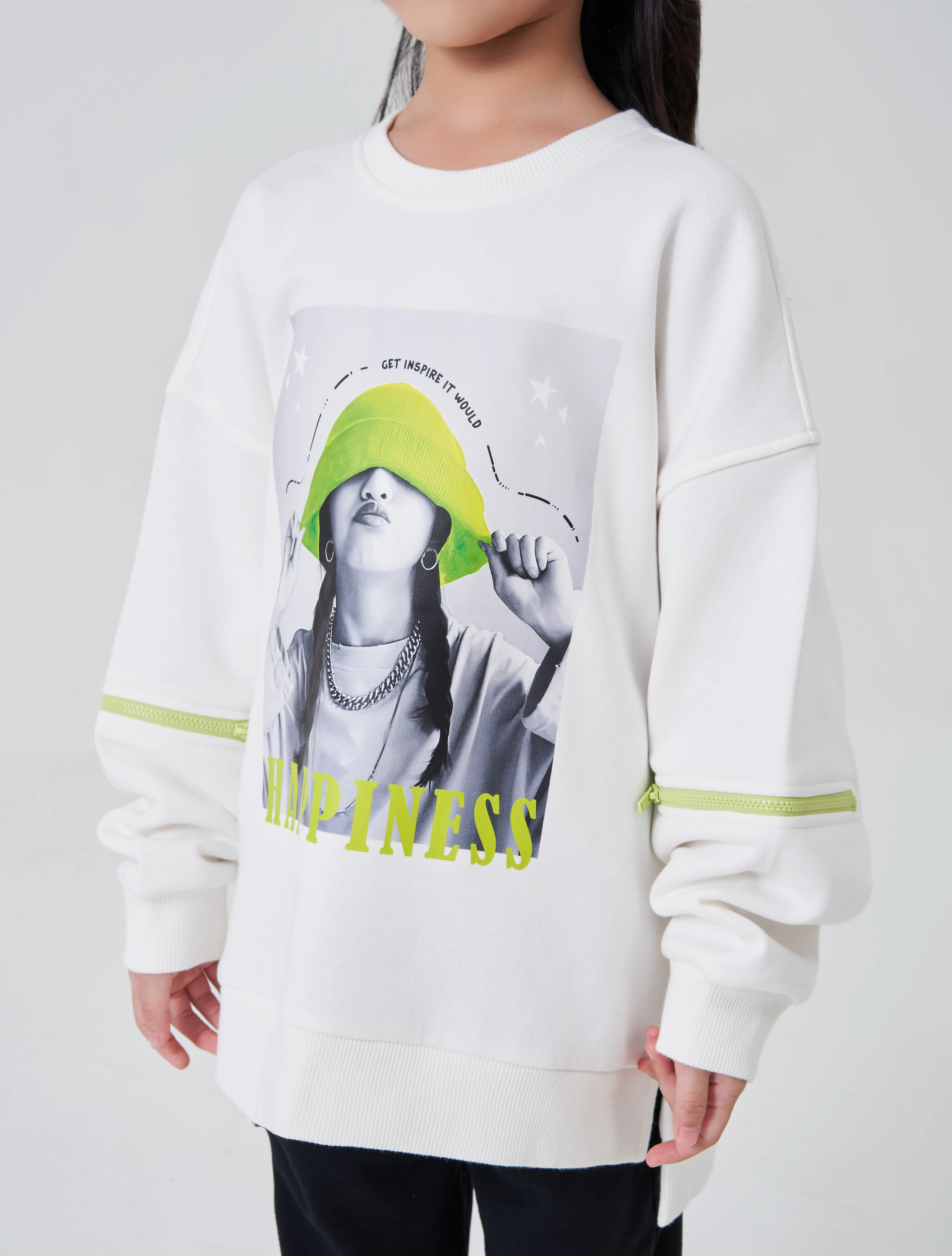 Áo nỉ bé gái có hình in. Phong cách sport, chất liệu nỉ dày dặn ấm áp cho mùa đông, phom dáng oversize thoải mái. Hình sport khỏe khoắn năng động phù hợp cho bé trong nhiều hoàn cảnh sử dụng.