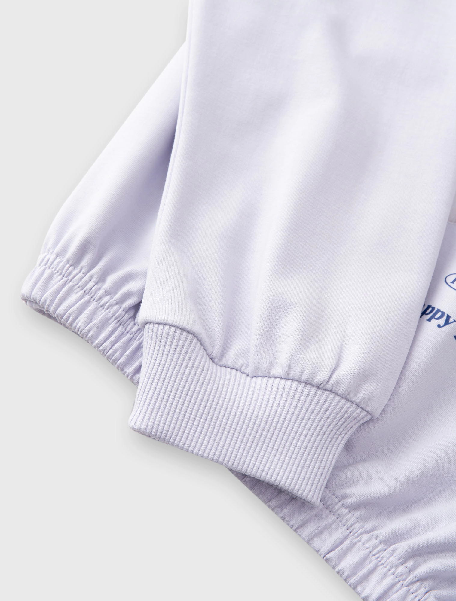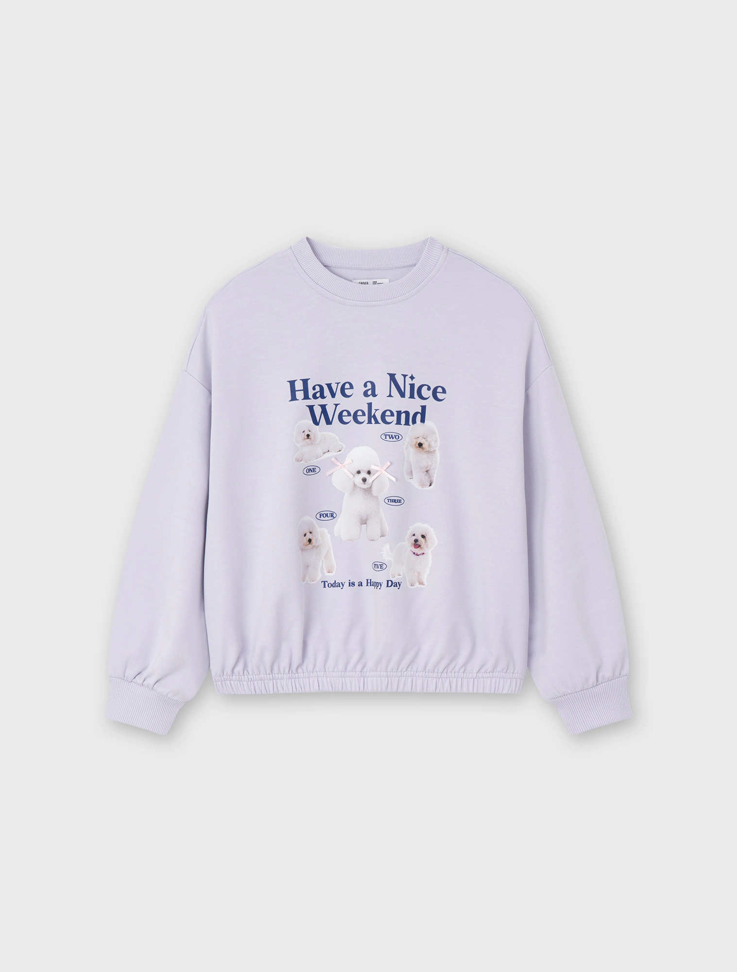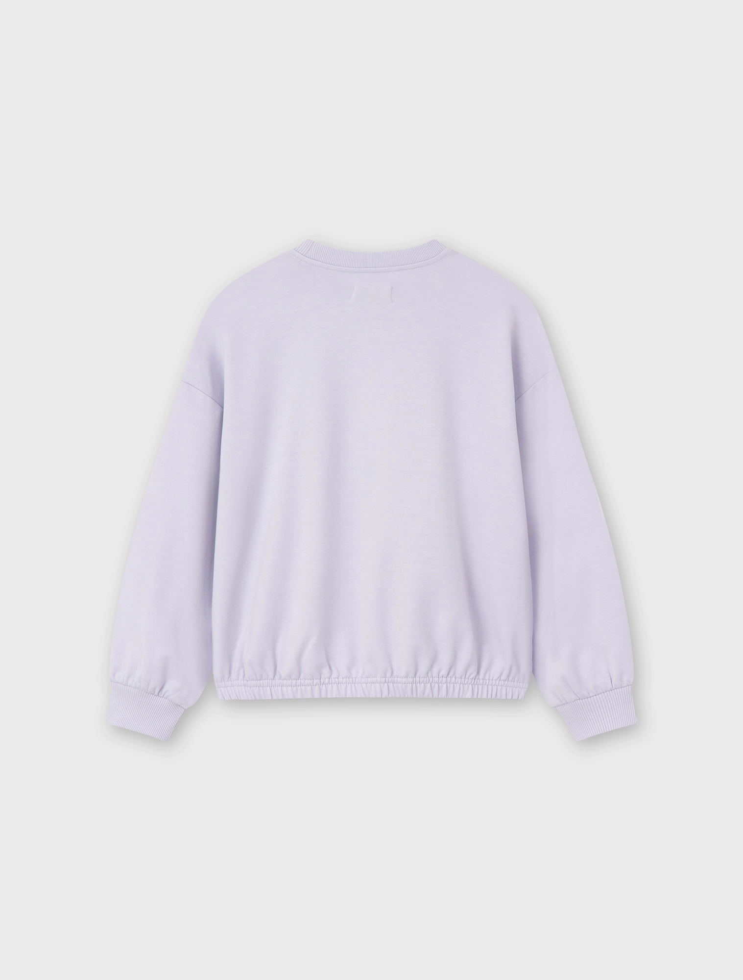 Áo nỉ bé gái có hình in, gấu áo bo chun gọn gàng.