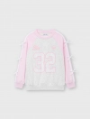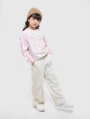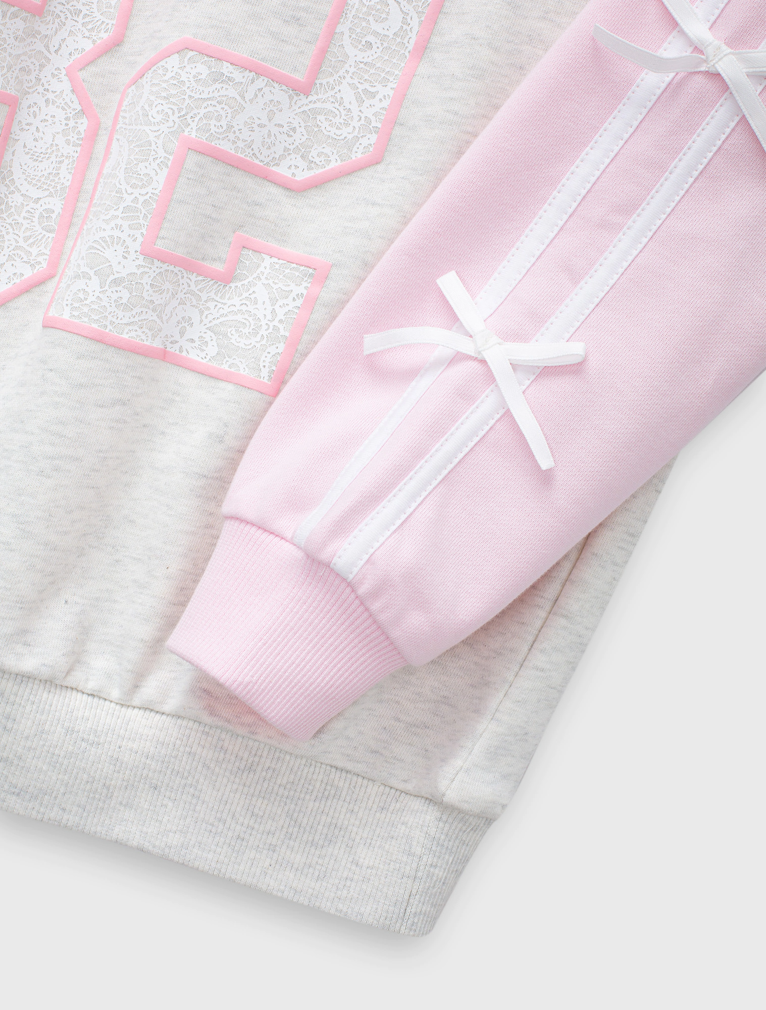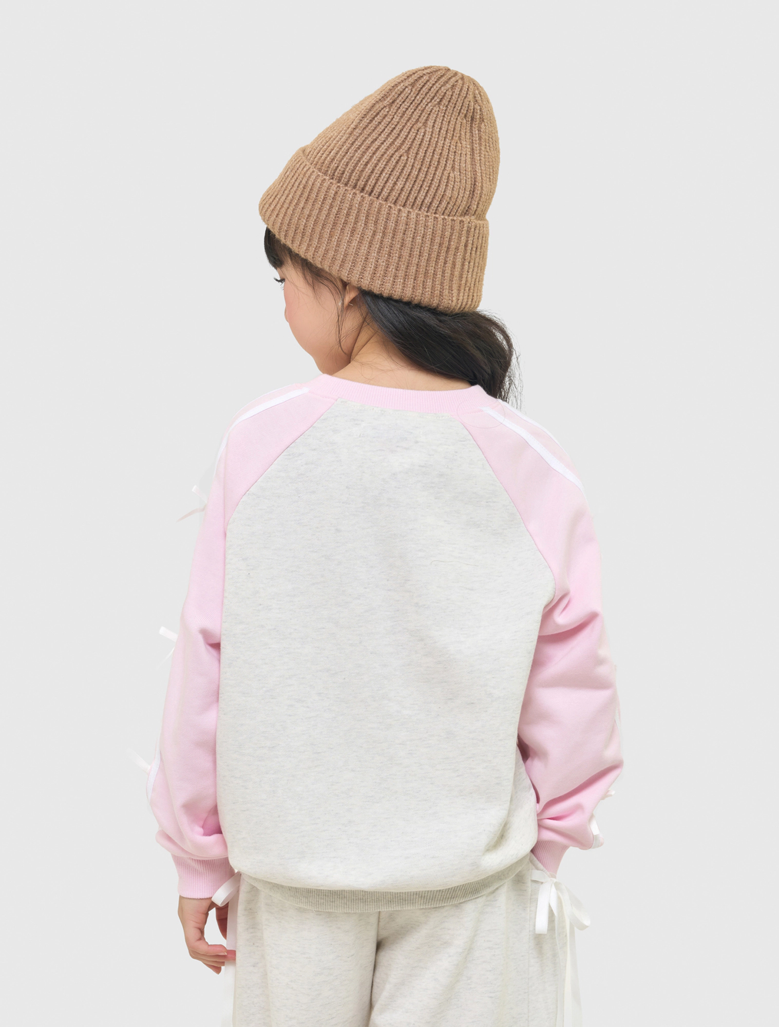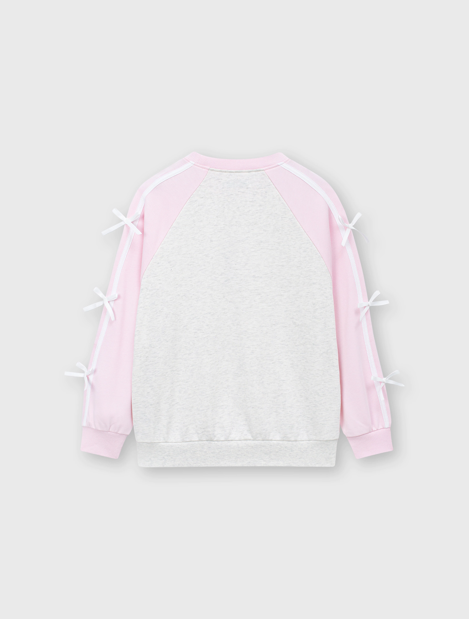 Áo nỉ bé gái có hình in, thiết kế phom dáng suông dễ mặc, tay áo Zaglang phối màu và trang trí dây đè dọc kèm nơ đính thời trang, cá tính, phù hợp với bé gái.