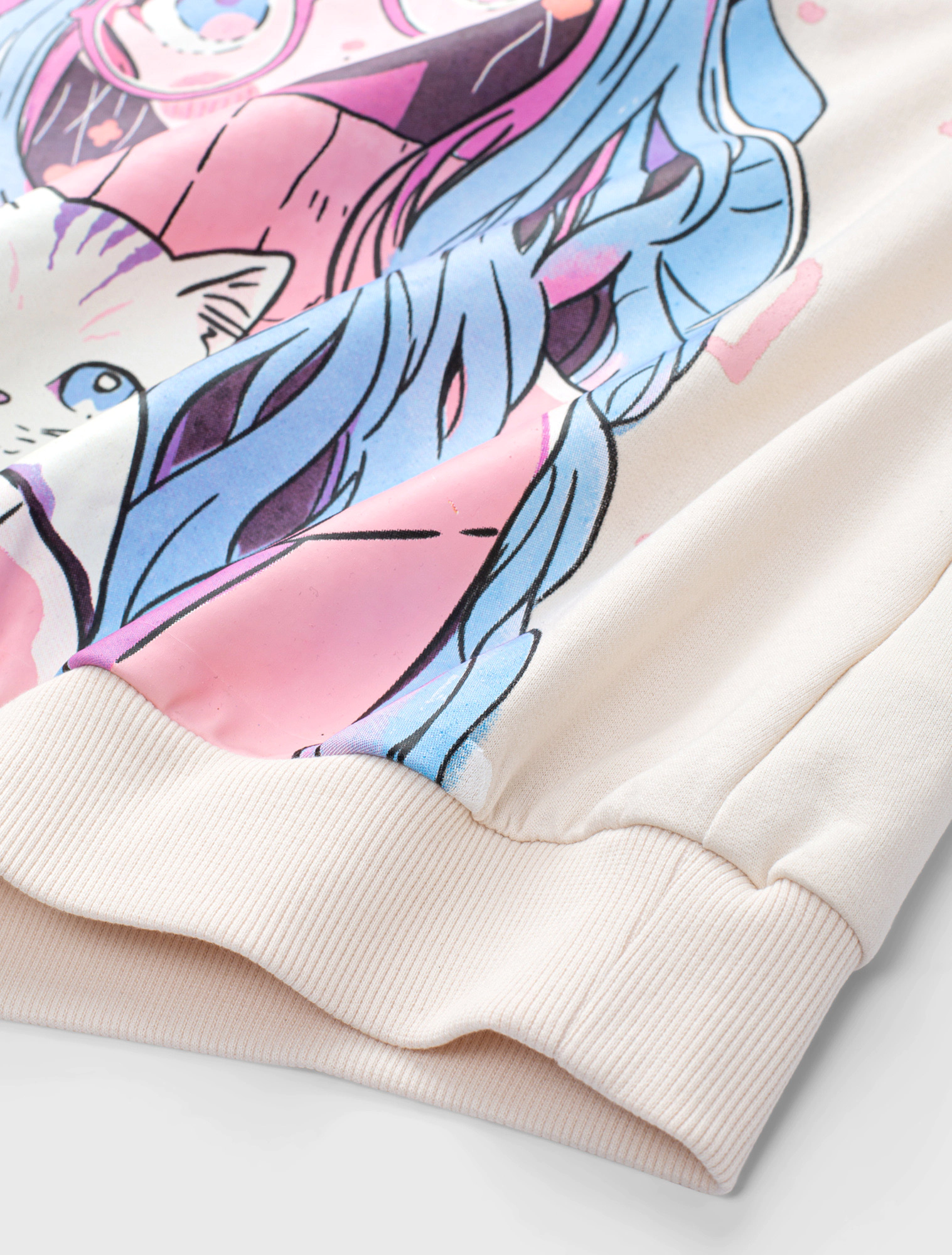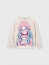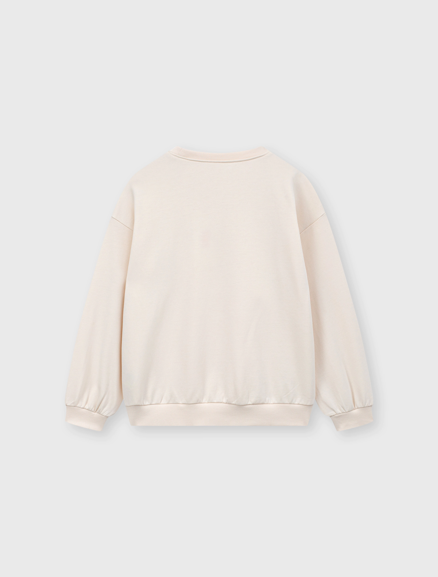 Áo nỉ bé gái. Phom áo cơ bản, cổ tròn dễ mặc. Màu sắc tươi sáng, hình in dễ thương phù hợp bé gái. Chất liệu Cotton pha mềm mại, giữ ấm tốt