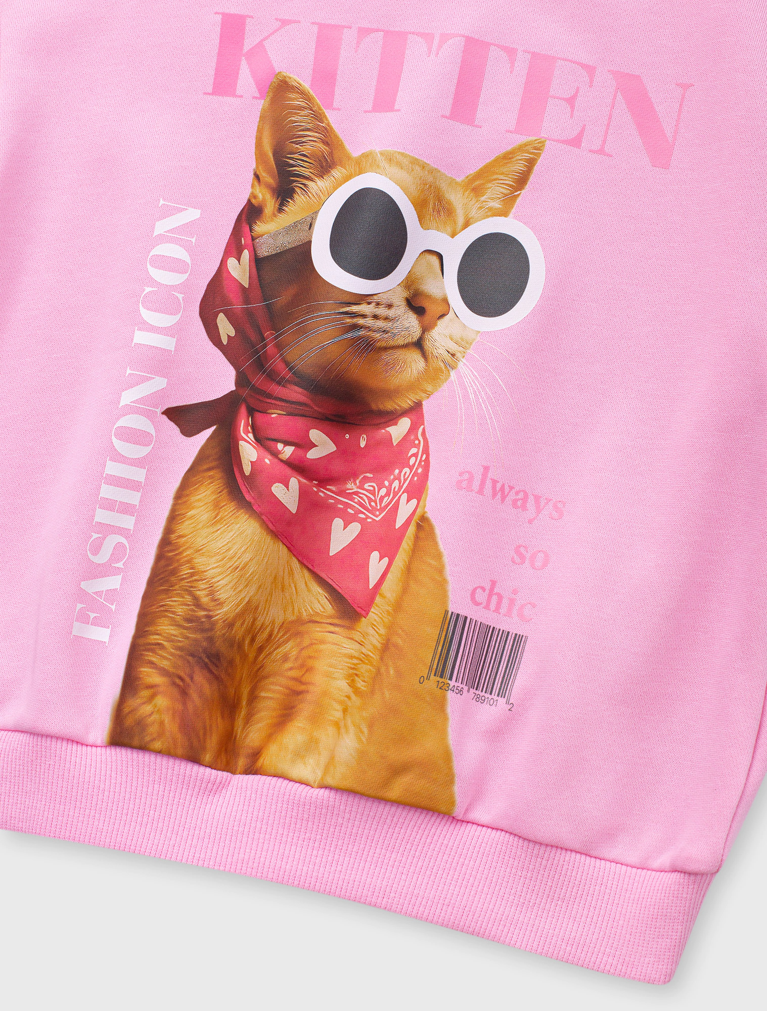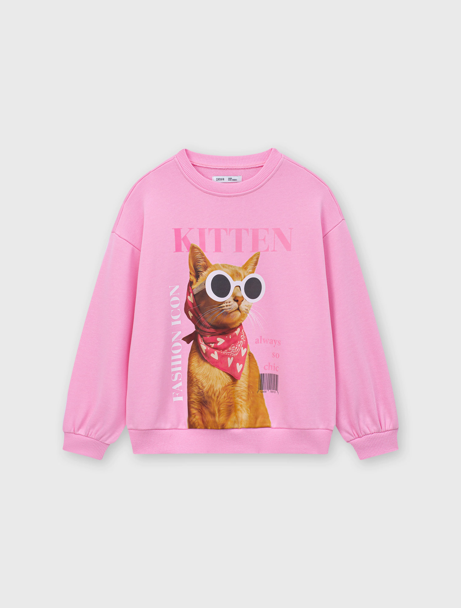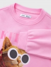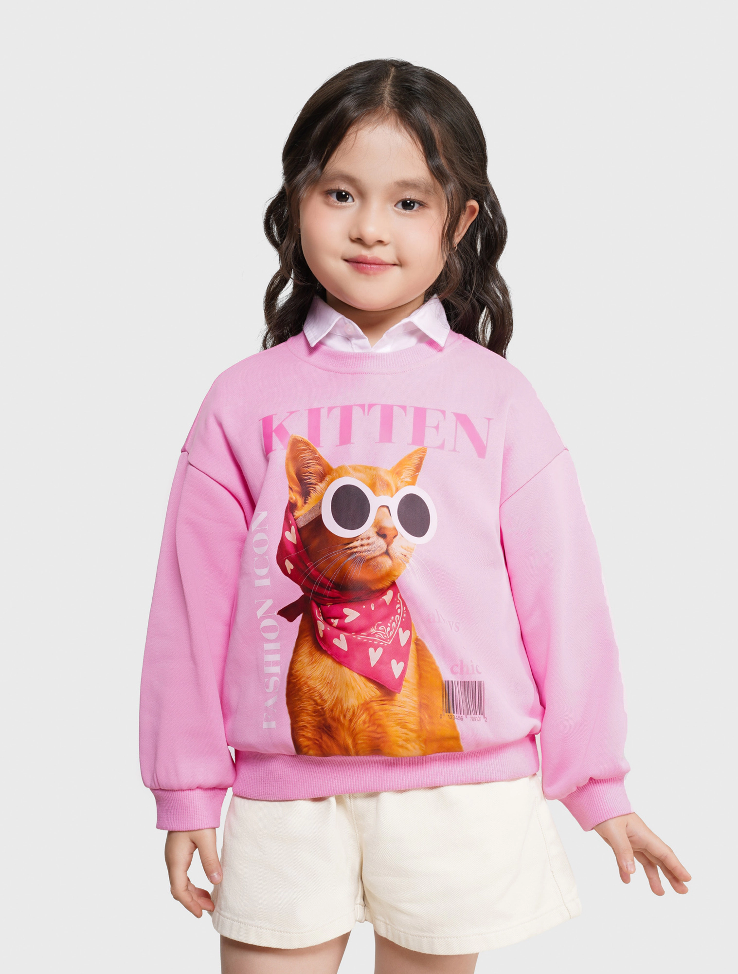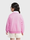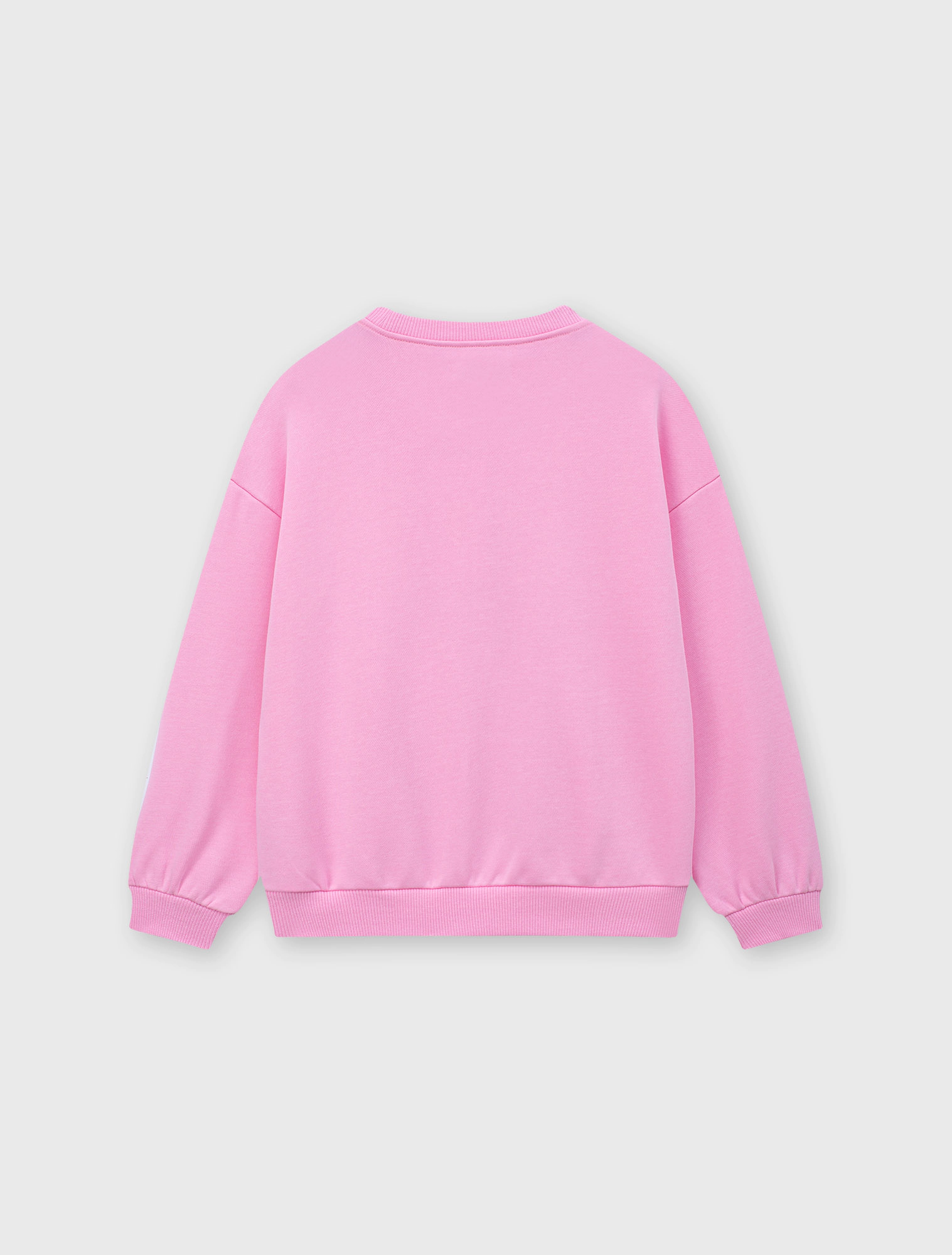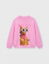 Áo nỉ bé gái. Phom áo cơ bản, cổ tròn dễ mặc. Màu sắc tươi sáng, hình in dễ thương phù hợp bé gái. Chất liệu Cotton pha mềm mại, giữ ấm tốt