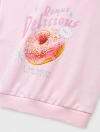 Áo nỉ bé gái. Phom áo cơ bản, cổ tròn dễ mặc. Màu sắc tươi sáng, hình in dễ thương phù hợp bé gái. Chất liệu Cotton pha mềm mại, giữ ấm tốt