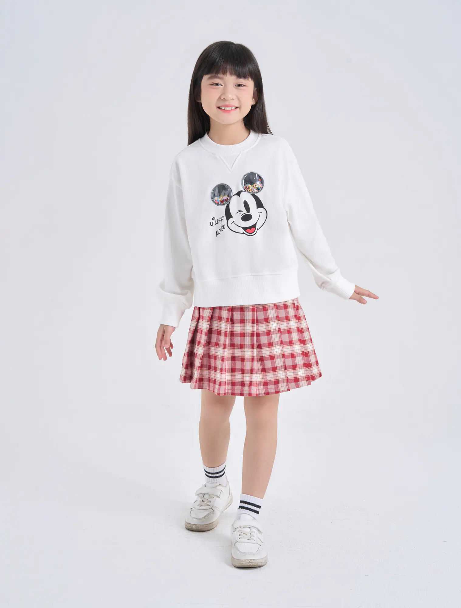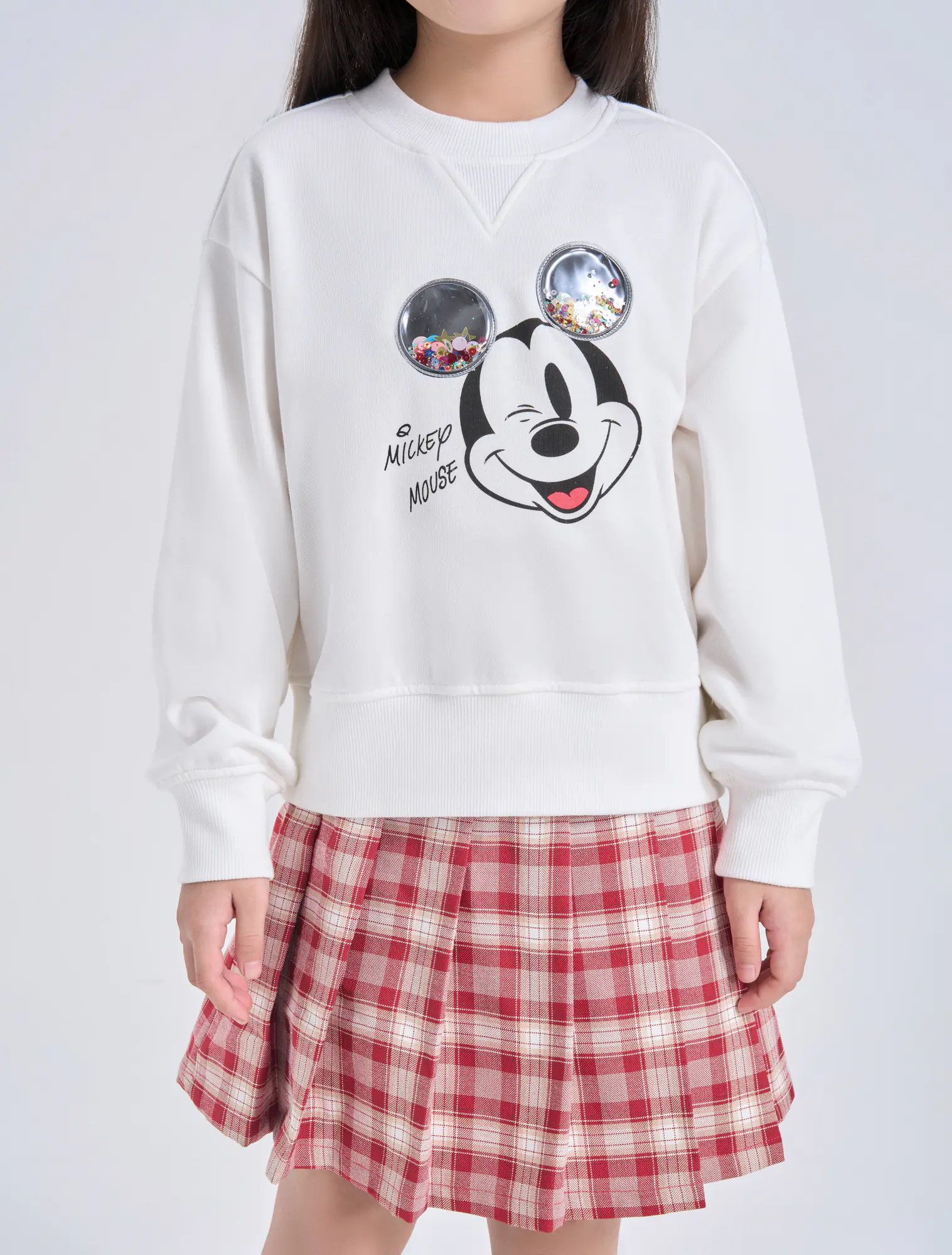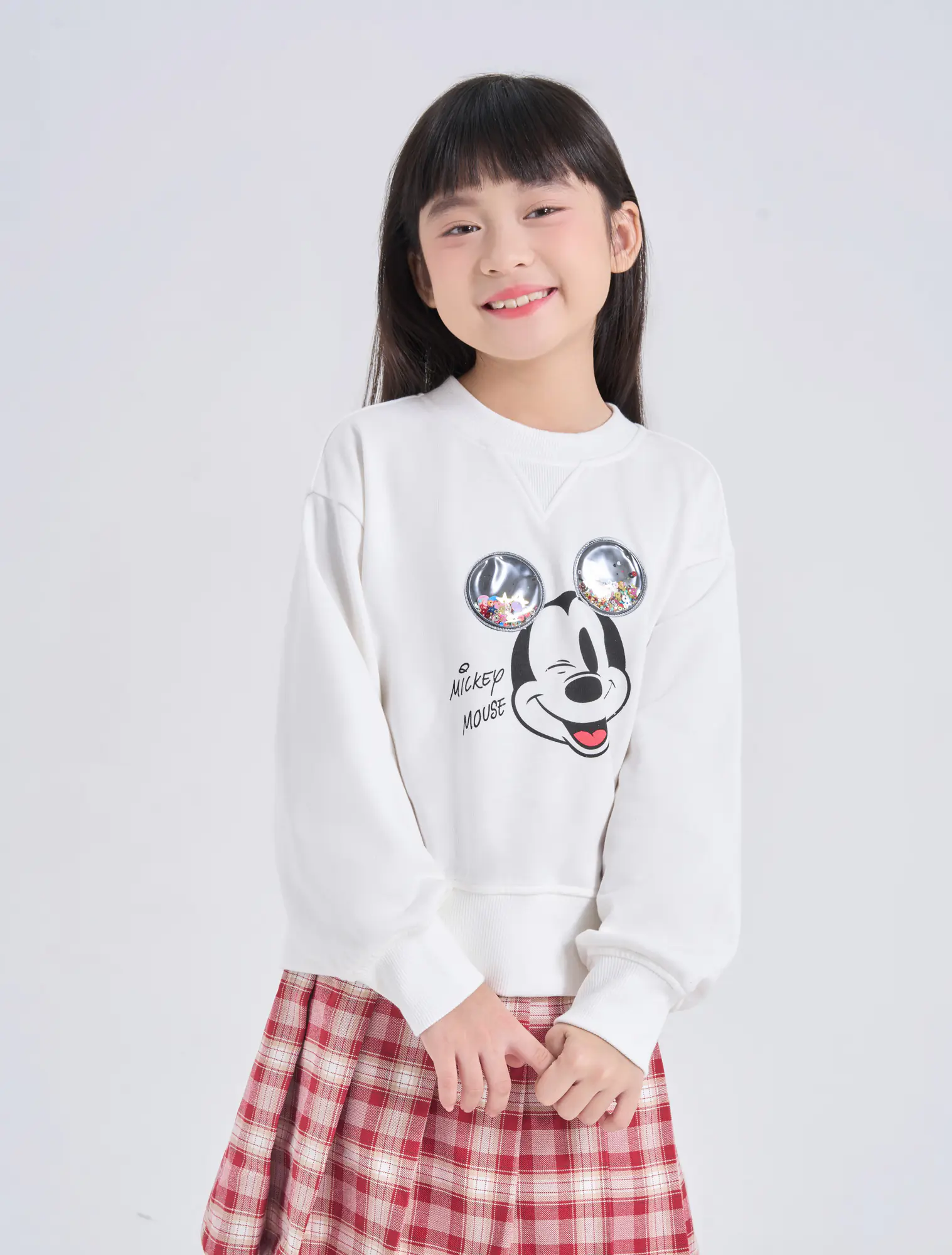 Áo nỉ bé gái kiểu dáng khỏe khoắn, năng động. Hình in Mickey dễ thương, màu sắc tươi sáng, phù hợp nhiều hoàn cảnh sử dụng, dễ kết hợp quần áo.