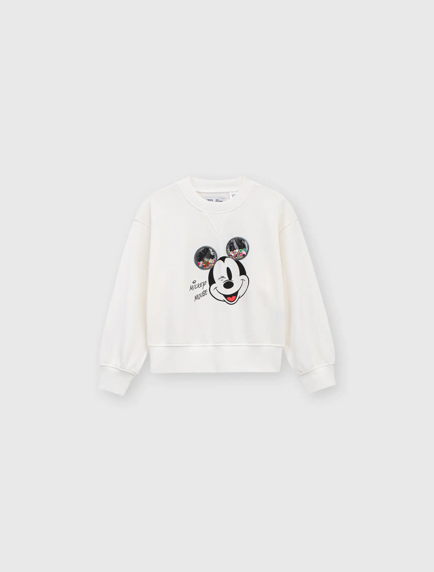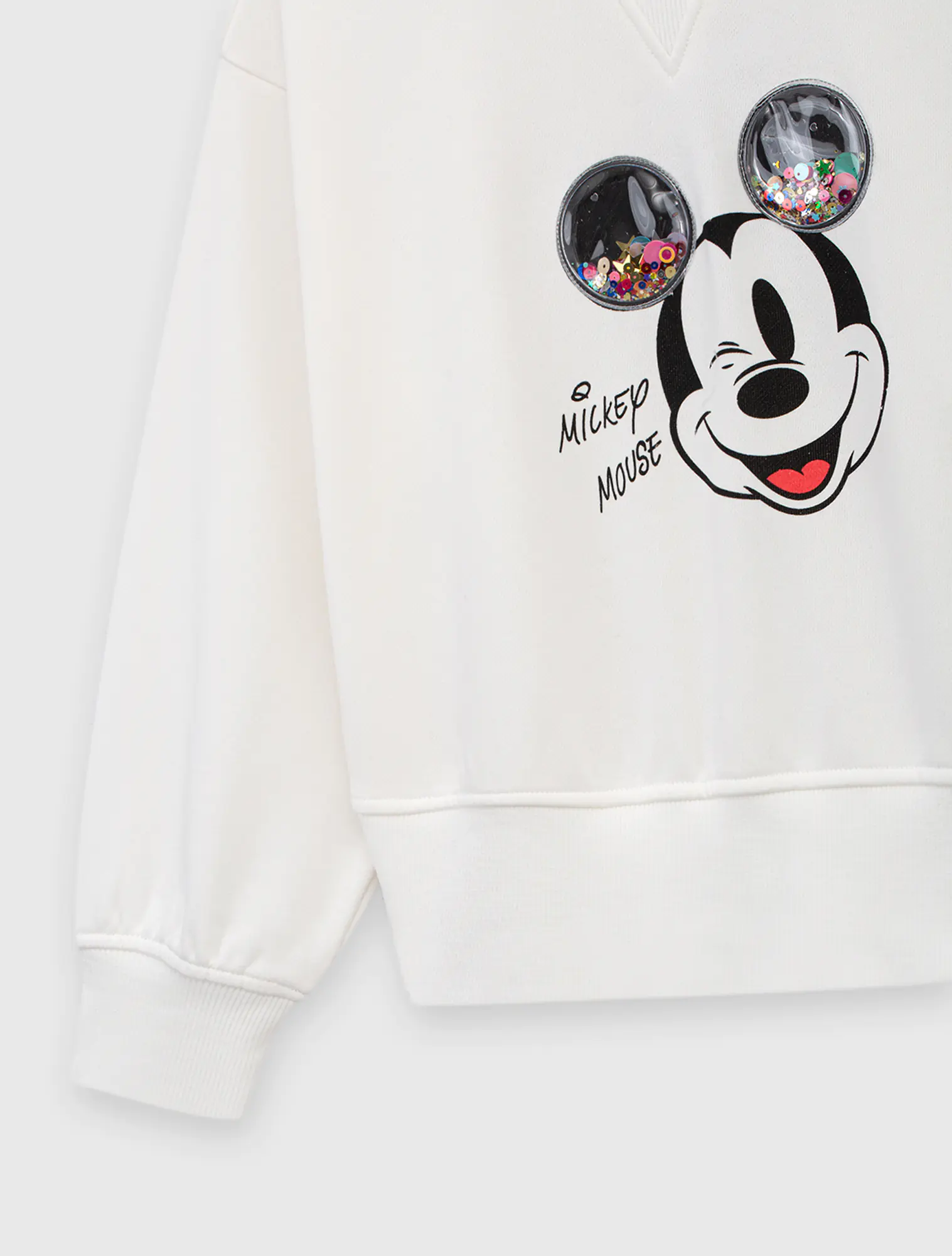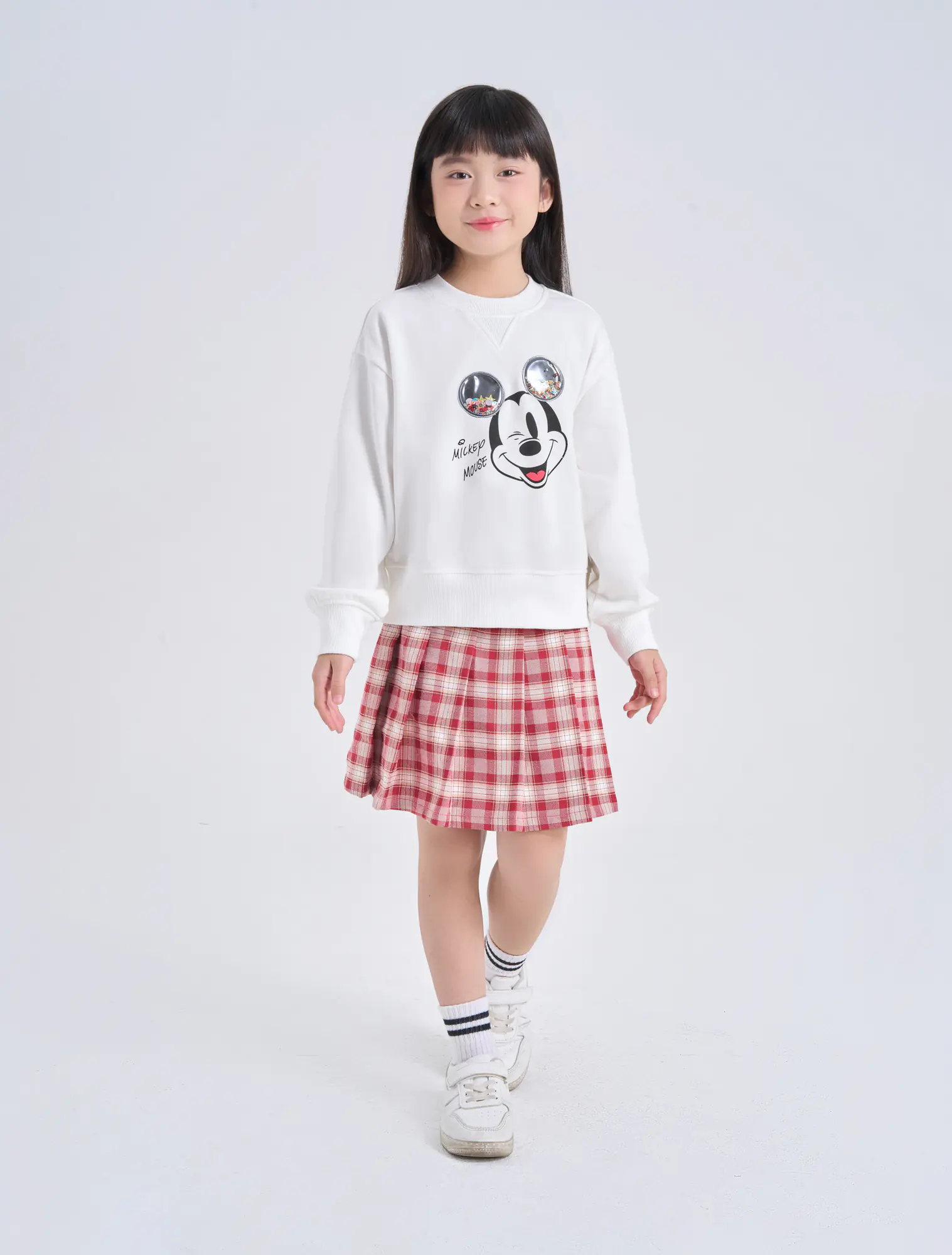 Áo nỉ bé gái kiểu dáng khỏe khoắn, năng động. Hình in Mickey dễ thương, màu sắc tươi sáng, phù hợp nhiều hoàn cảnh sử dụng, dễ kết hợp quần áo.