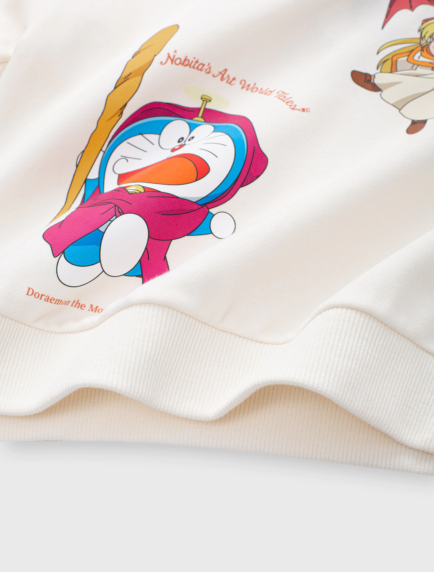 Áo nỉ vòng lông bé gái. Phom dáng cơ bản dễ mặc. Màu sắc tươi sáng, hình in Doraemon đáng yêu phù hợp bé gái. Chất liệu Cotton pha mềm mại giữ ấm tốt