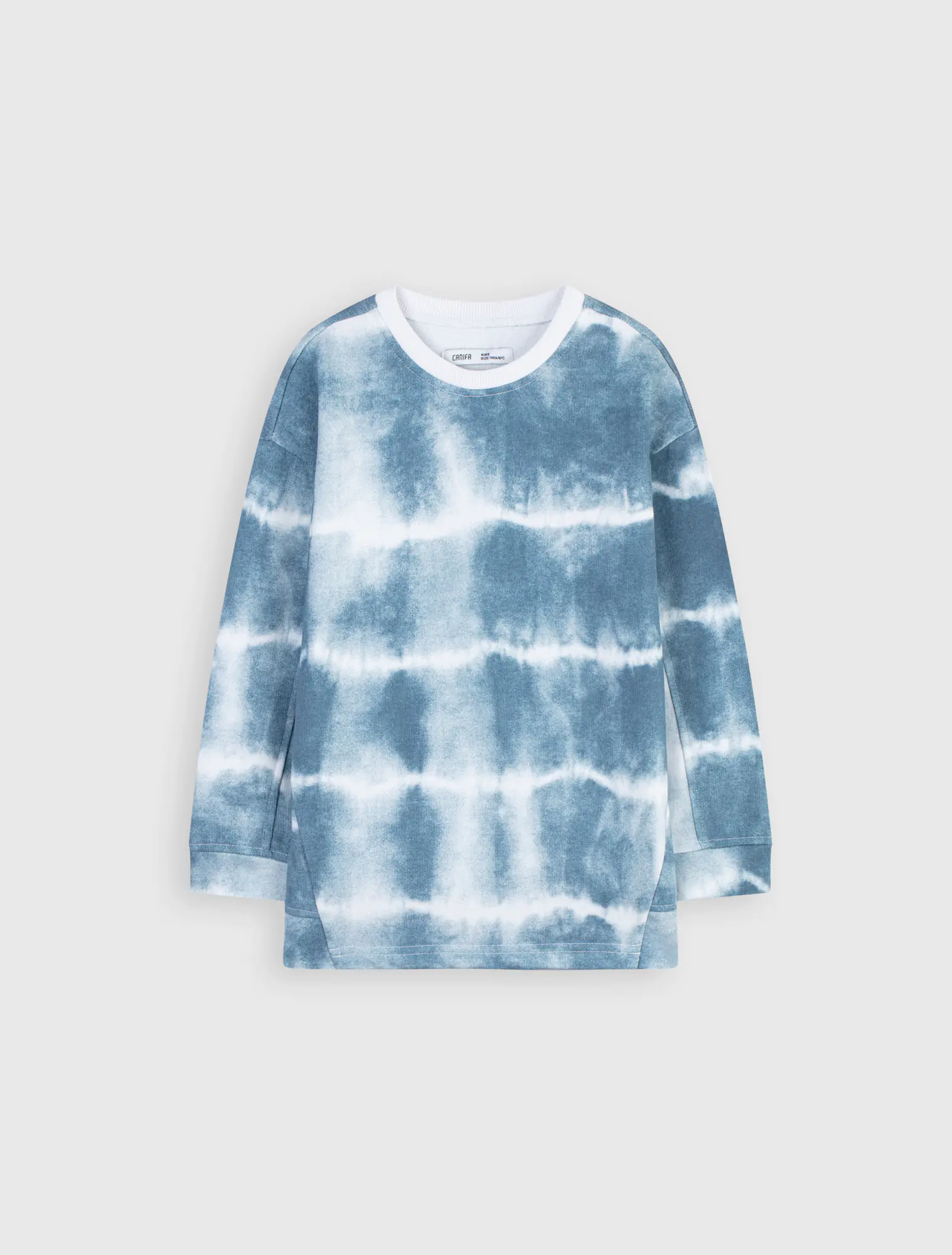 Áo nỉ bé trai cổ tròn dài tay in loang màu dáng suông