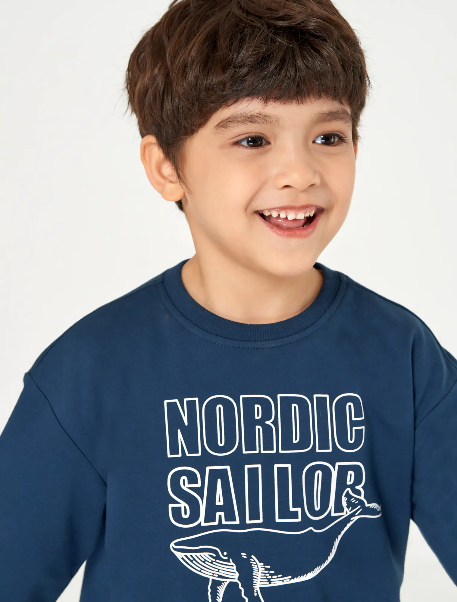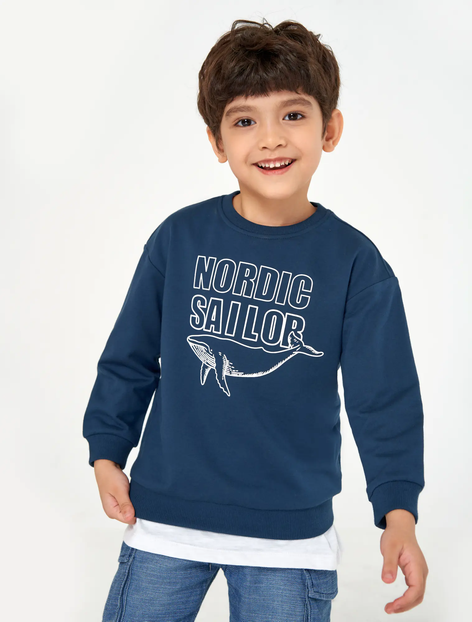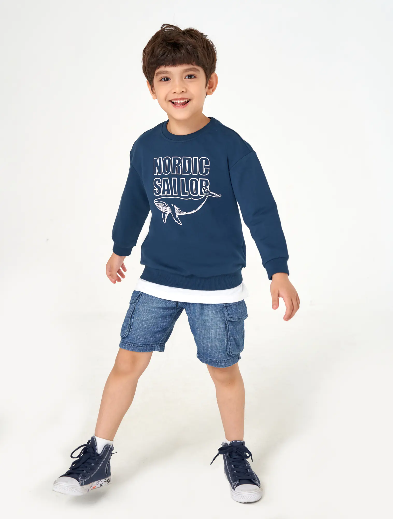 Áo nỉ bé trai cổ tròn dài tay có hình in