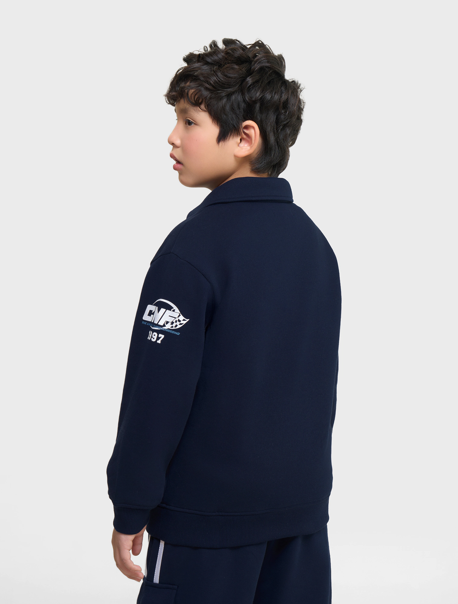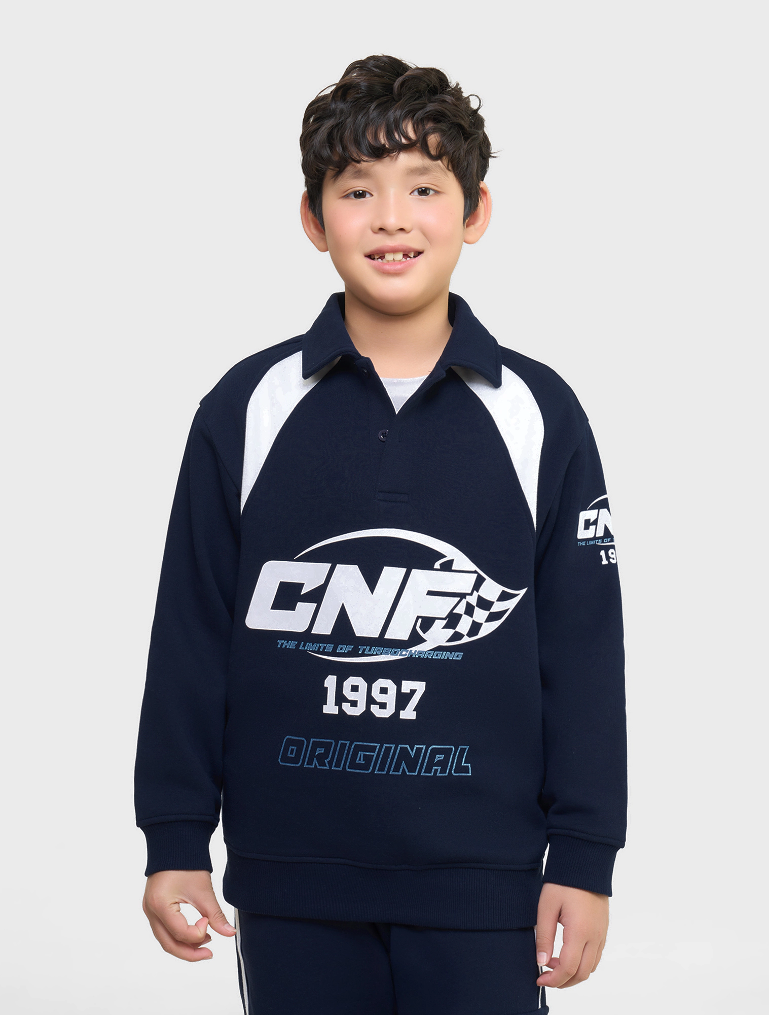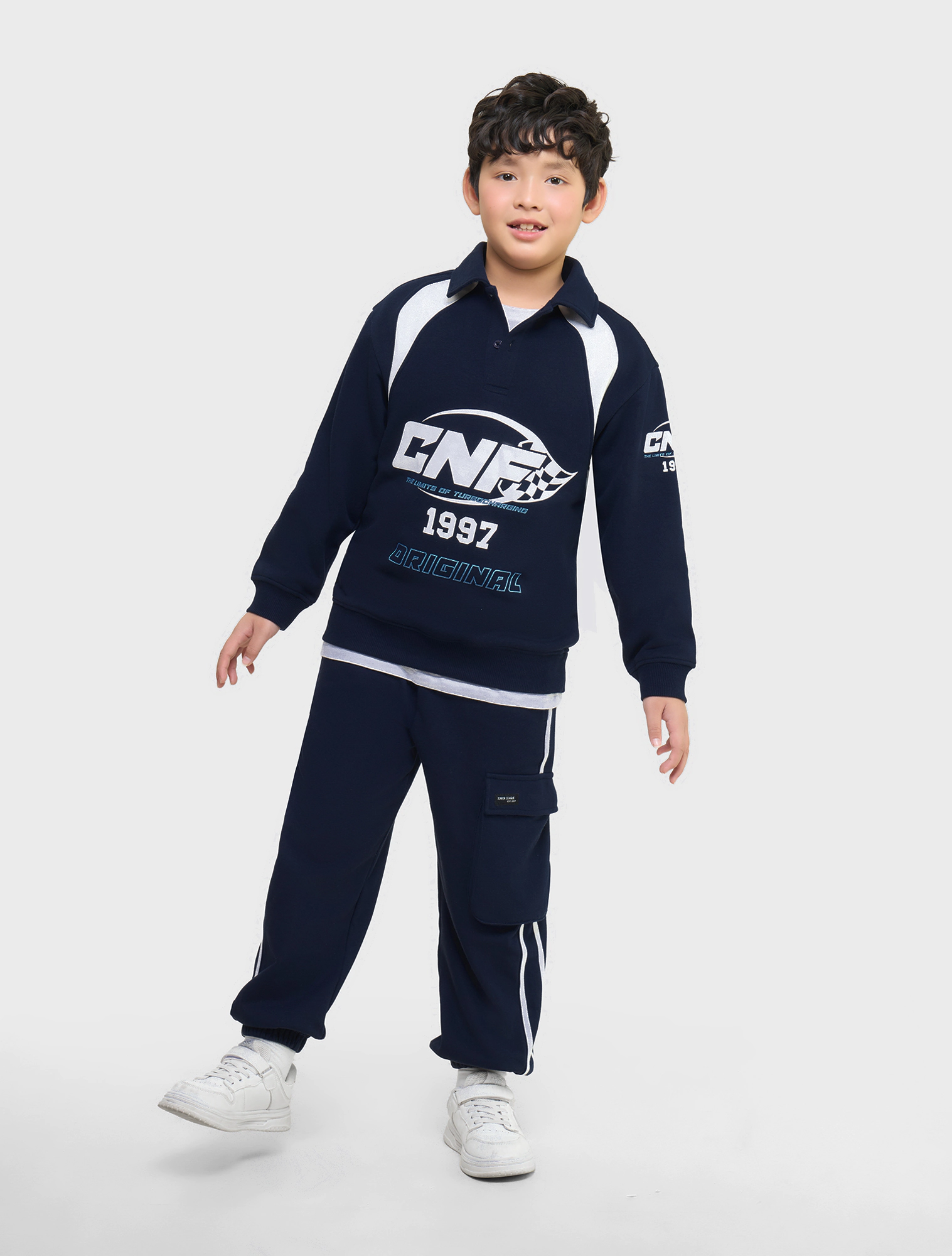 Áo nỉ bé trai có hình in, chất liệu cào bông, mix màu ngực áo, hình in sport khỏe khoắn năng động.