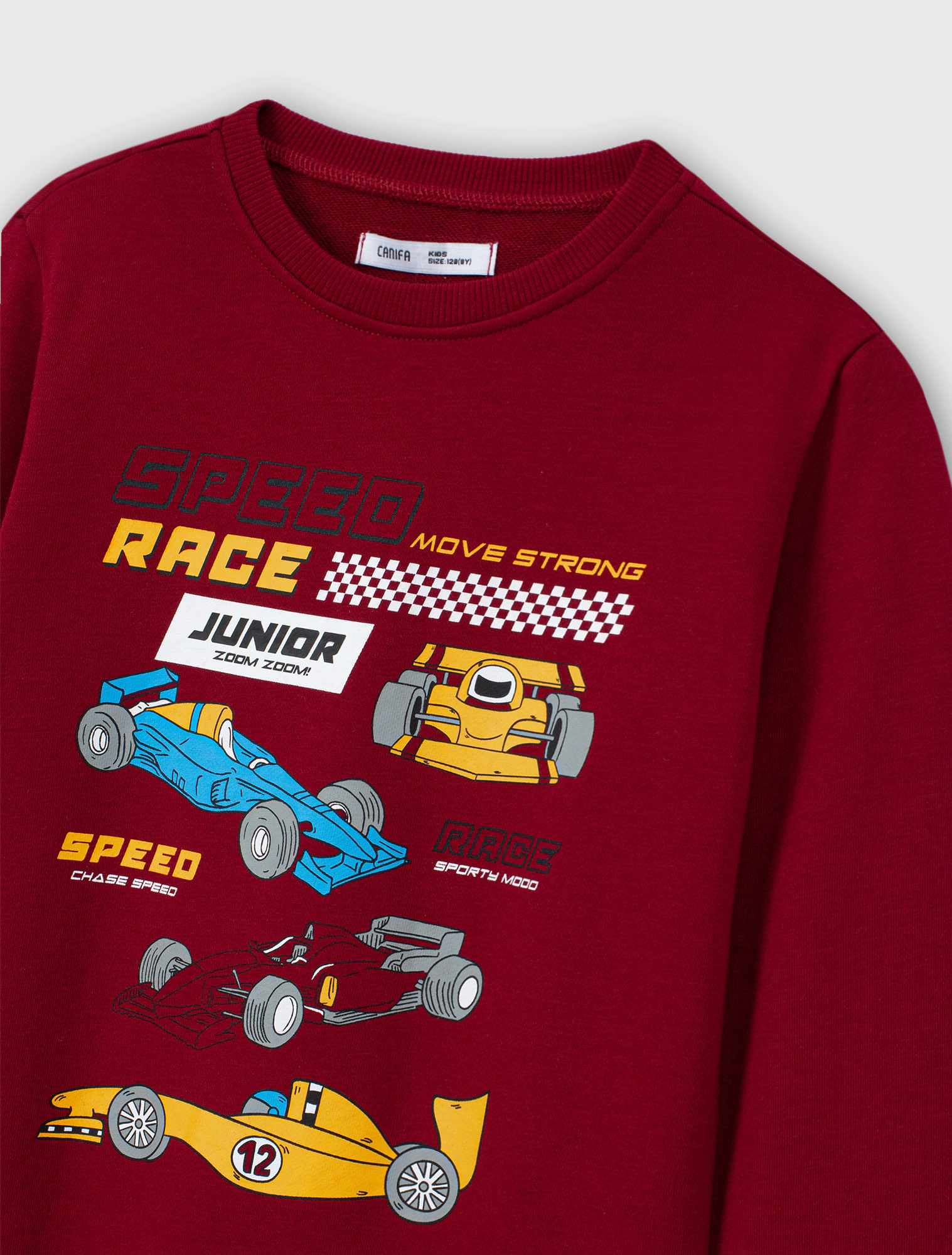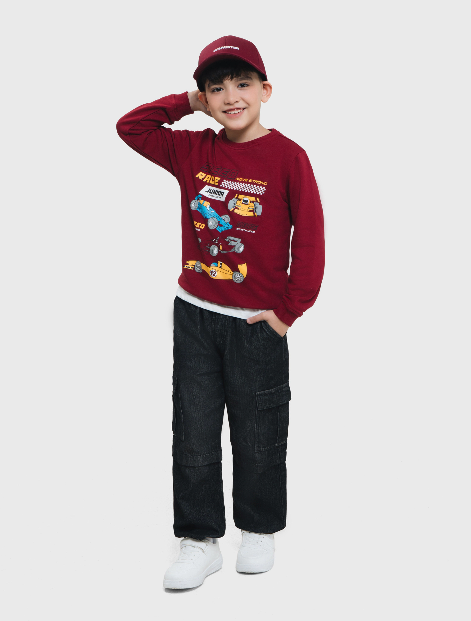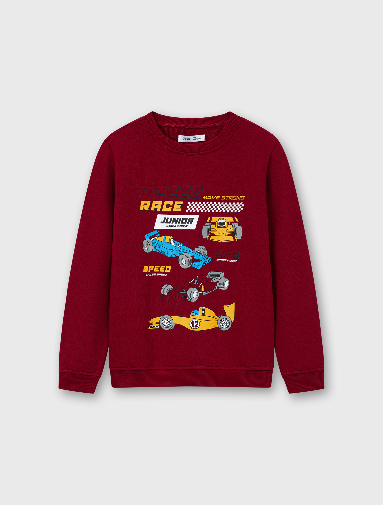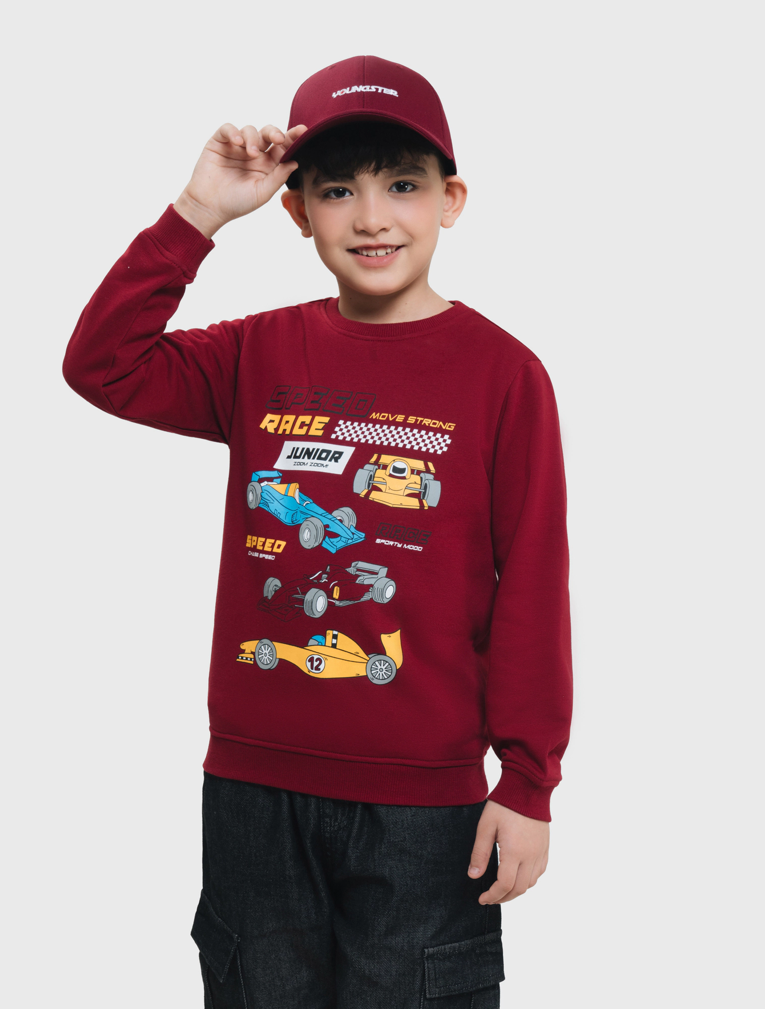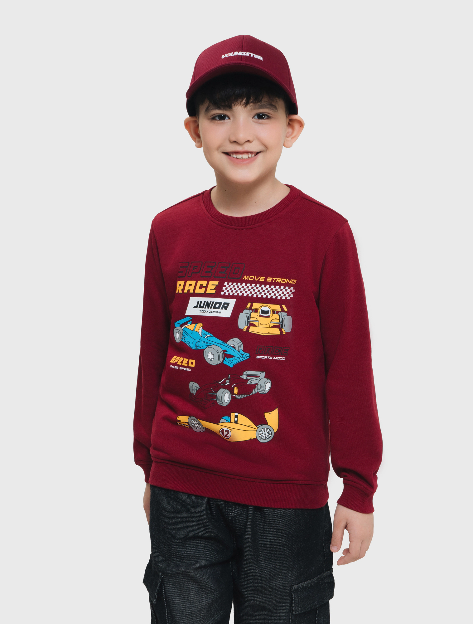 Áo nỉ dài tay bé trai độ dày vừa phải, phom dáng basic.