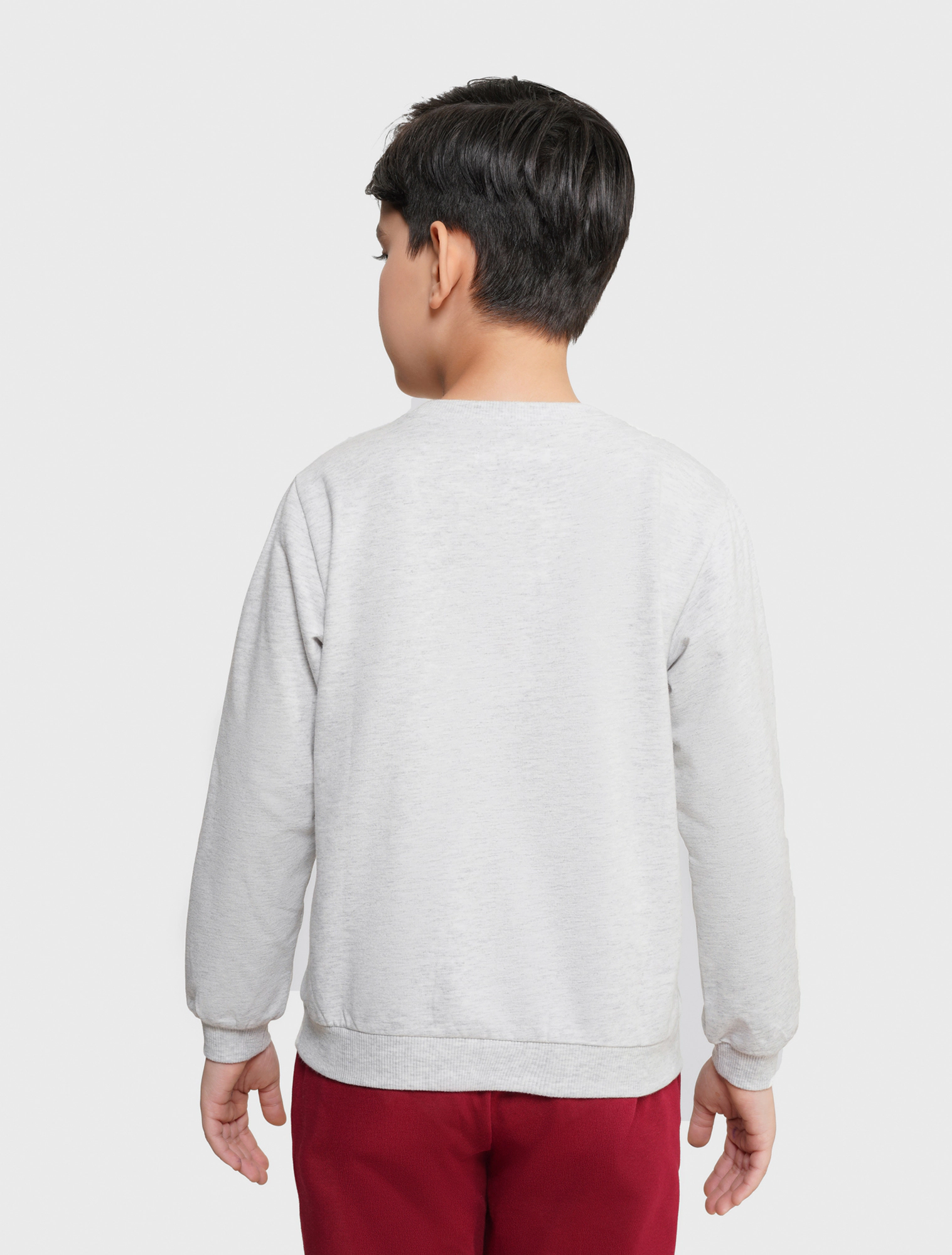 Áo nỉ dài tay chất liệu vảy cá độ dày vừa phải, phom dáng basic, hình in nhóm nhỏ đáng yêu ngộ nghĩnh, phù hợp cho các bạn nhỏ ở thời tiết giao mùa.