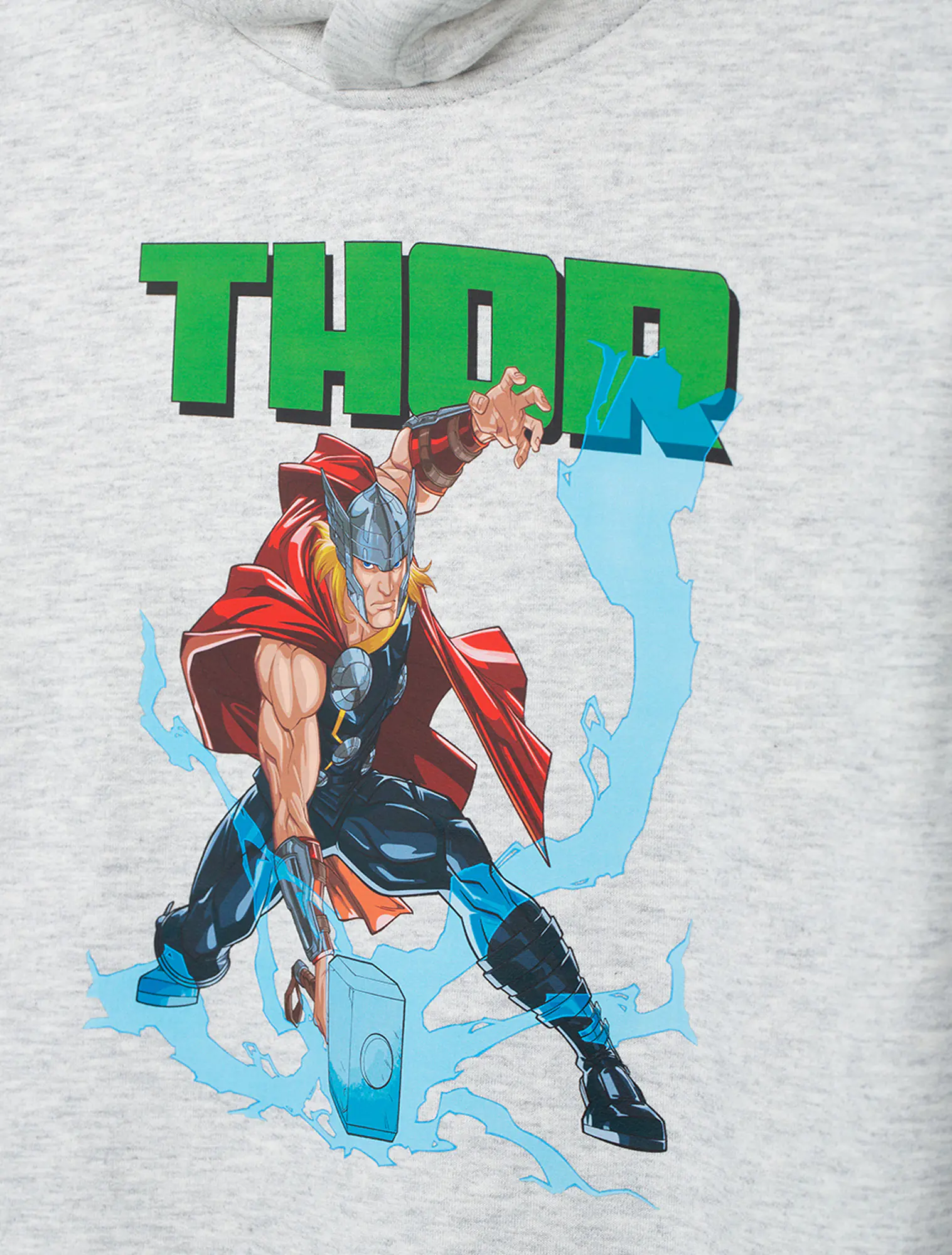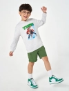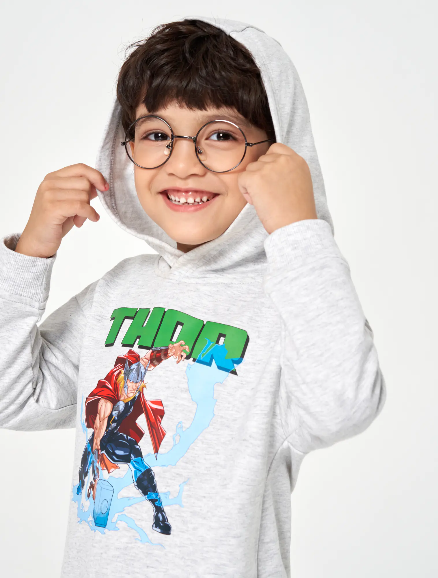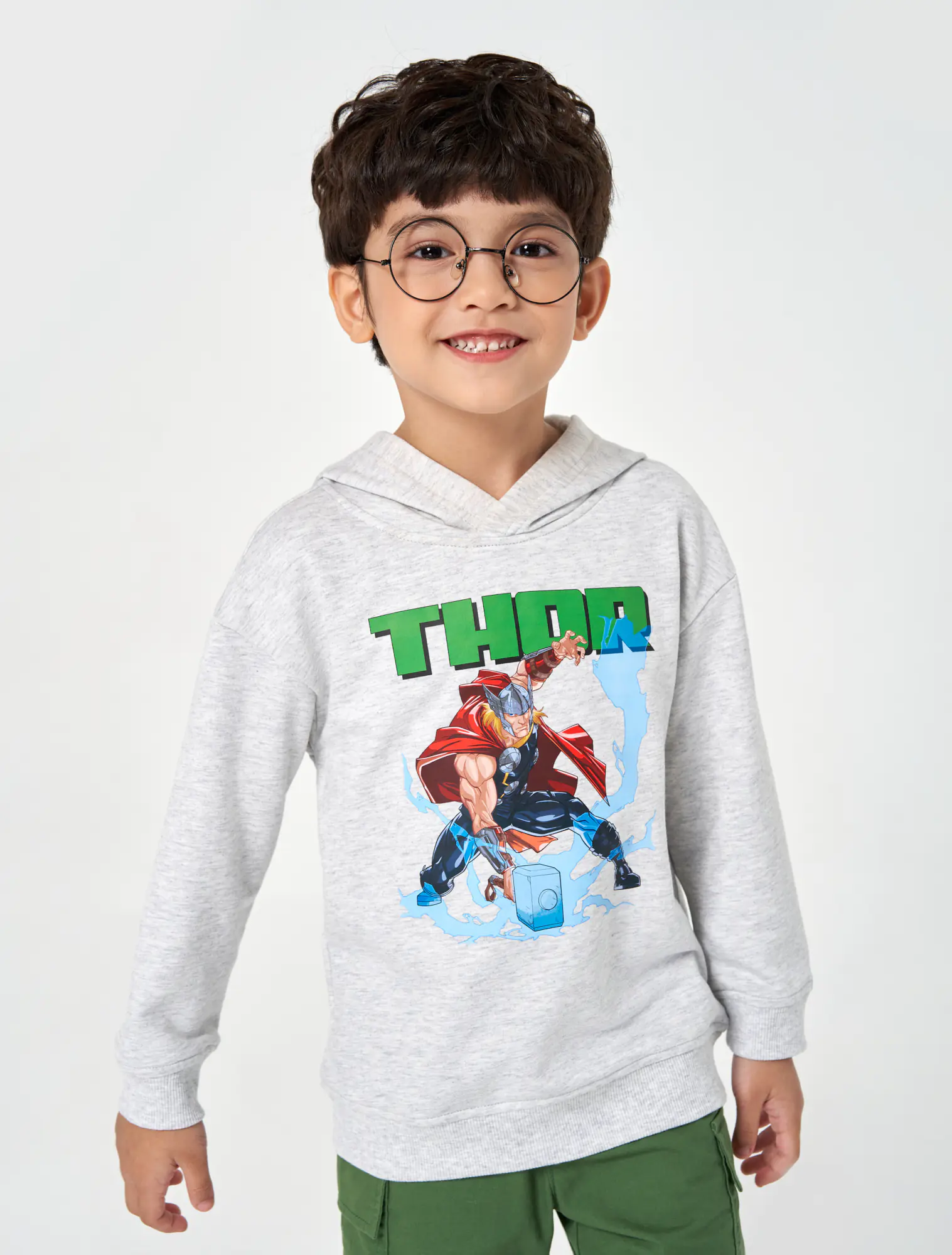 Áo nỉ chất liệu cotton pha, gấu tay gấu thân tra bo, in hình.