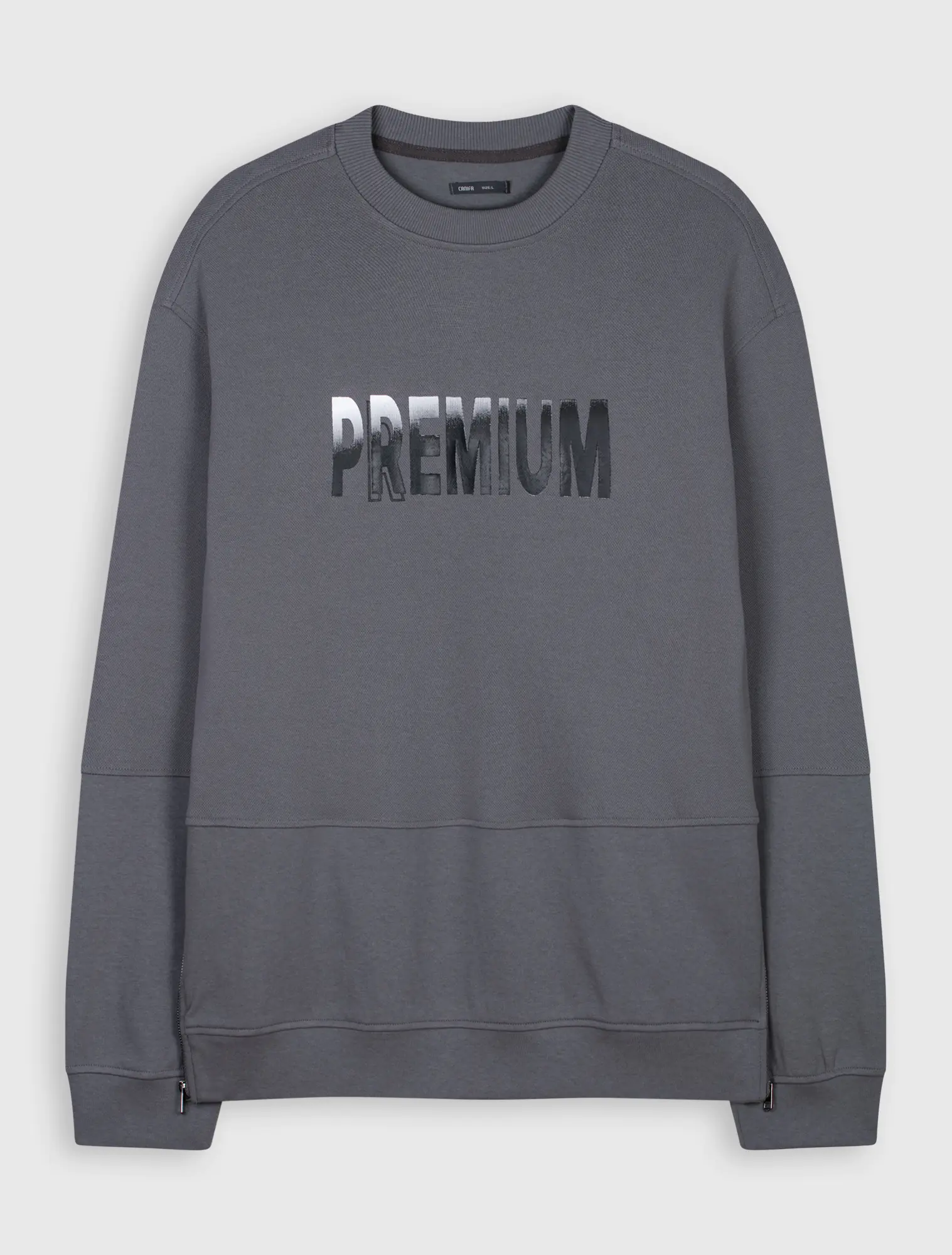 Áo nỉ chất liệu interlock pique can phối thân và khóa trang trí 2 bên sườn.
