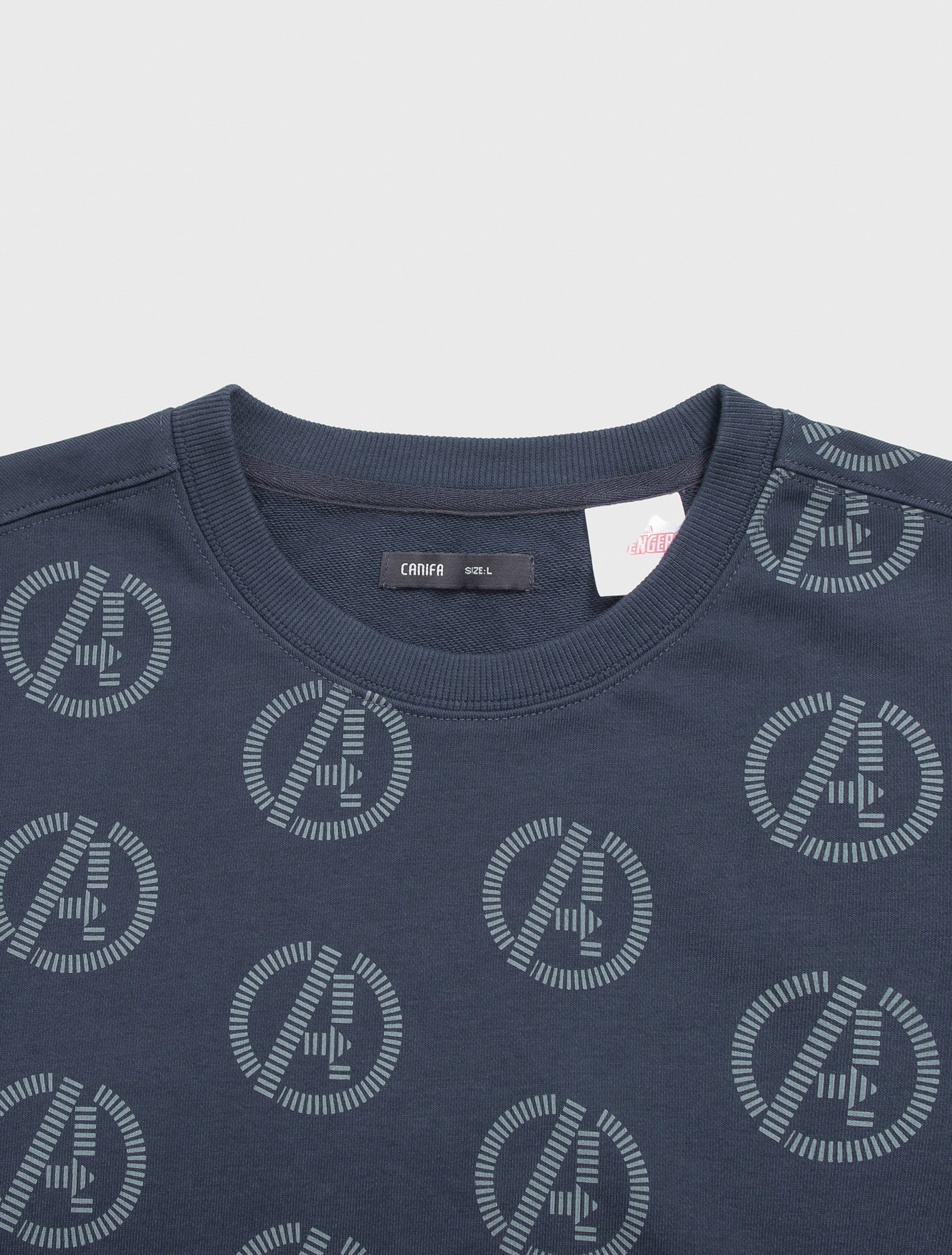 Áo nỉ nam hình in Marvel, dáng suông dễ mặc.