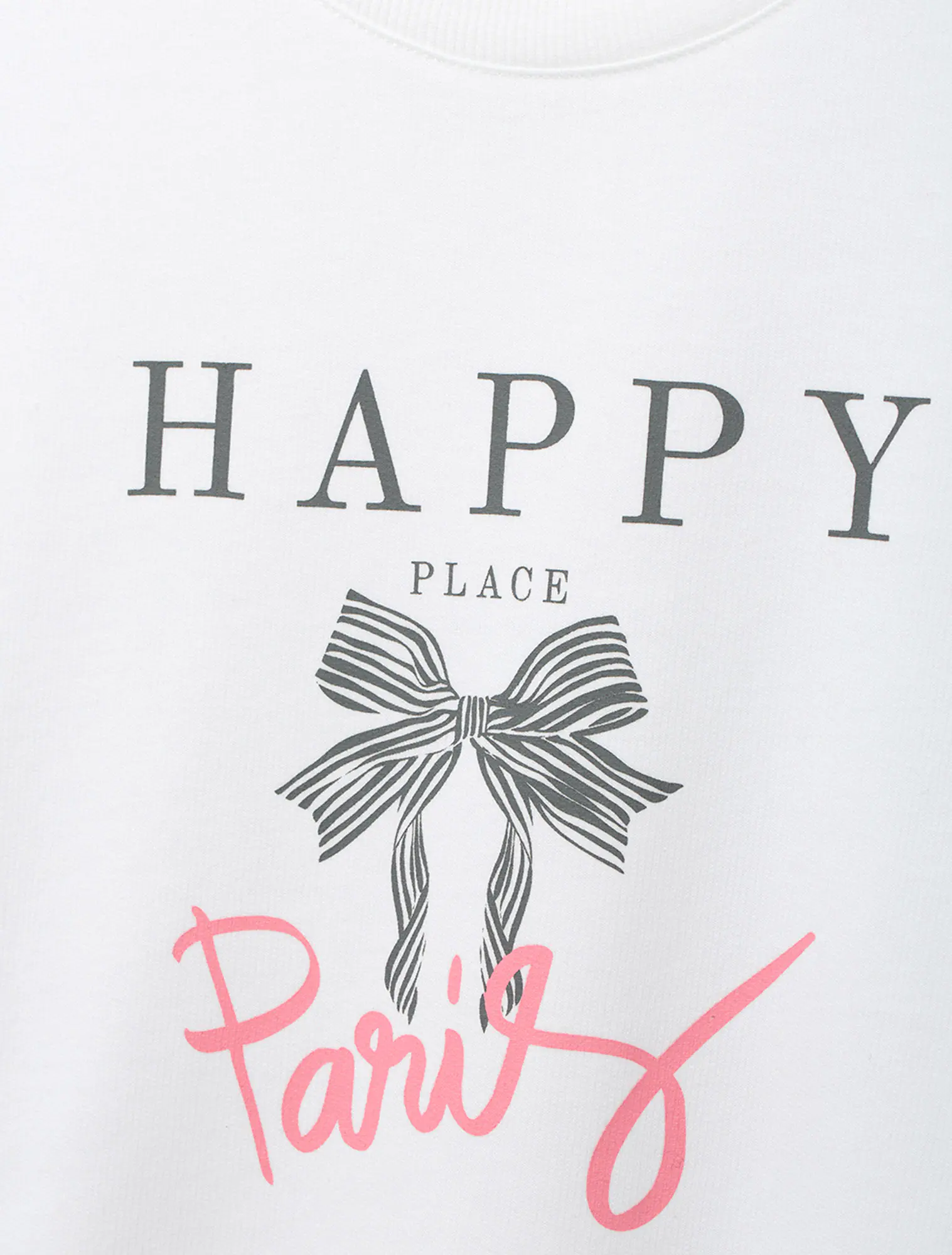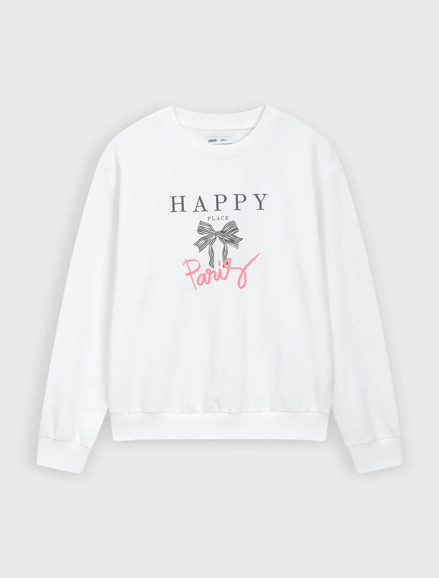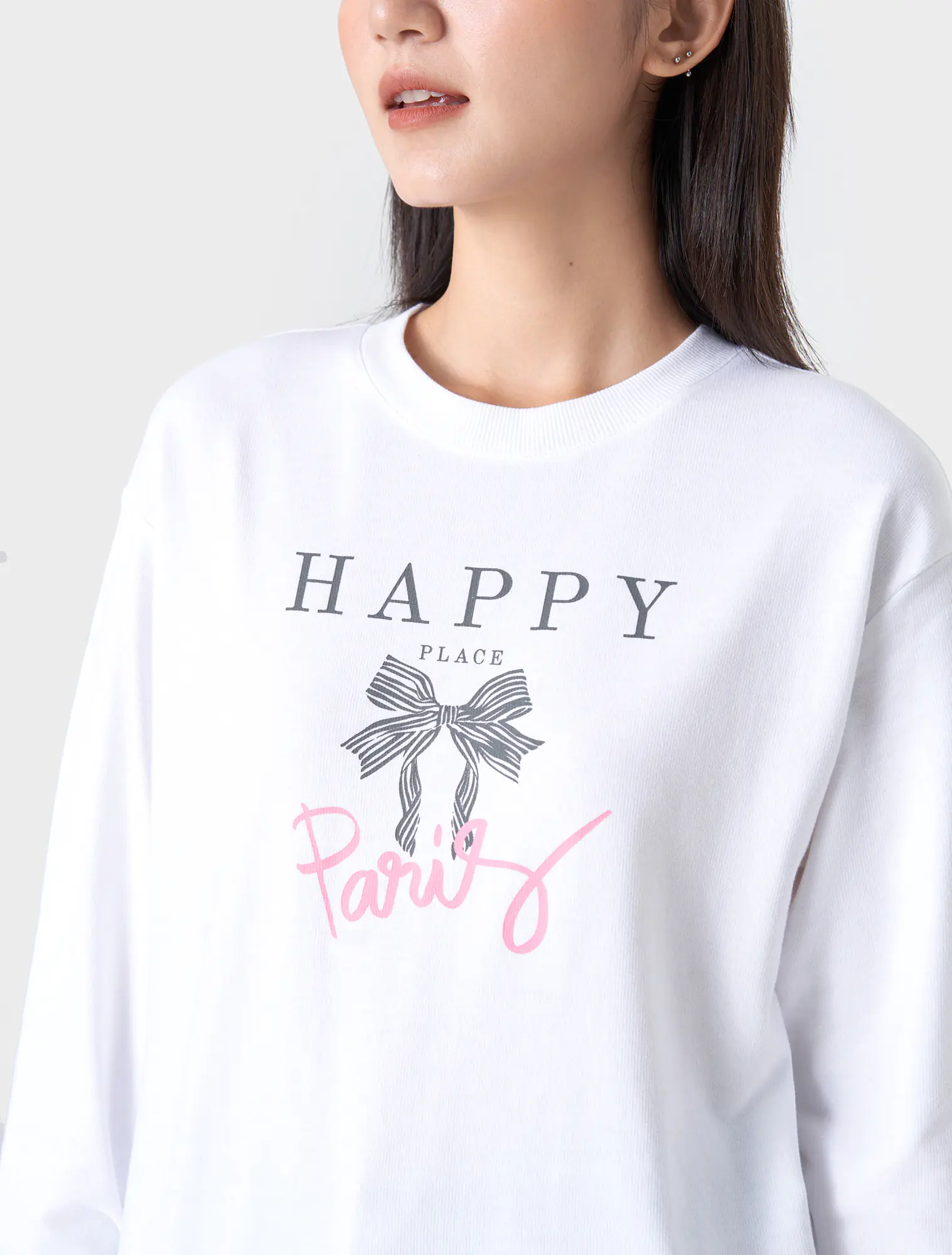 Áo nỉ dáng basic cổ tròn, thiết kế bo gấu tạo sự thoải mái khi mặc, kết hợp với các chi tiết đồ họa đơn giản tạo điểm nhấn cho sản phẩm.