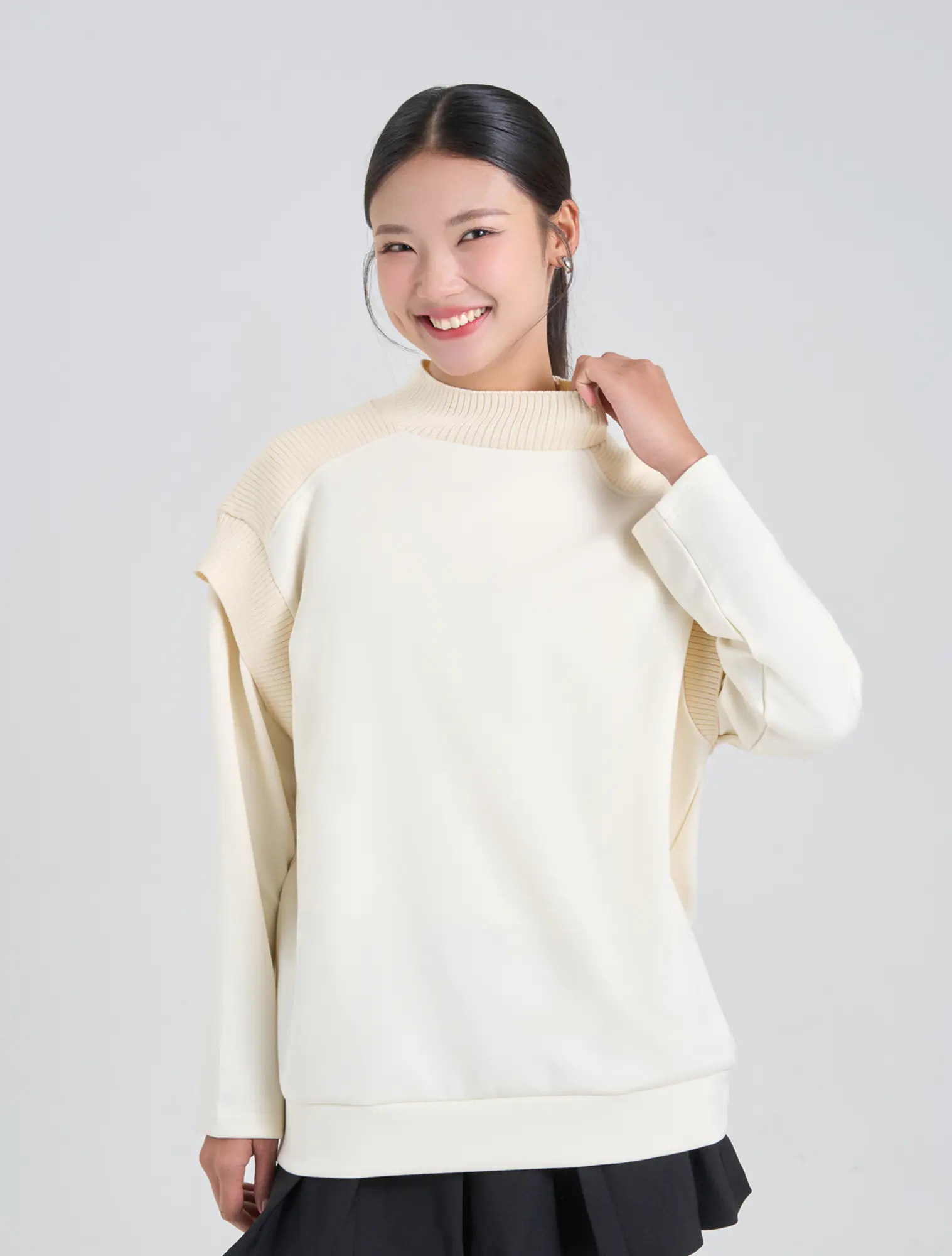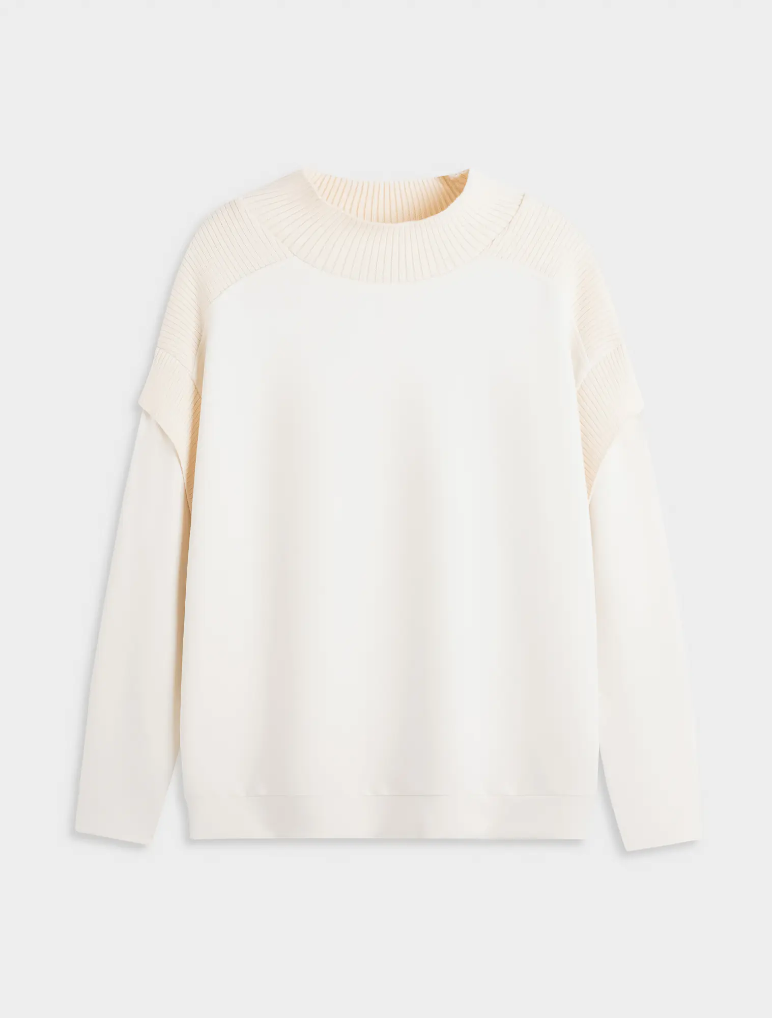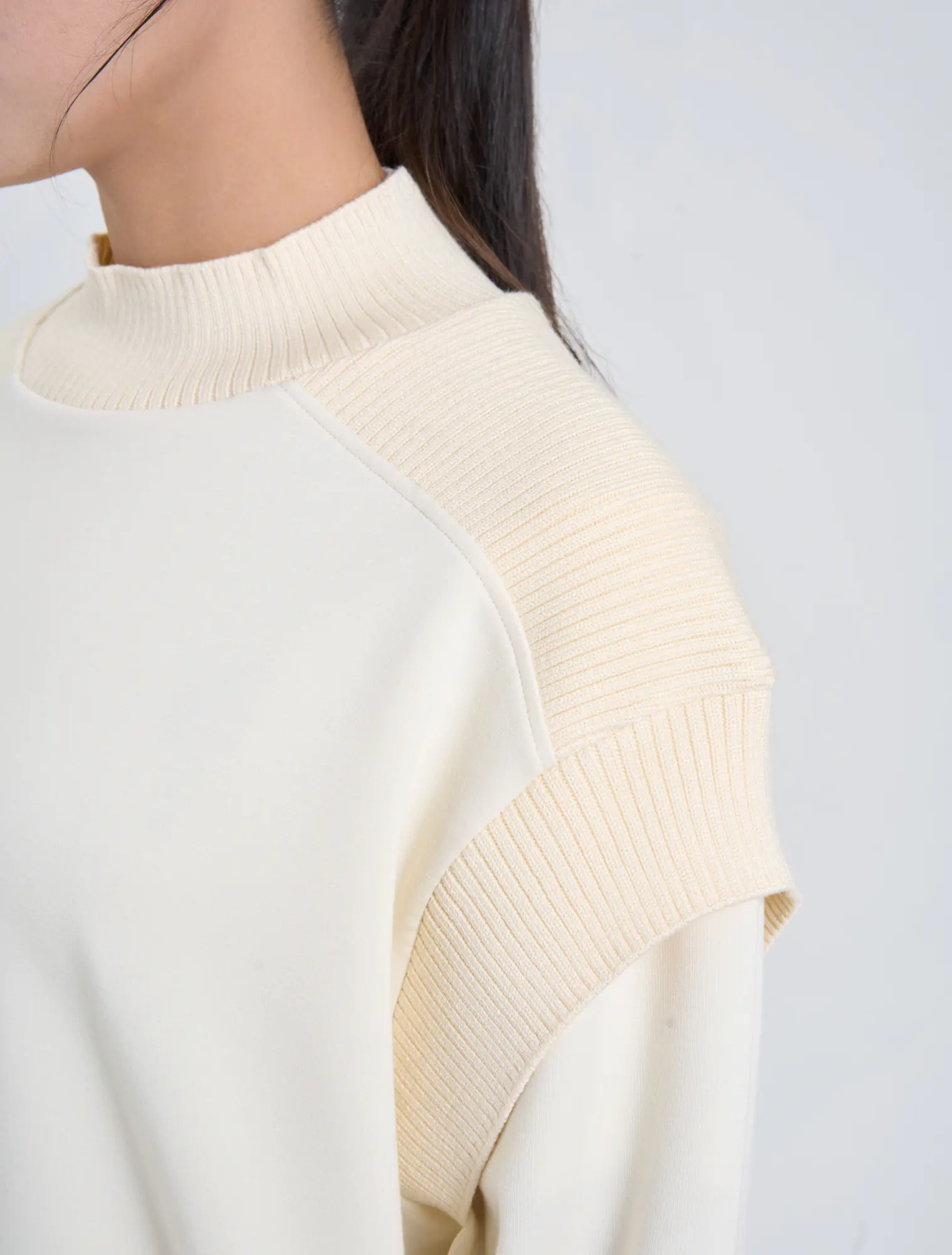 Áo nỉ nữ dáng relax với chi tiết phối chất liệu ở cổ áo và vai tạo nên sản phẩm đơn giản nhưng tinh tế và bắt kịp xu hướng.