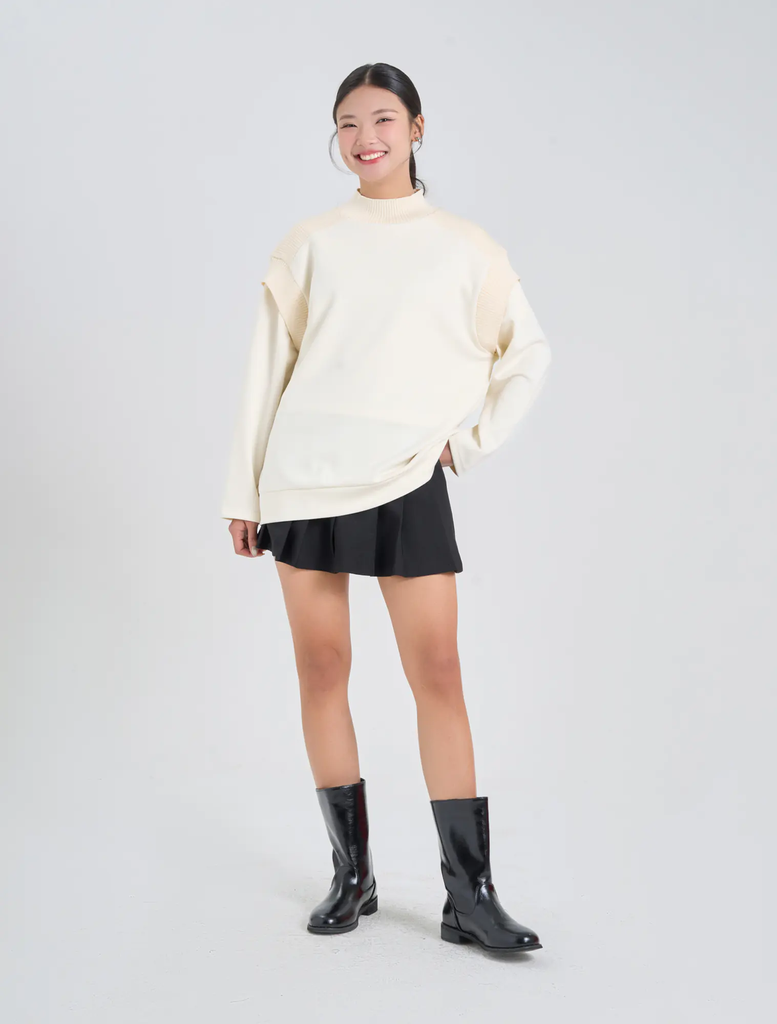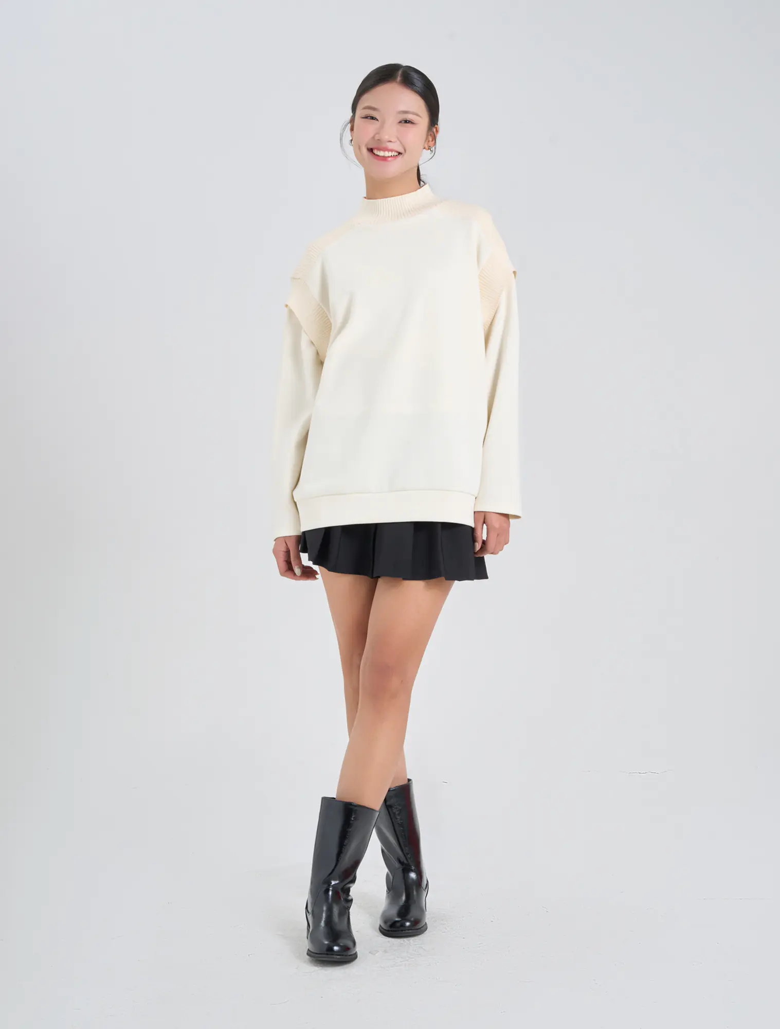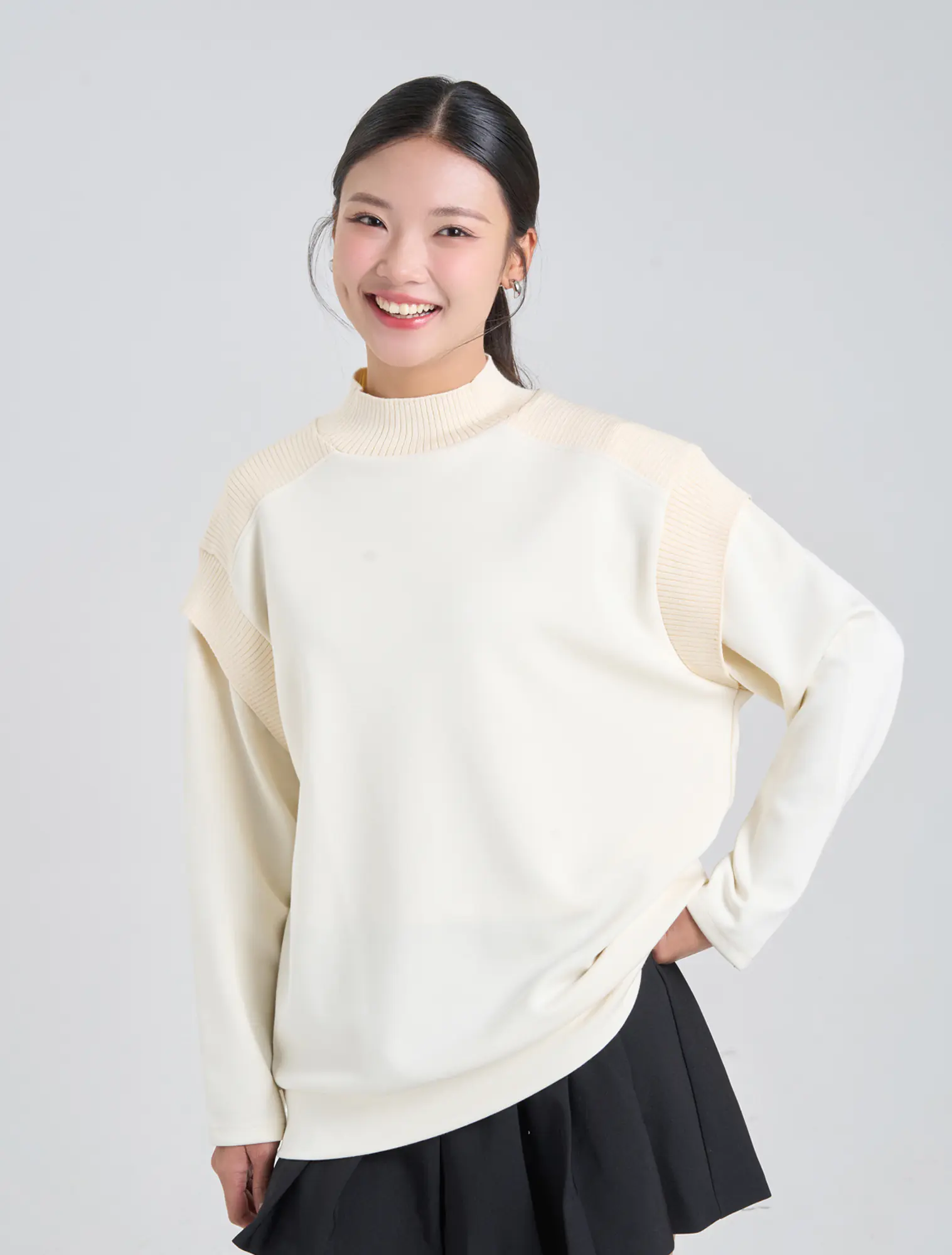 Áo nỉ nữ dáng relax với chi tiết phối chất liệu ở cổ áo và vai tạo nên sản phẩm đơn giản nhưng tinh tế và bắt kịp xu hướng.