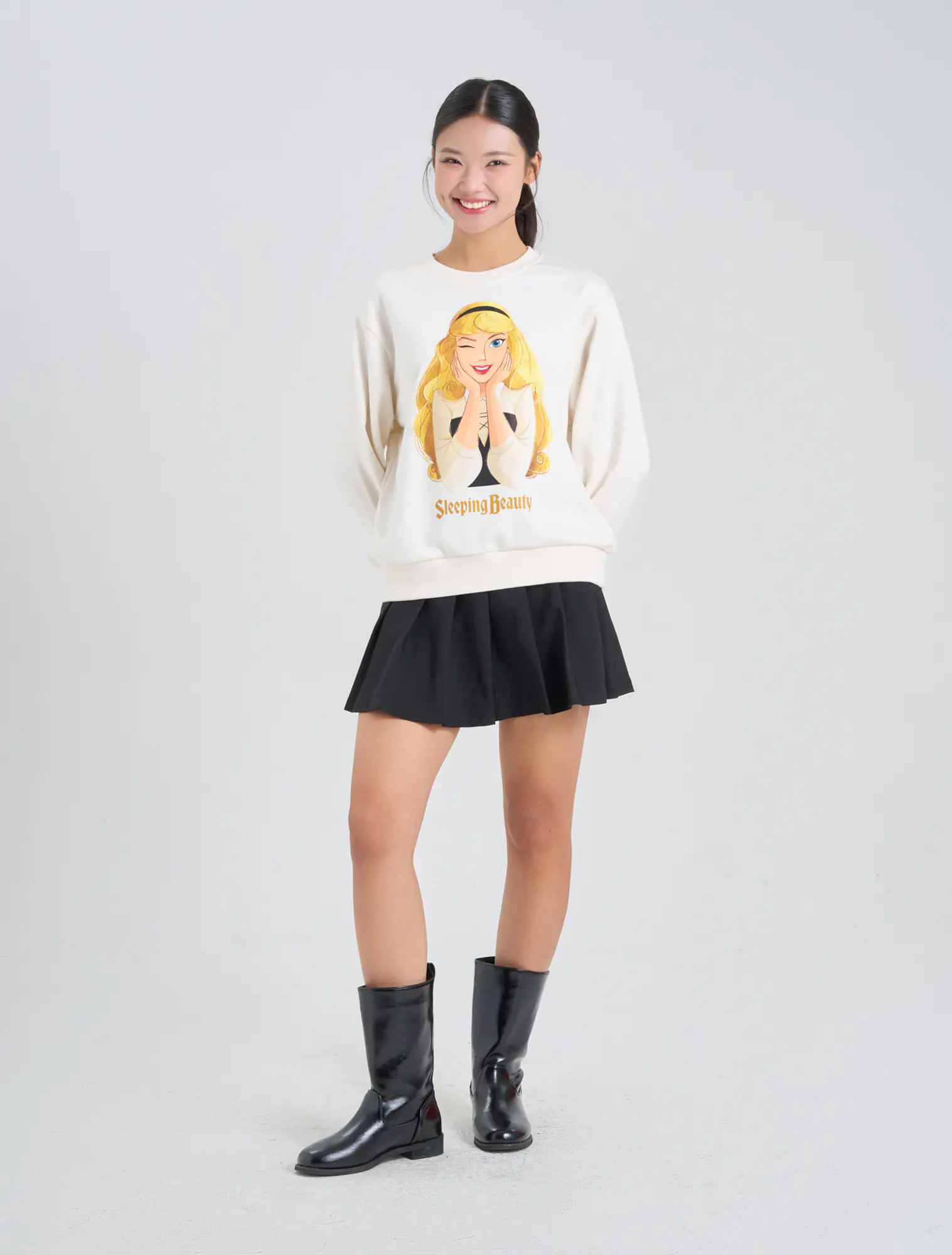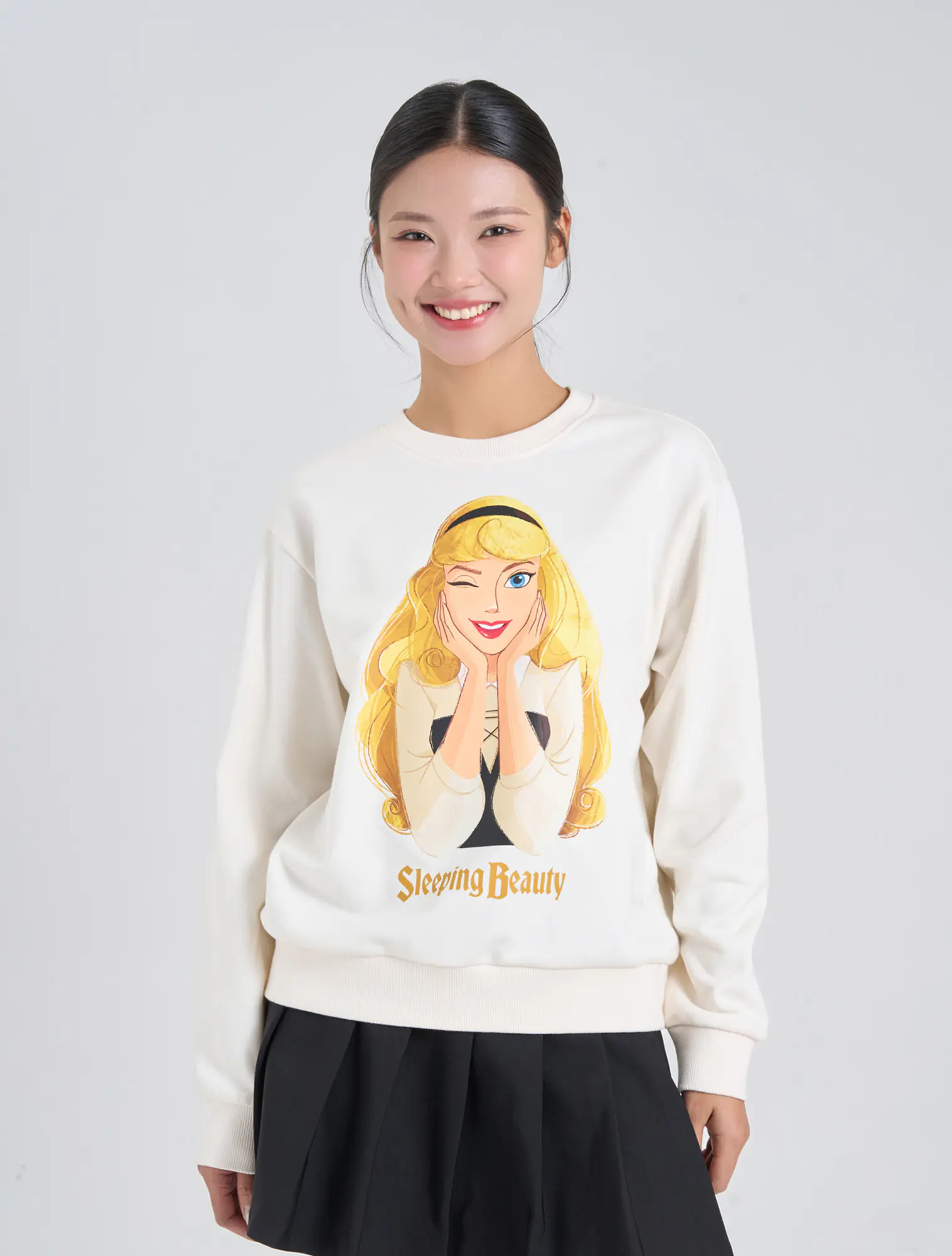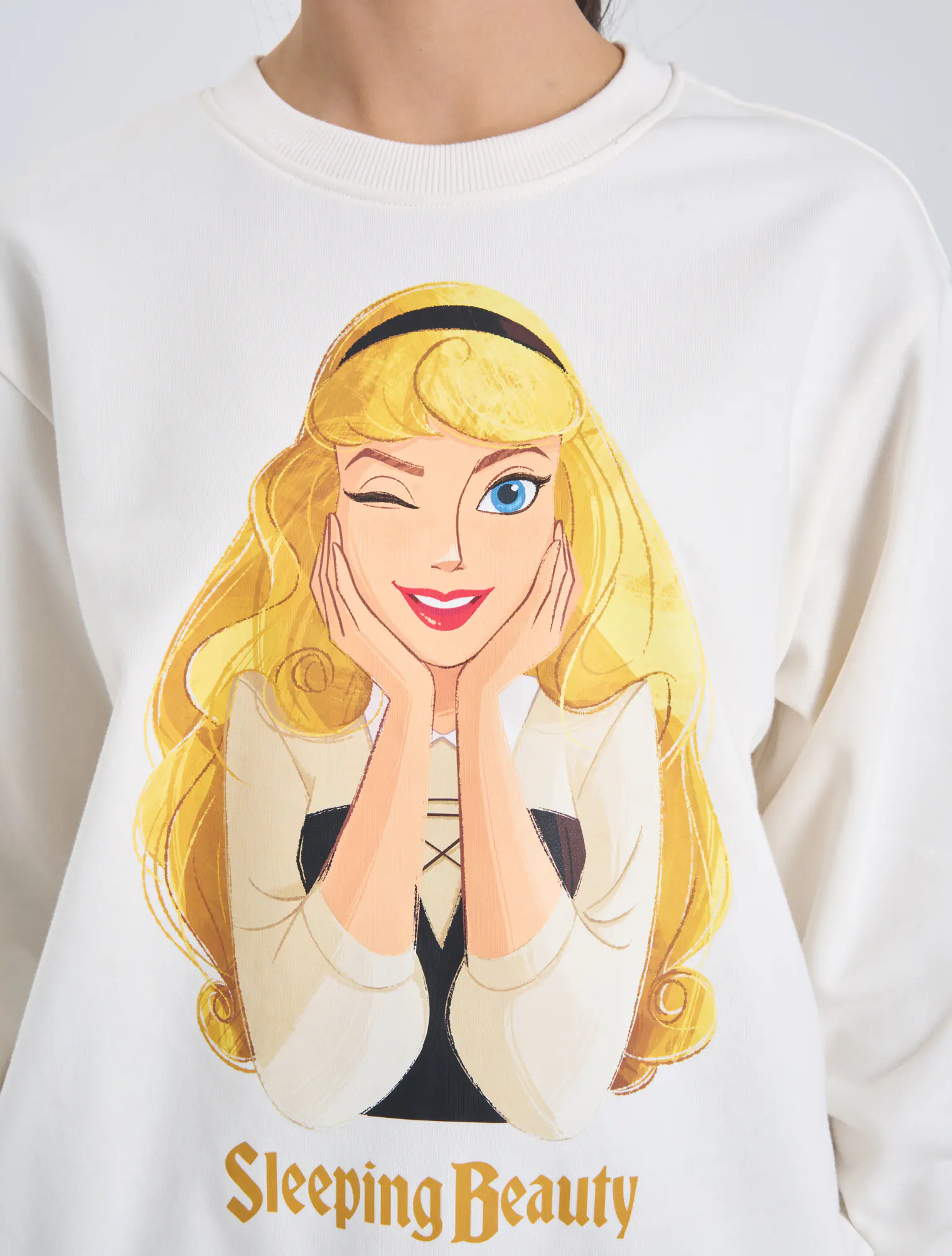Áo nỉ nữ dáng relax với đồ họa licence chủ đề "Nàng công chúa ngủ trong rừng".