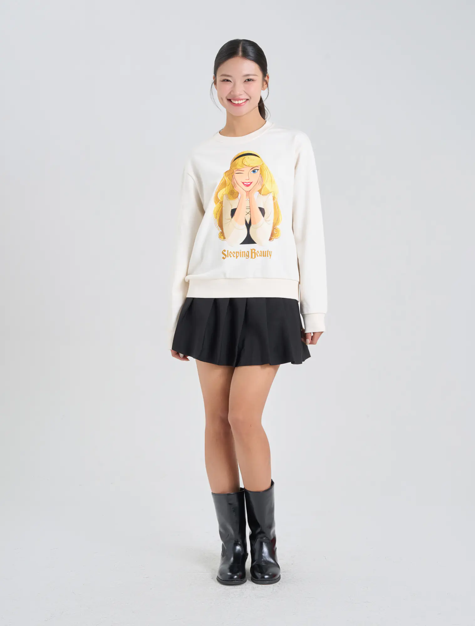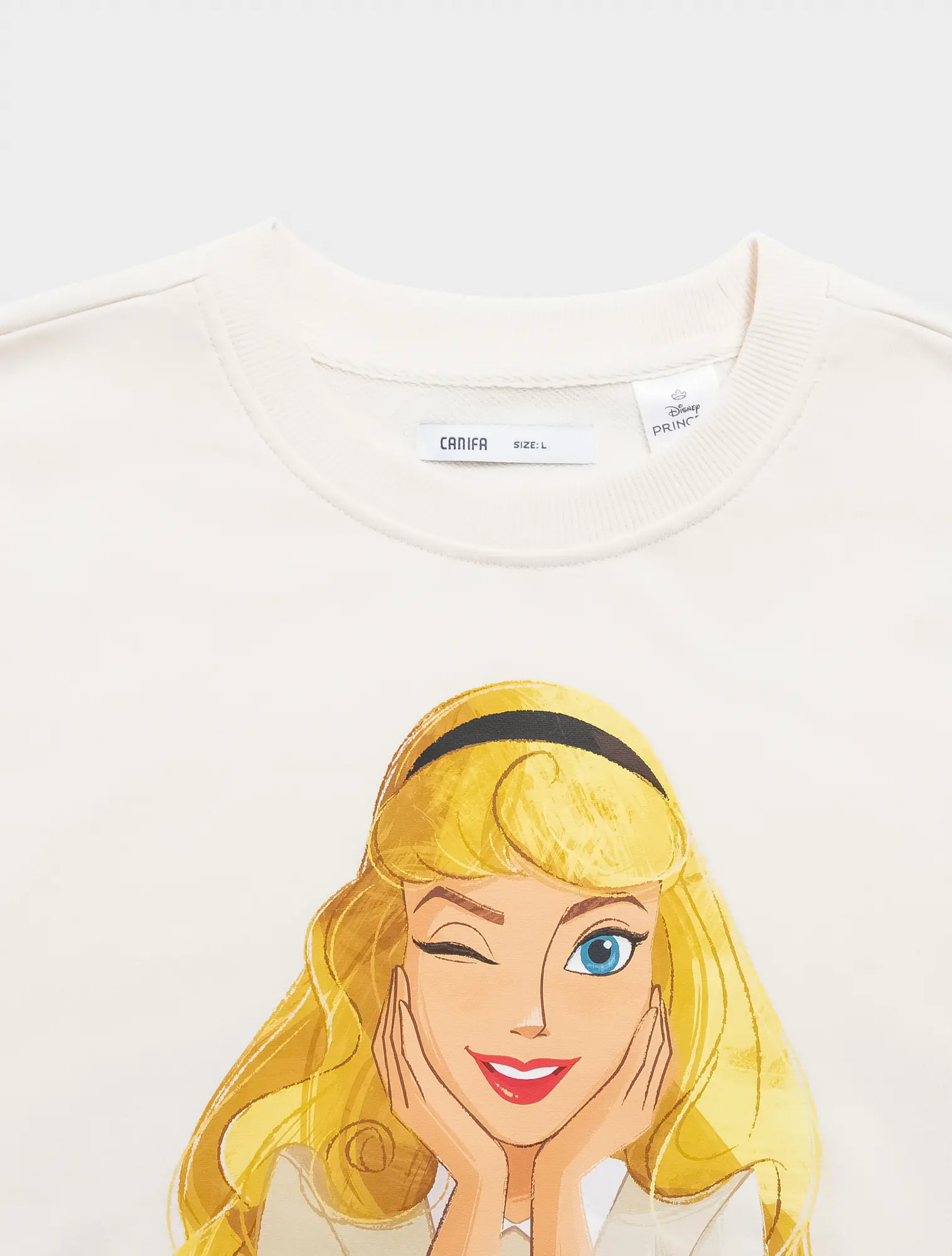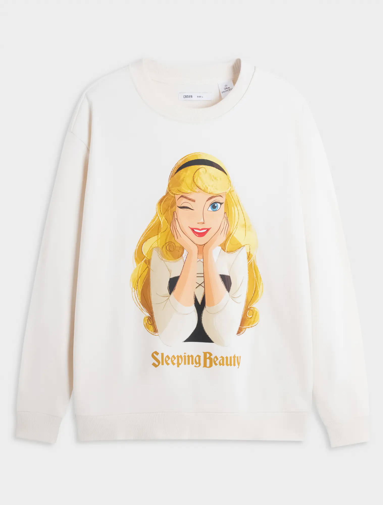 Áo nỉ nữ dáng relax với đồ họa licence chủ đề "Nàng công chúa ngủ trong rừng".