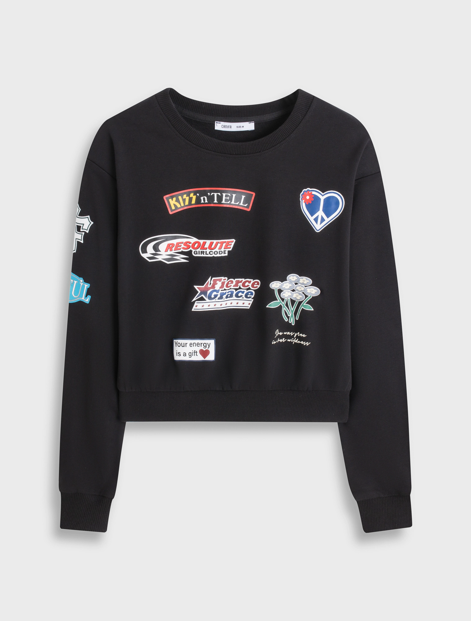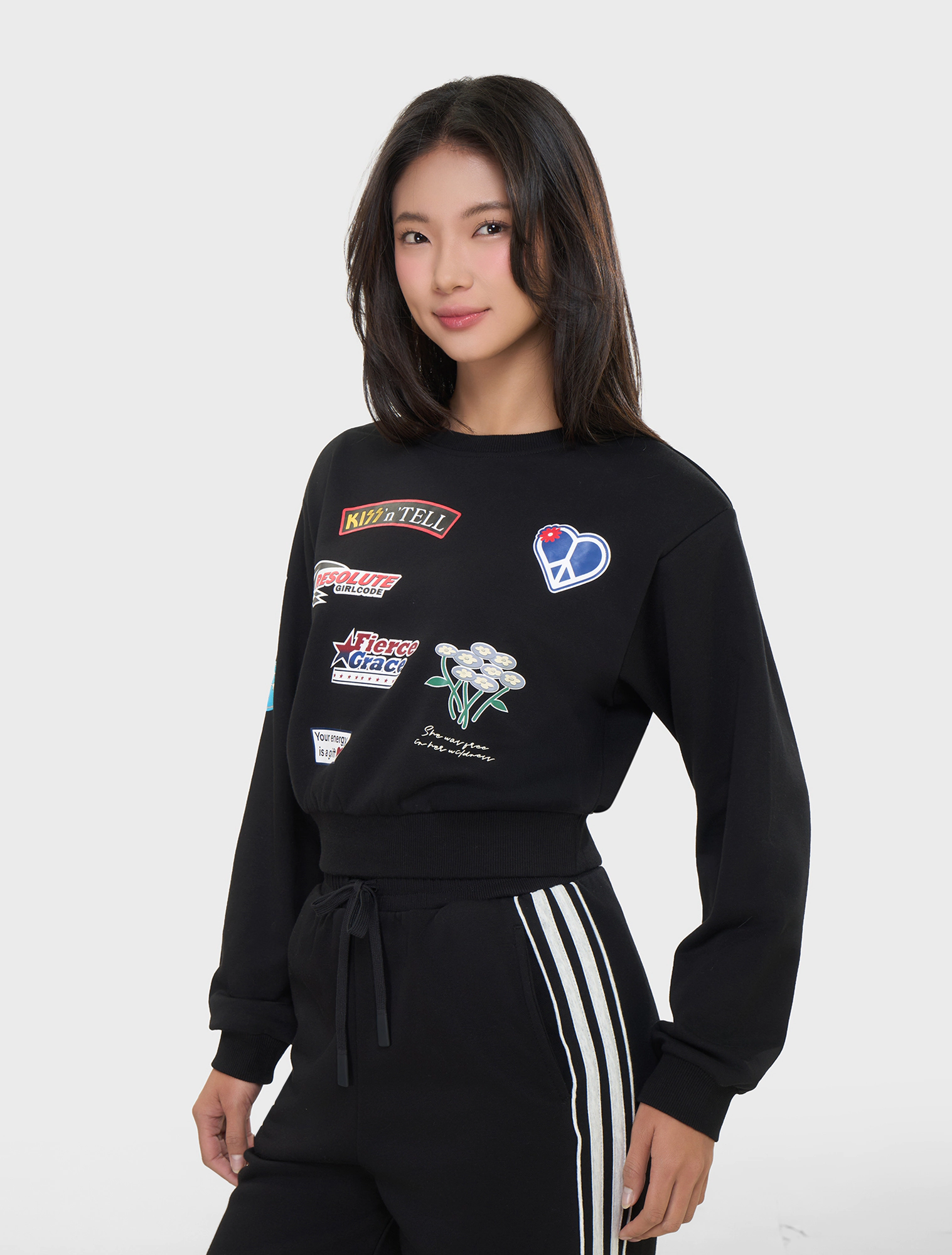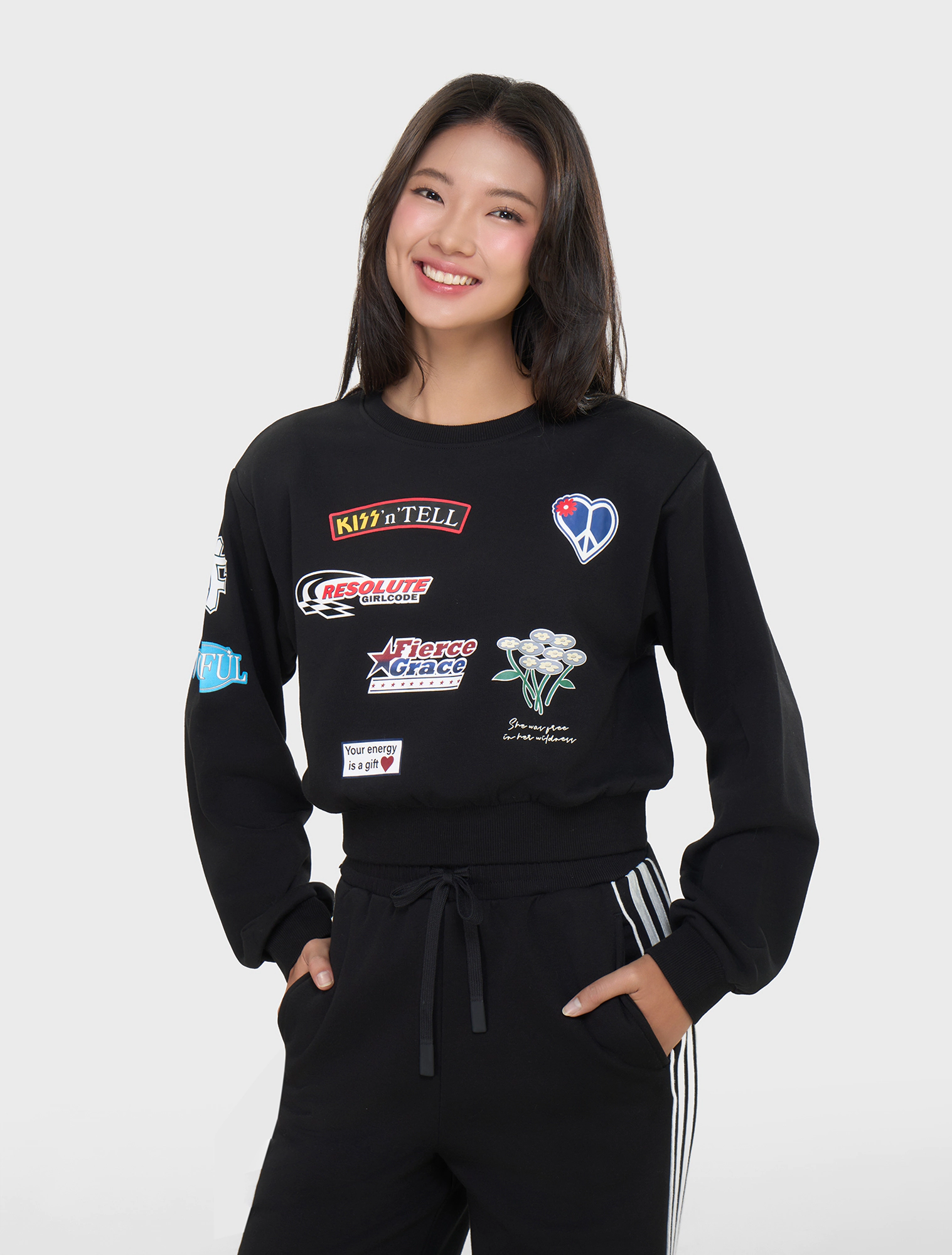 Áo nỉ nữ dáng ngắn có hình in, với thiết kế mới mẻ, màu sắc nổi bật và các chi tiết hình hoạ đa sắc, tạo nên một sản phẩm ấn tượng nhưng vẫn dễ sử dụng cho khách hàng.