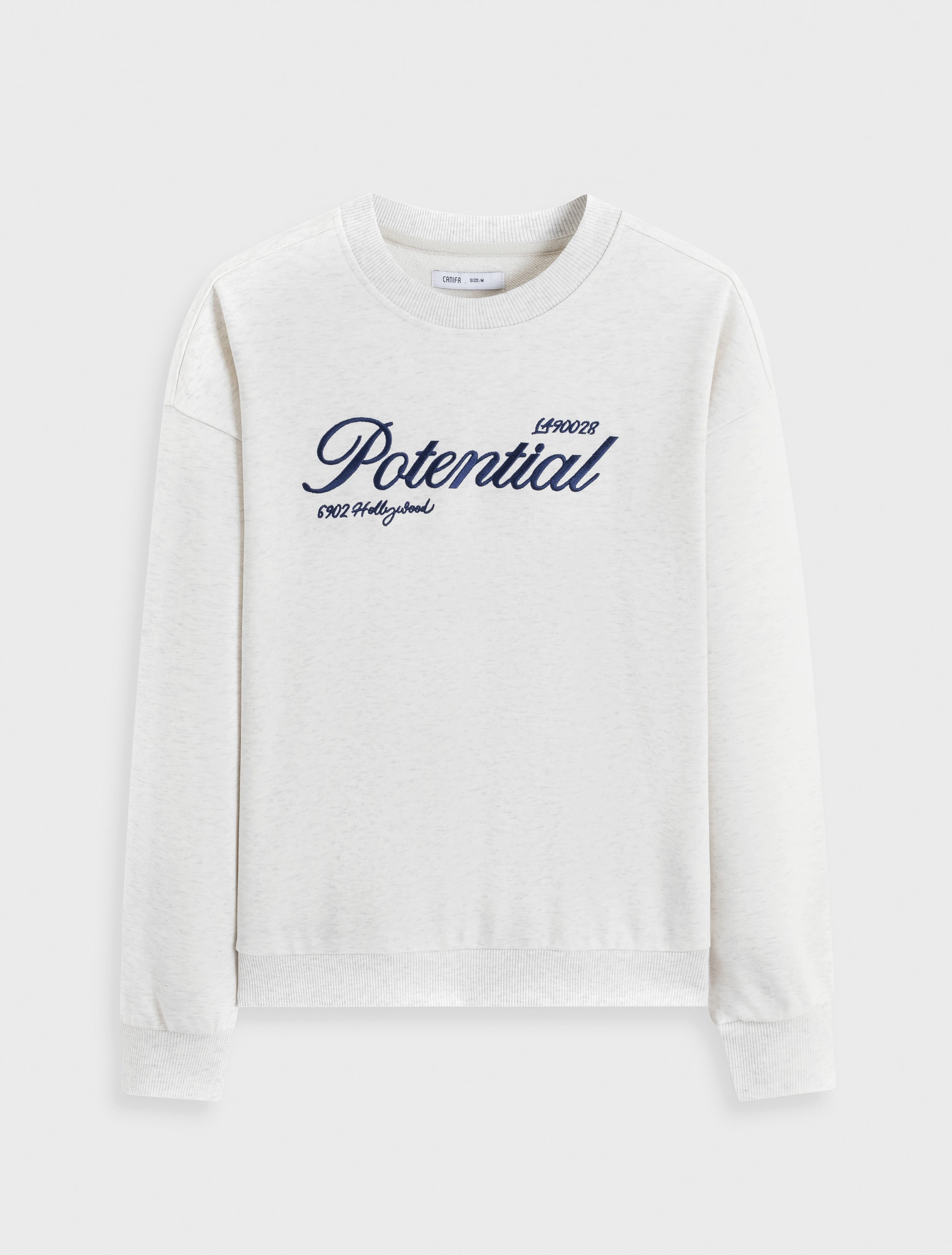Áo nỉ nữ dài tay cổ tròn, kiểu dáng basic với điểm nhấn là hình thêu trên áo, tạo nên sự mới mẻ cho sản phẩm đơn giản.