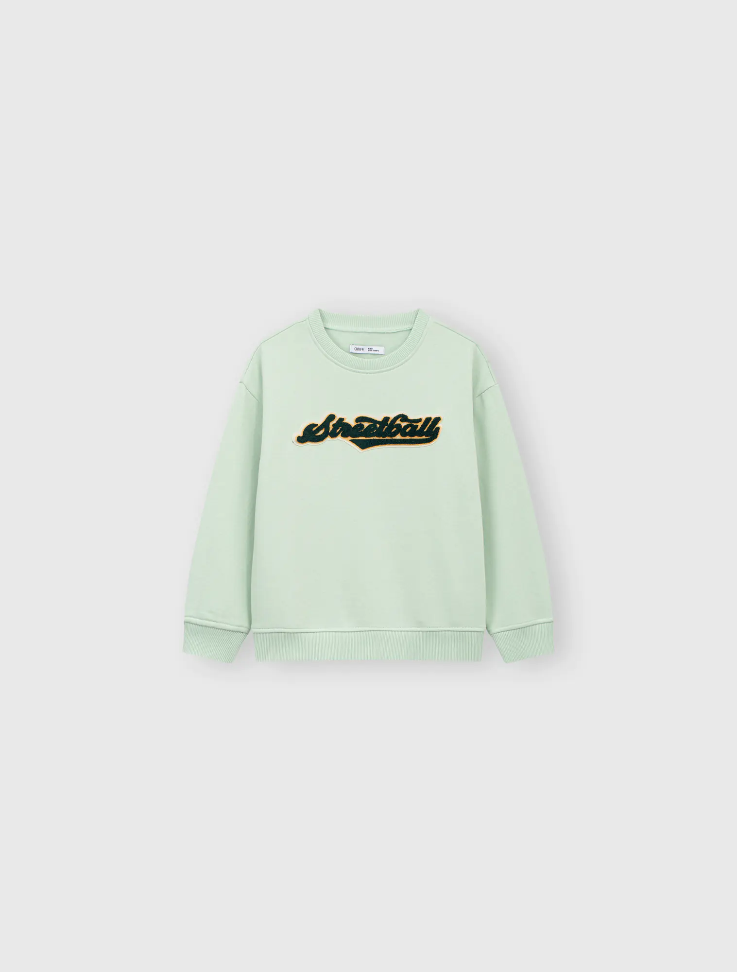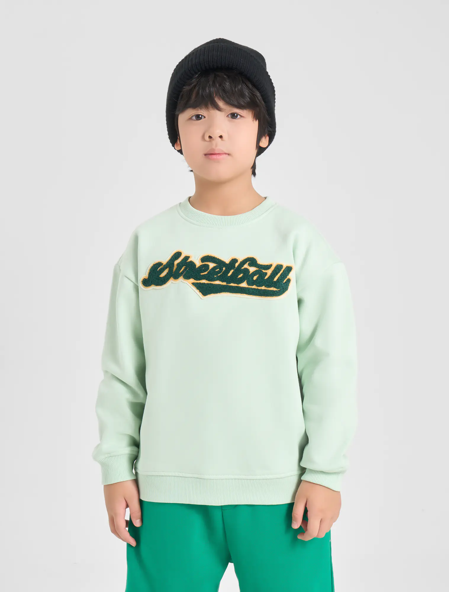 Áo nỉ unisex chất liệu cào bông, hình in to khỏe khoắn tạo sự năng động cho trẻ.