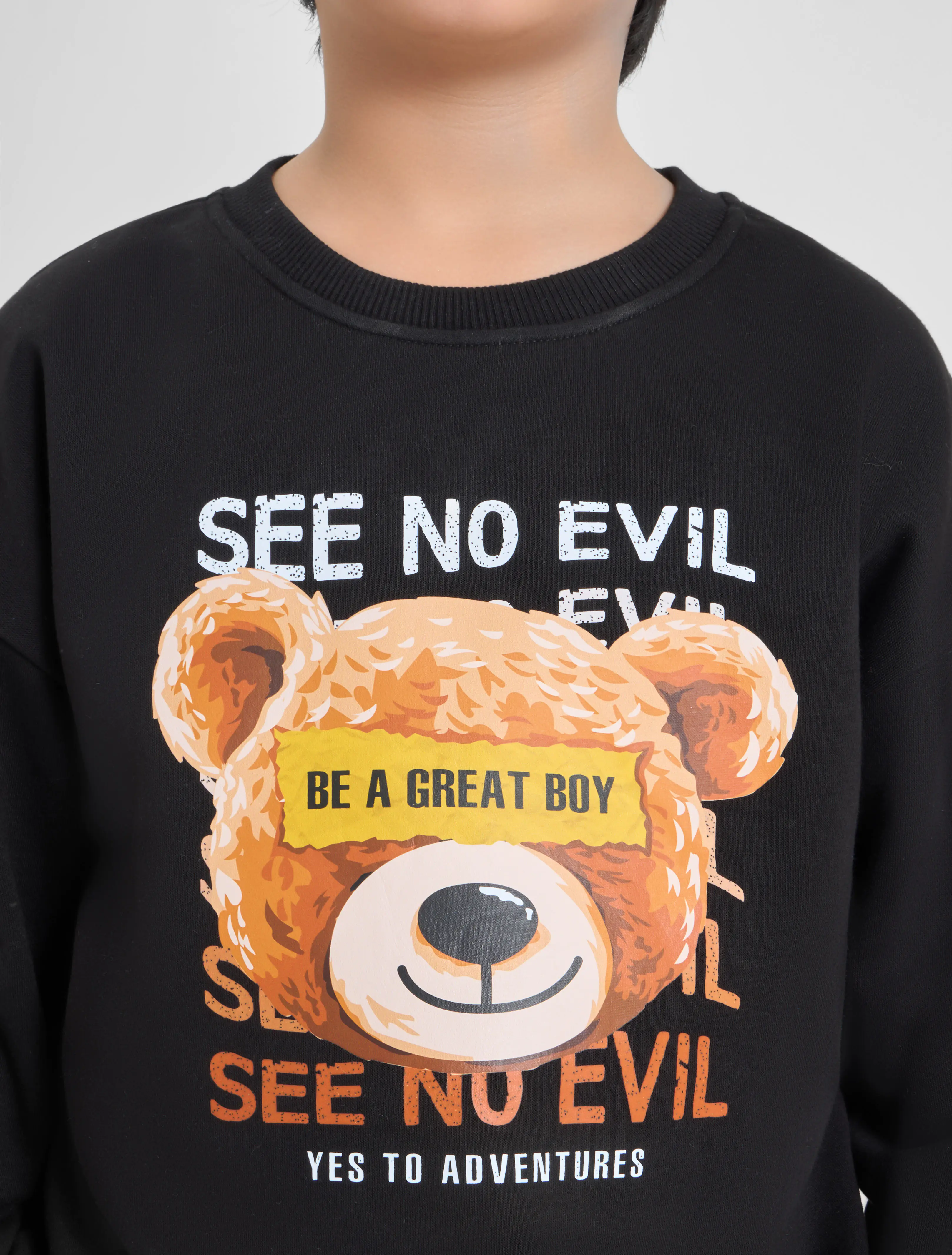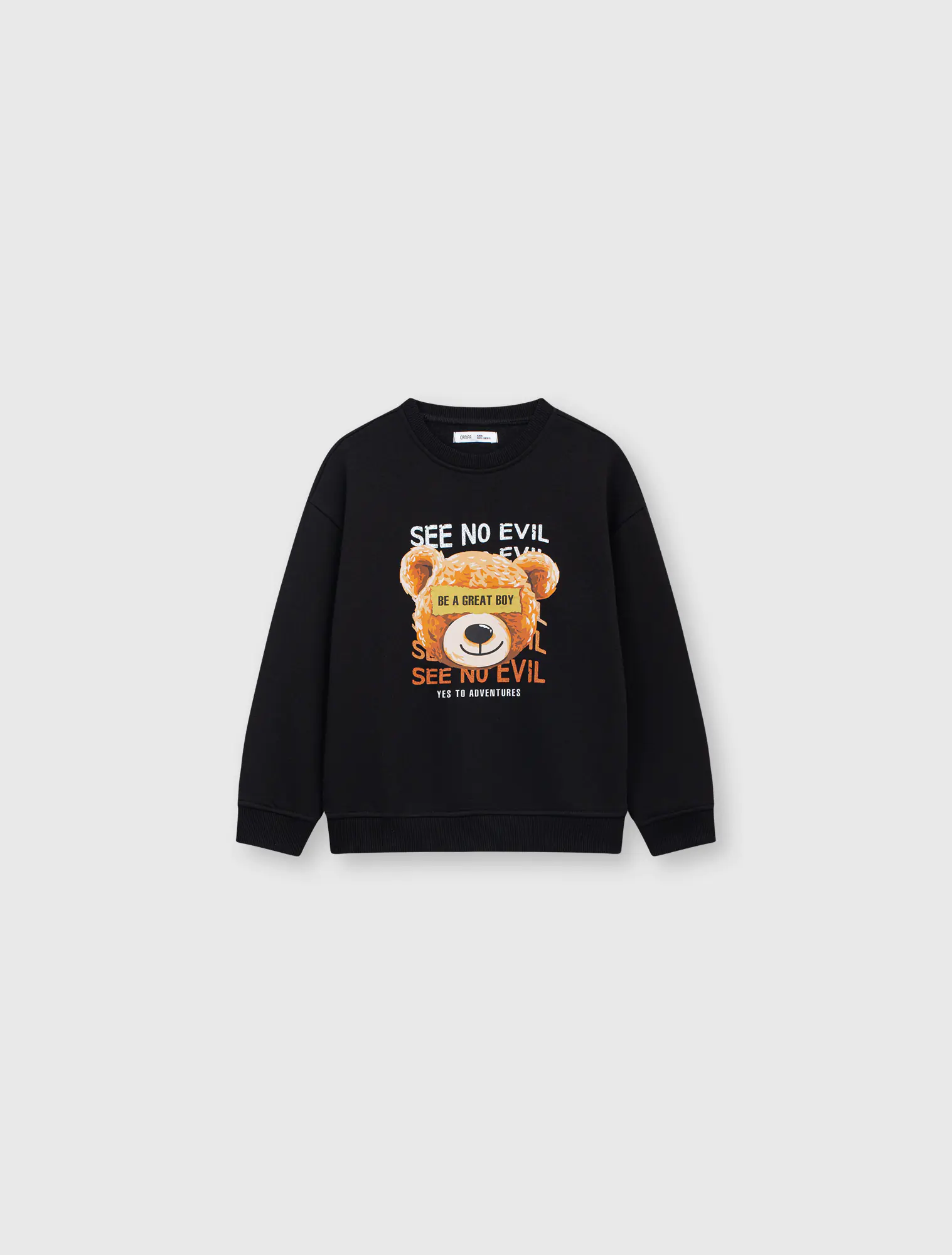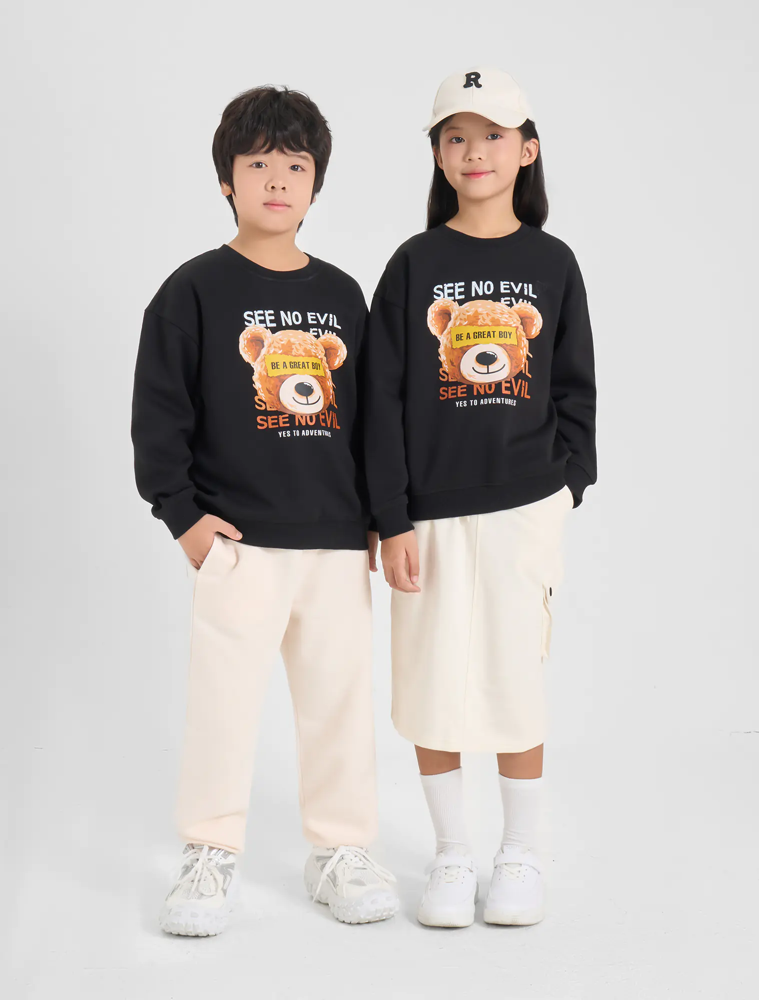 Áo nỉ unisex chất liệu cào bông, hình in to khỏe khoắn tạo sự năng động cho trẻ.