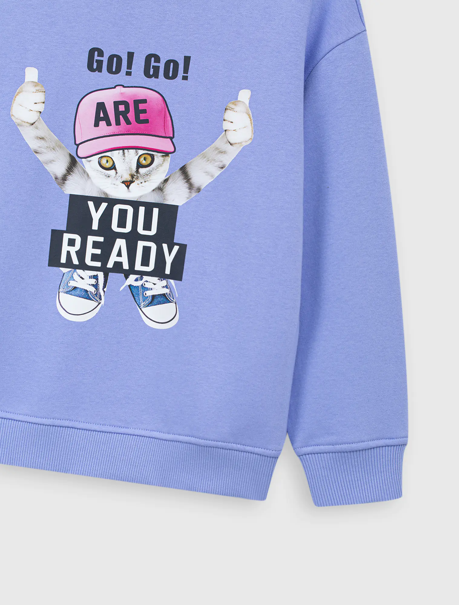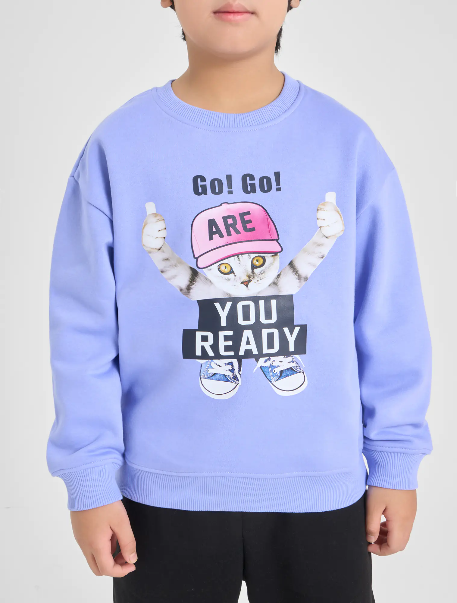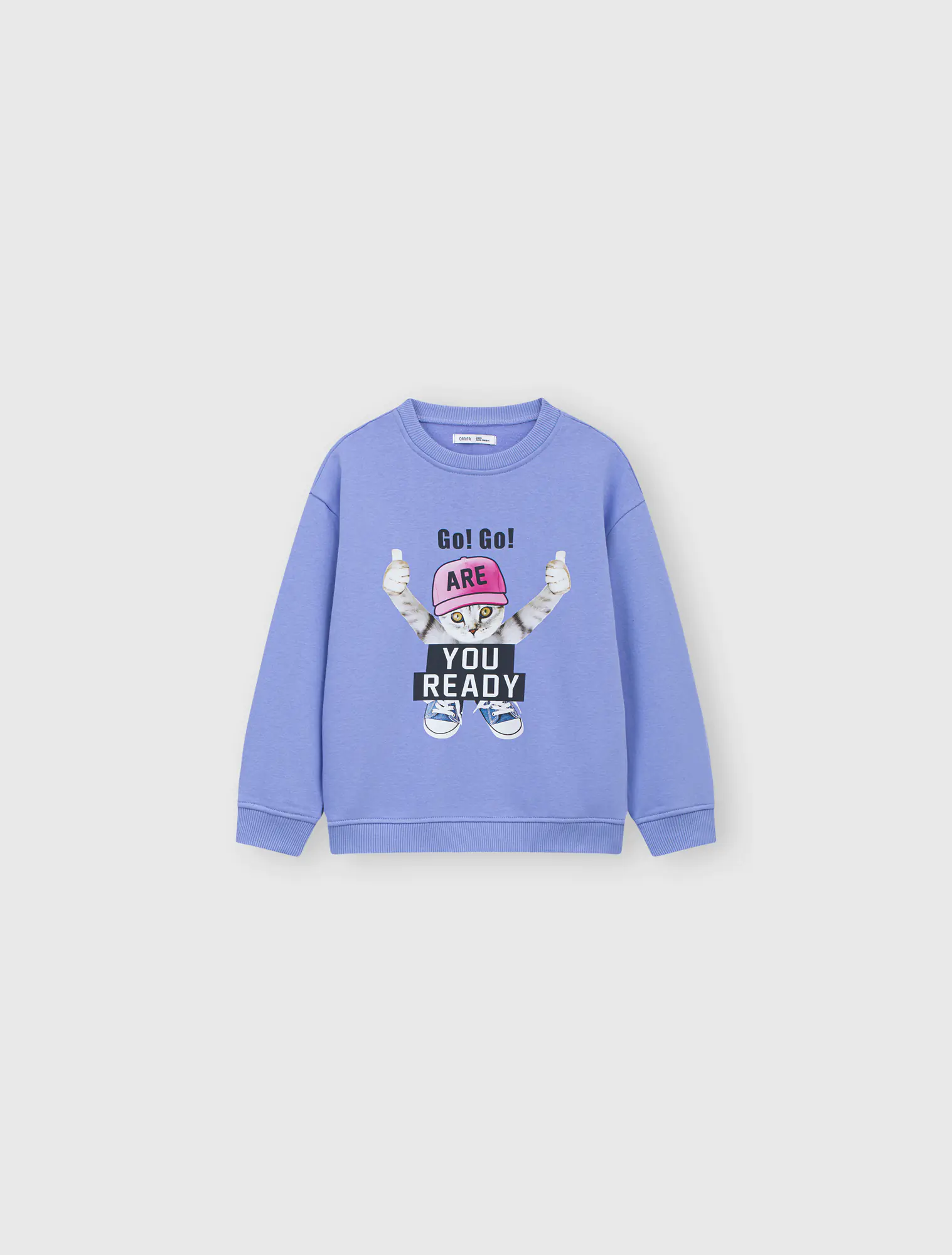 Áo nỉ unisex chất liệu cào bông, hình in to khỏe khoắn tạo sự năng động cho trẻ.