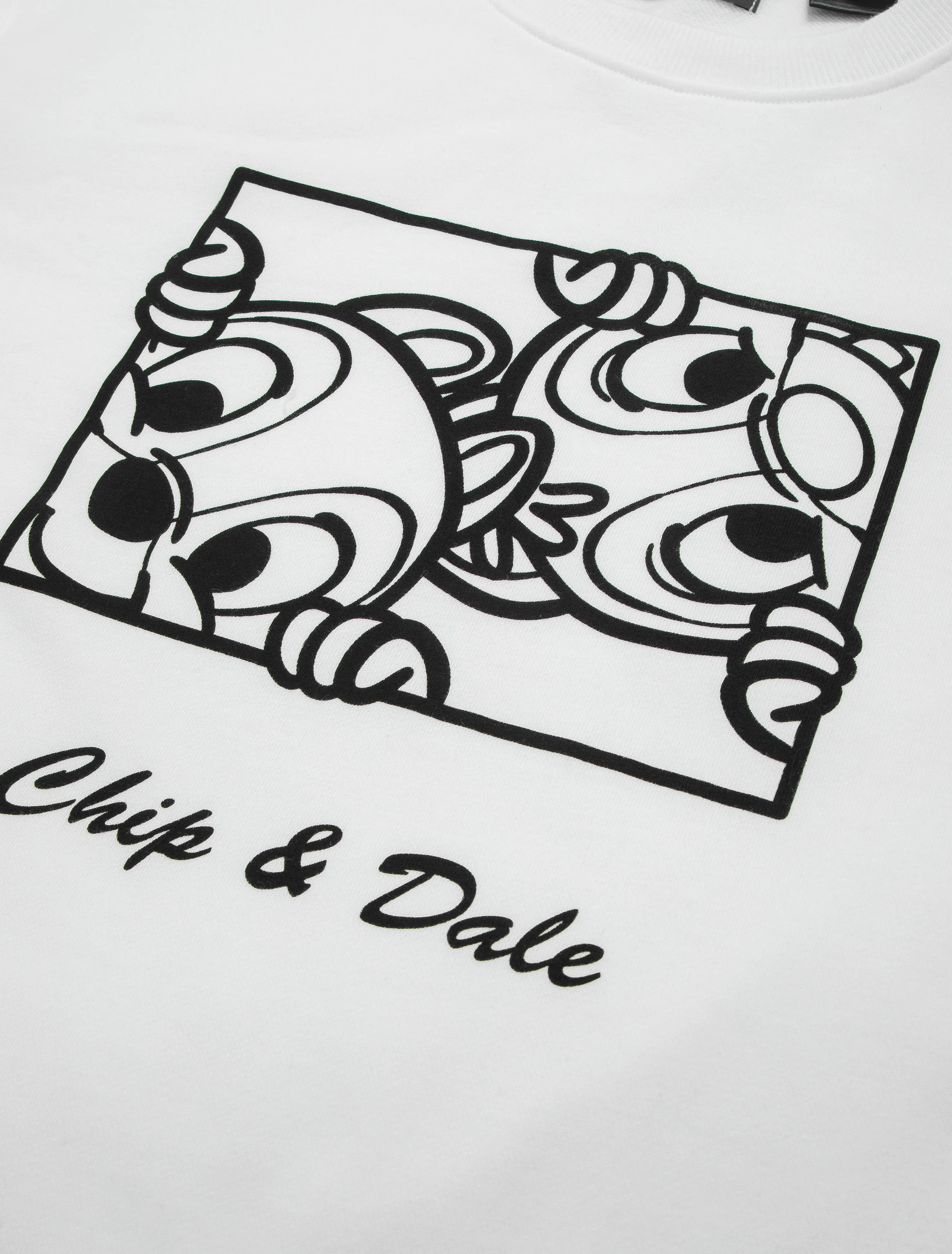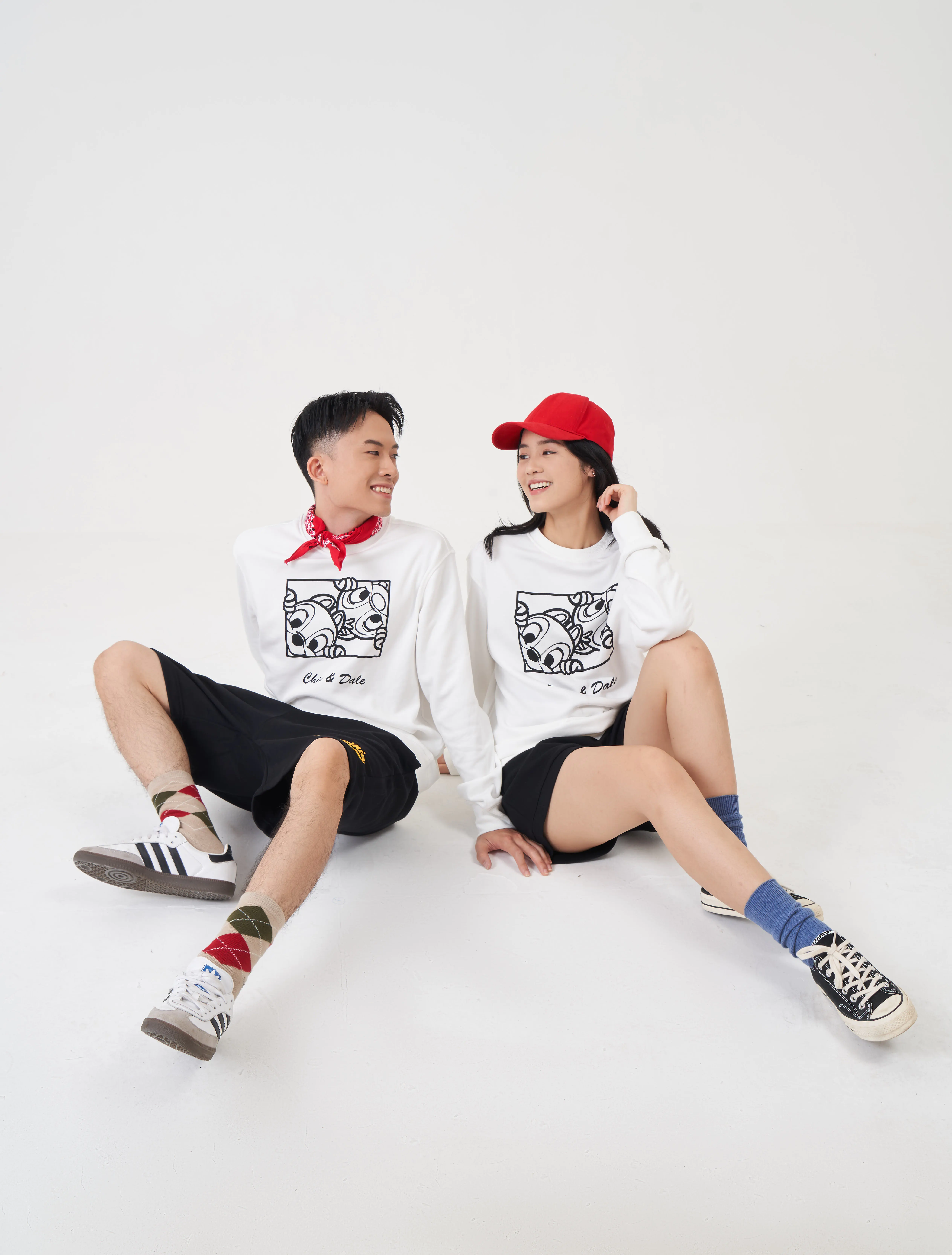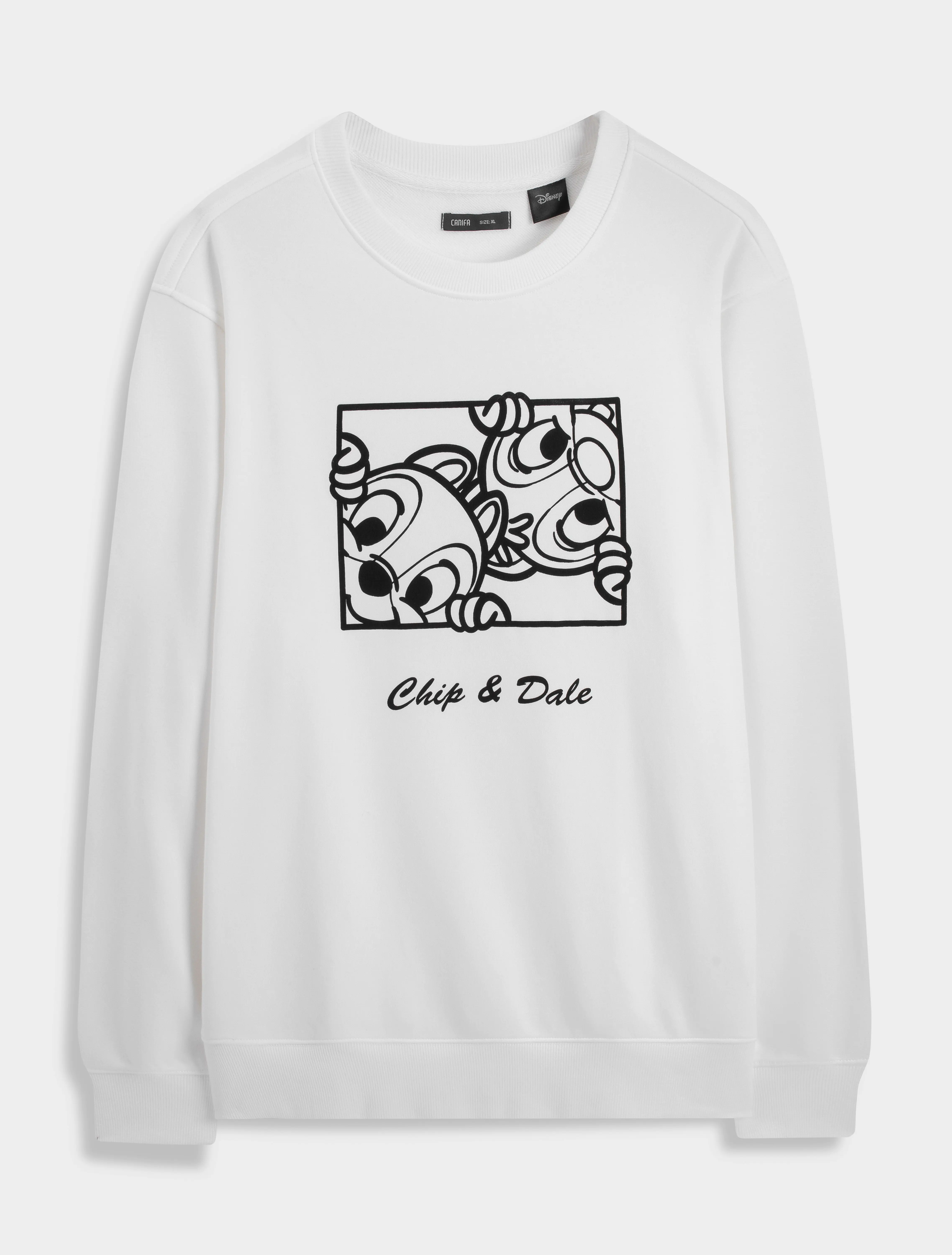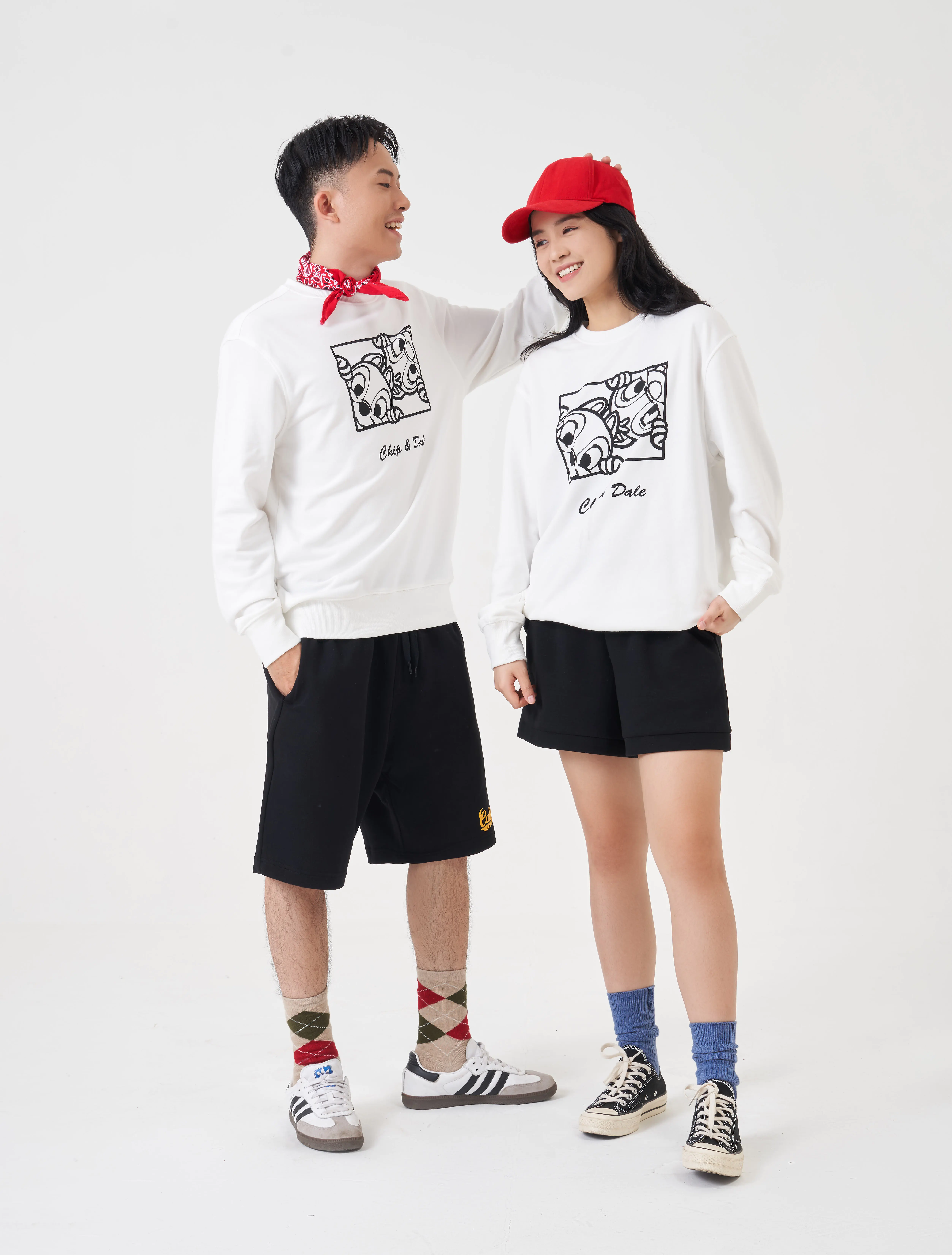 Áo nỉ cổ tròn dáng unisex, phù hợp cho cả nam và nữ mặc. Áo có bo gấu rib, co giãn đàn hồi tốt, áo in hình in nhân vật bản quyền Disney Chip & Dale.