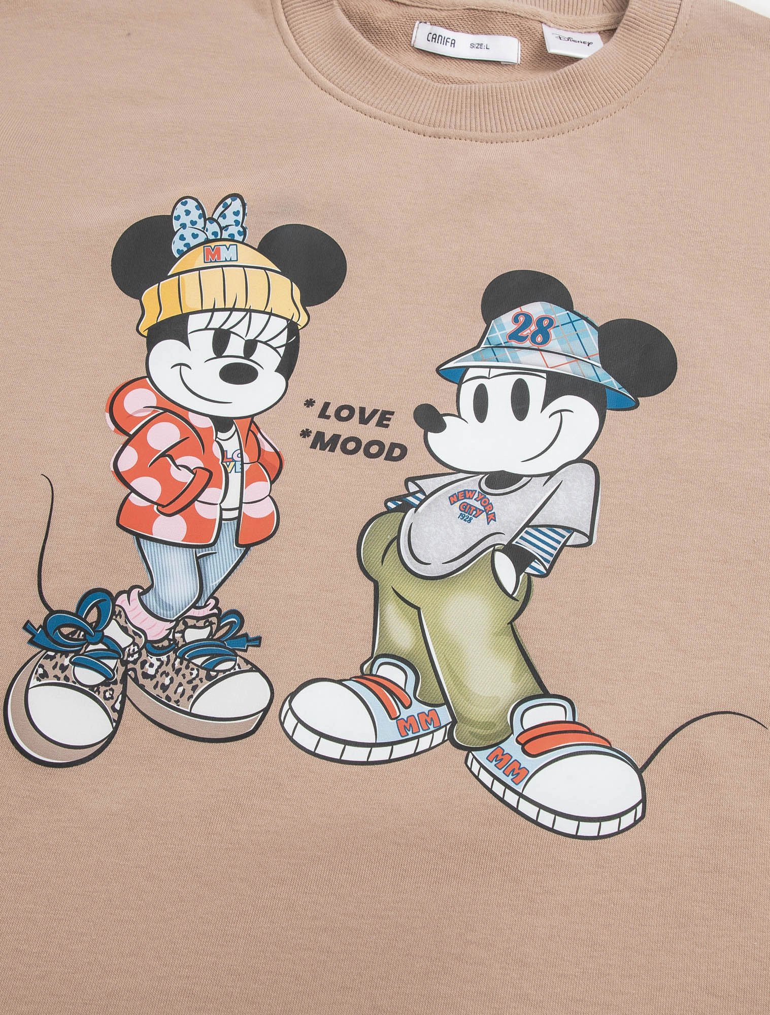 Áo nỉ unisex người lớn hình in Mickey, phom dáng rộng dễ mặc.