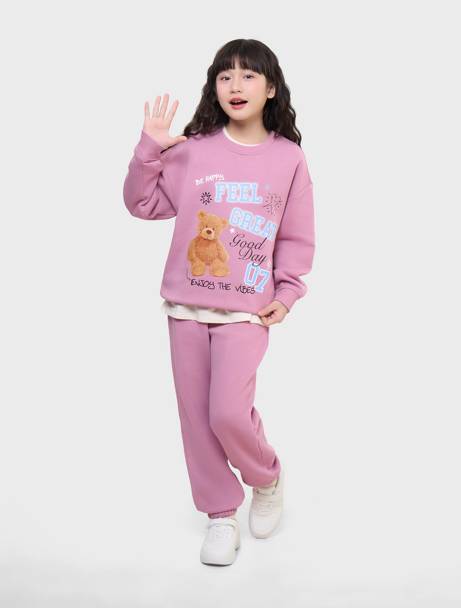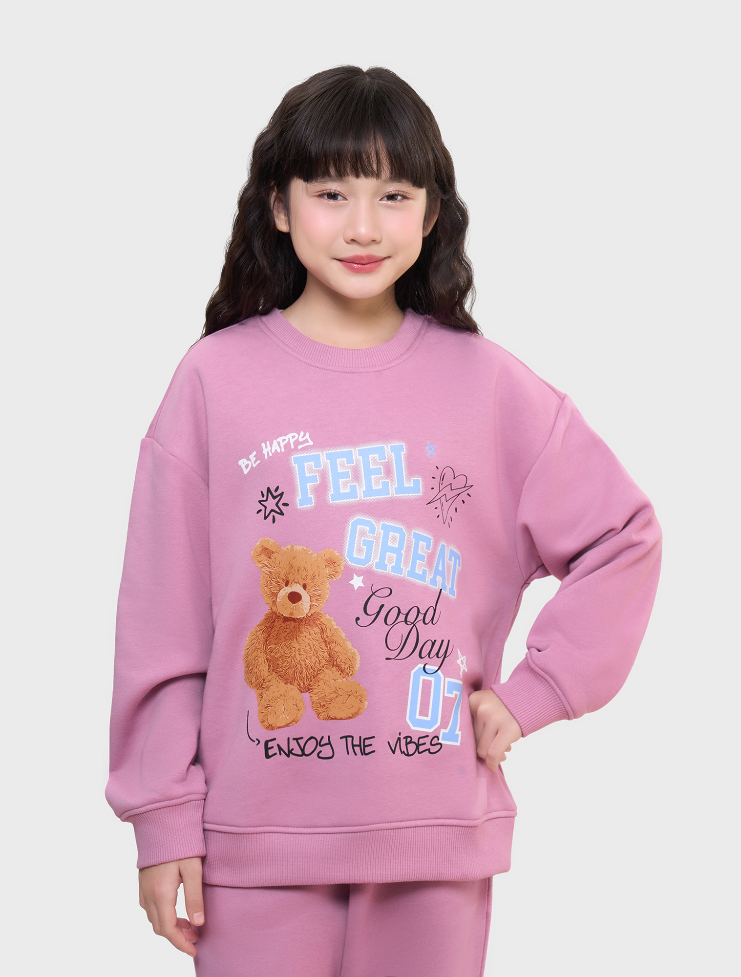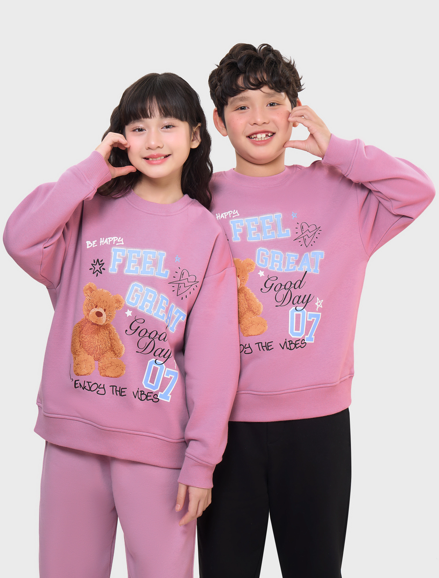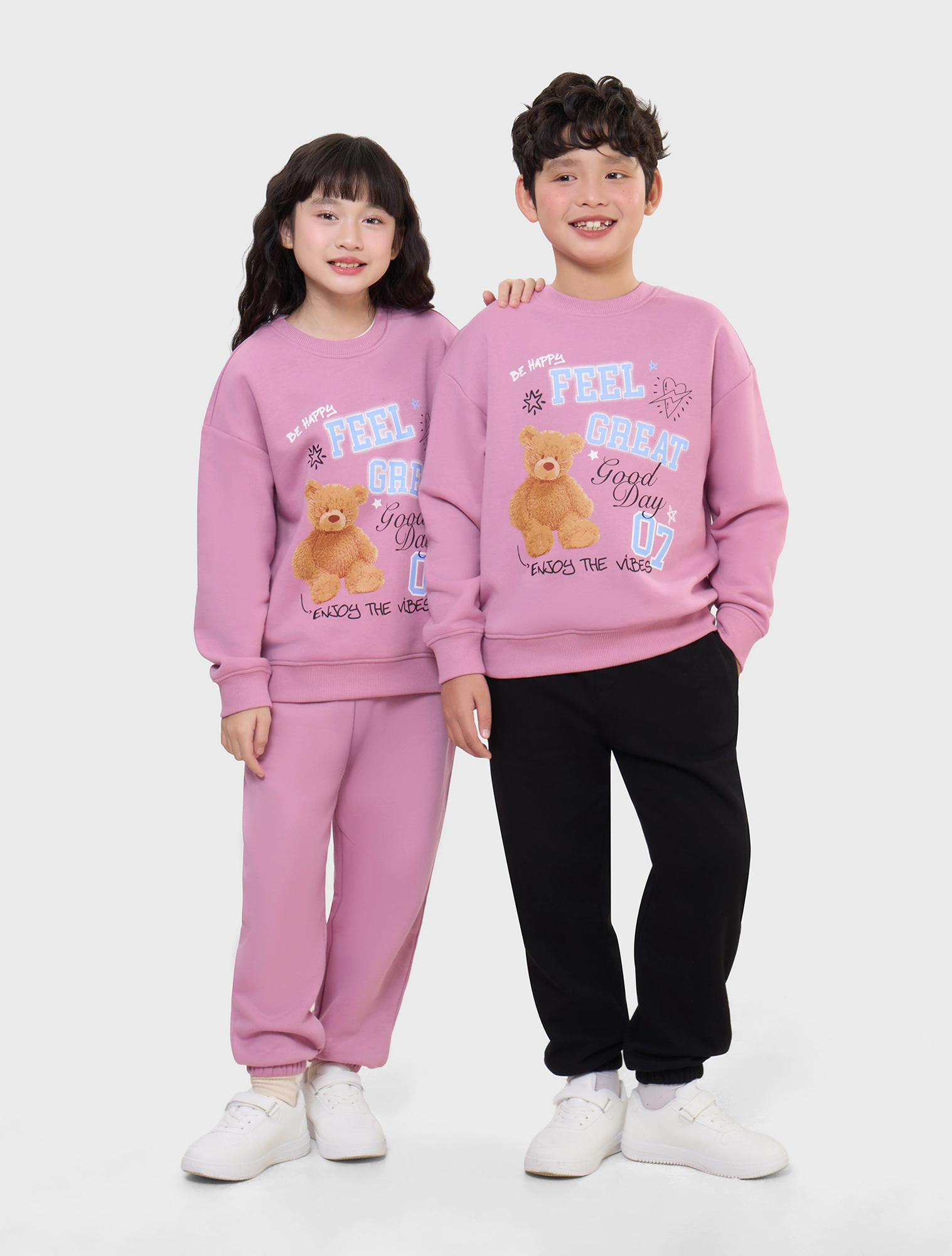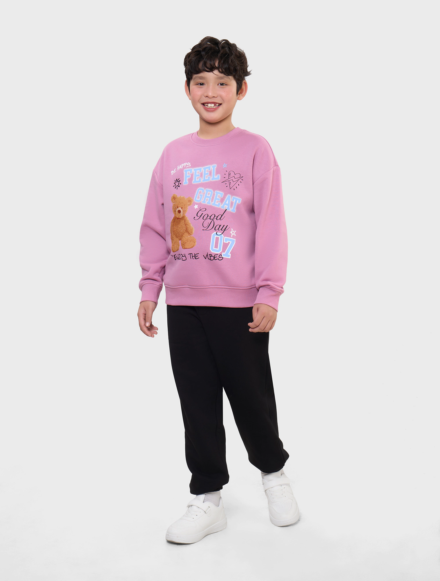 Áo nỉ unisex chất liệu cào bông, hình in to khỏe khoắn tạo sự năng động cho trẻ.