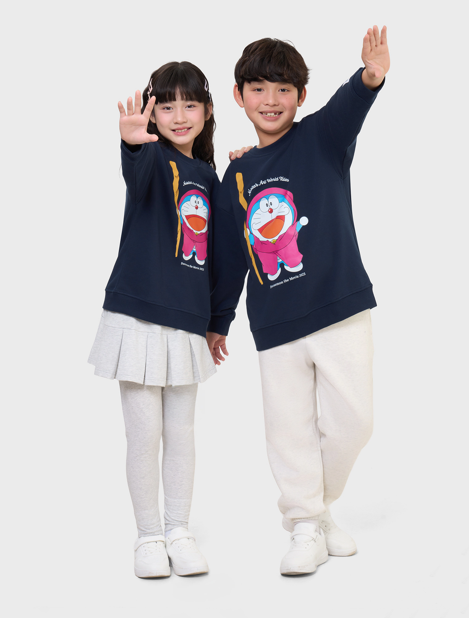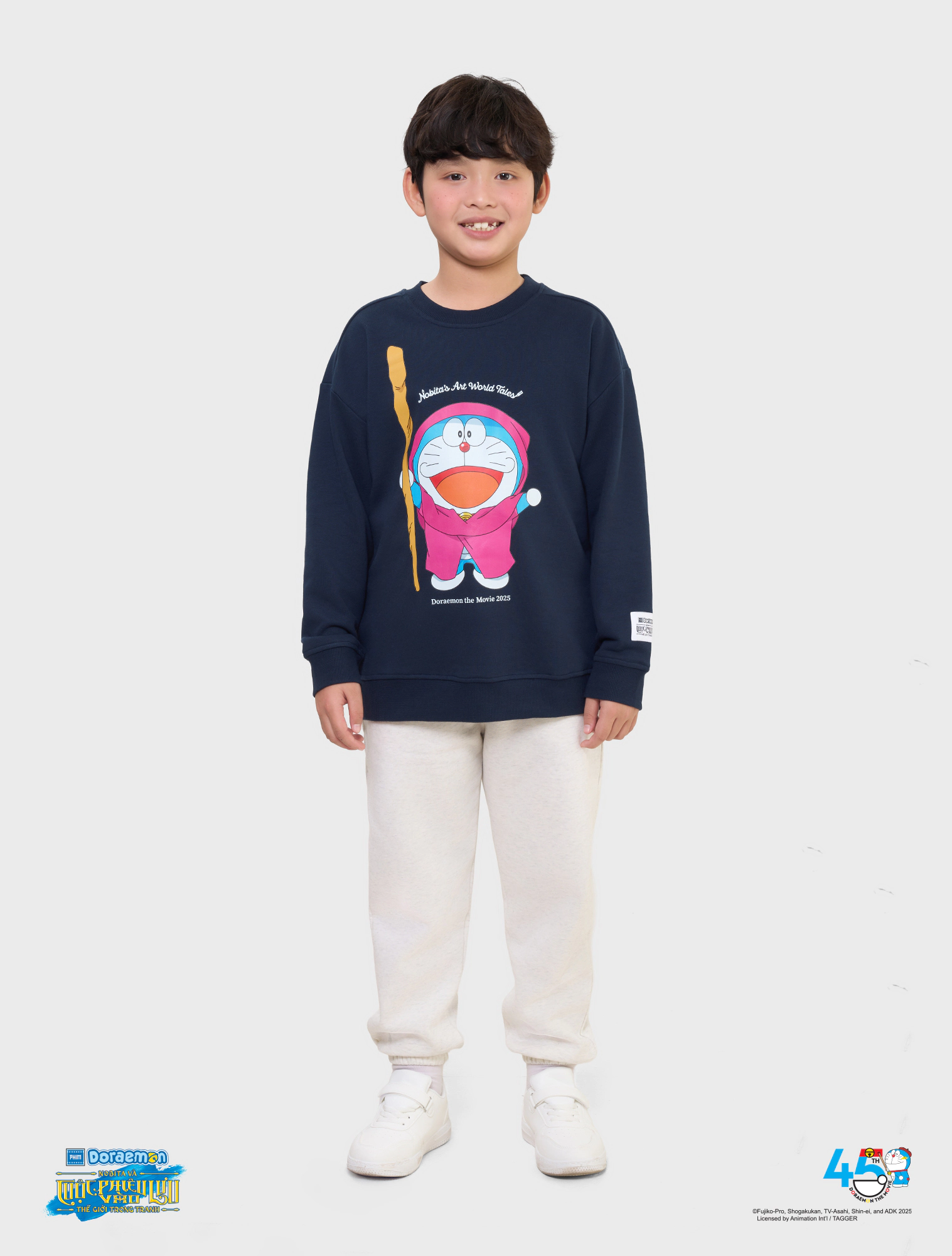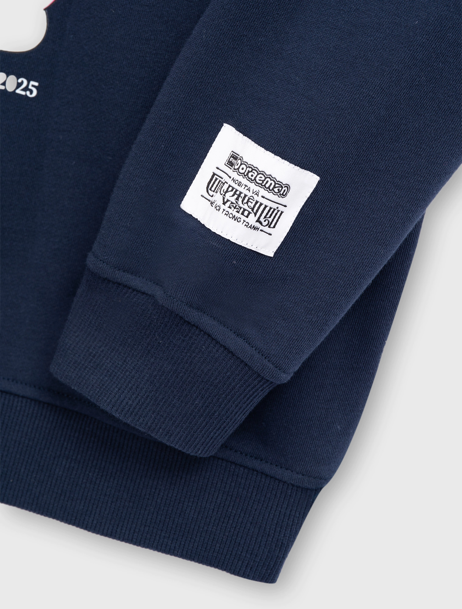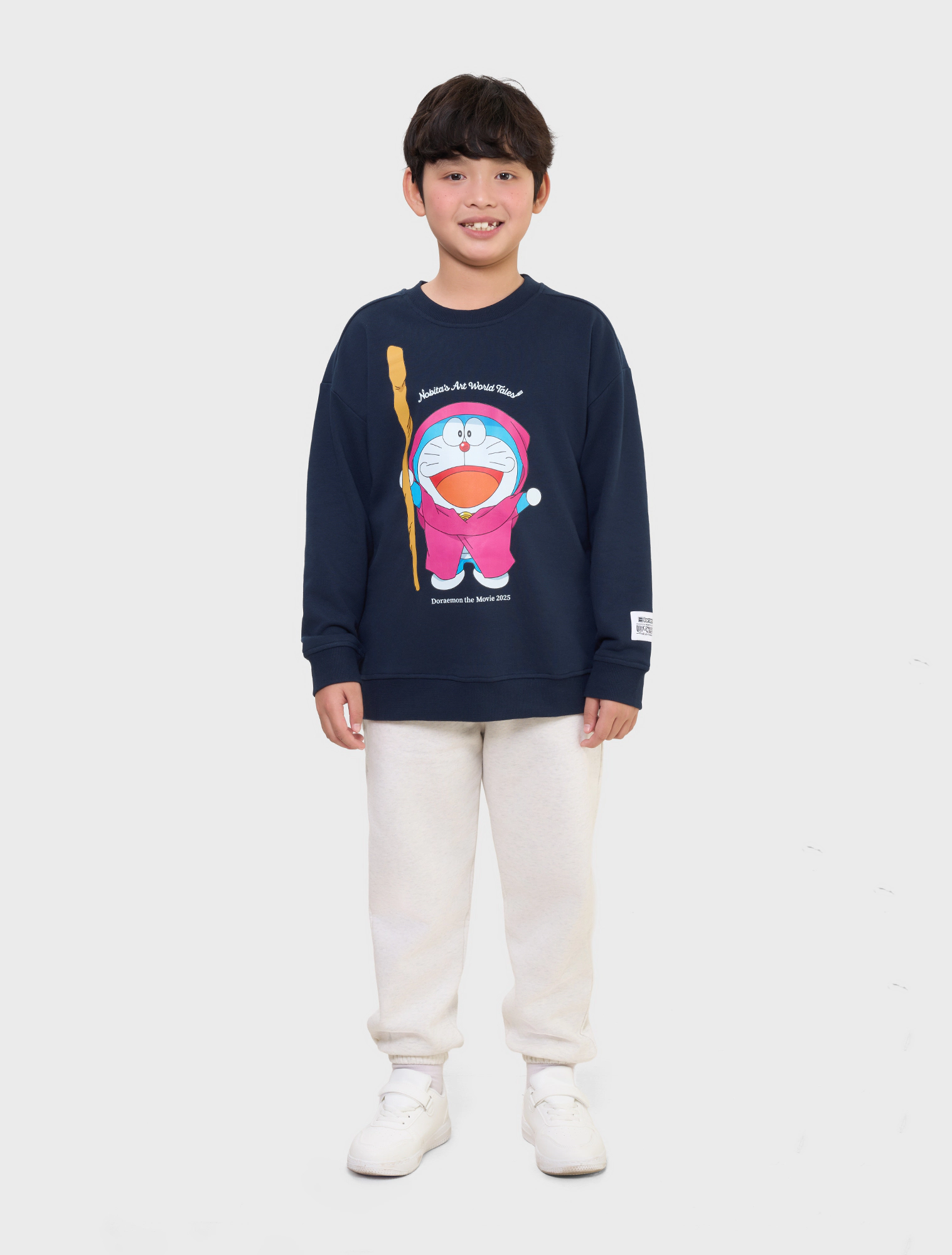 Áo nỉ vòng lông unisex trẻ em. Phom dáng cơ bản dễ mặc. Màu sắc trung tính phù hợp cả bé trai và bé gái. HÌnh in Doraemon hiện đại, dễ thương, tay áo có may mác trang trí. Chất liệu Cotton pha mềm mại giữ ấm tốt.