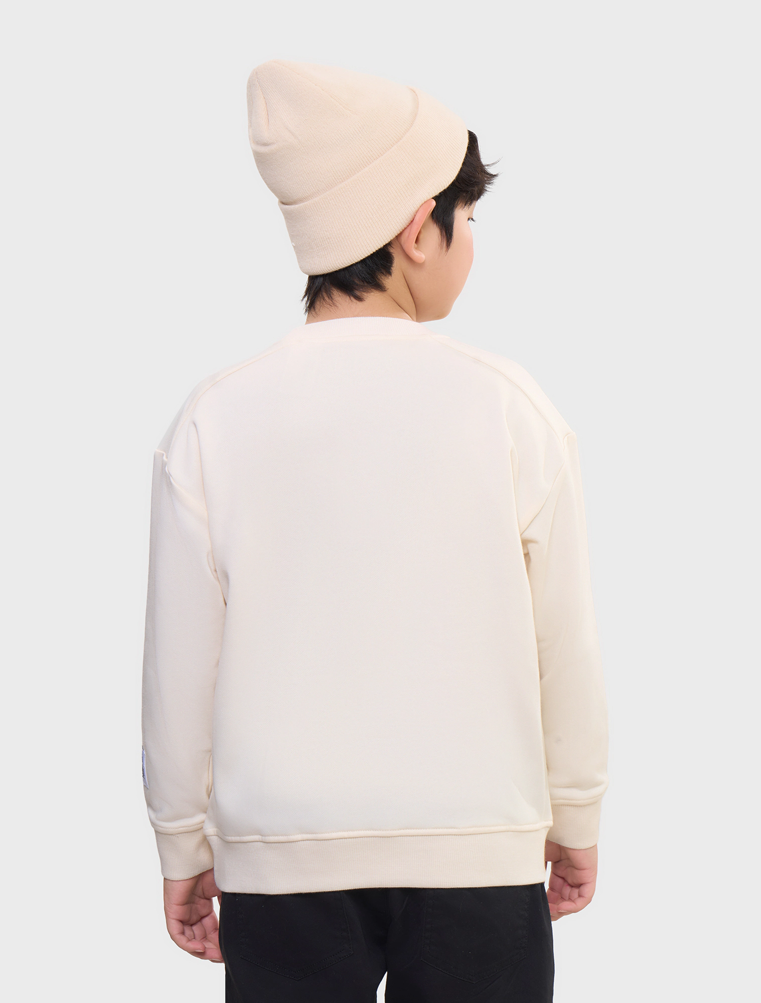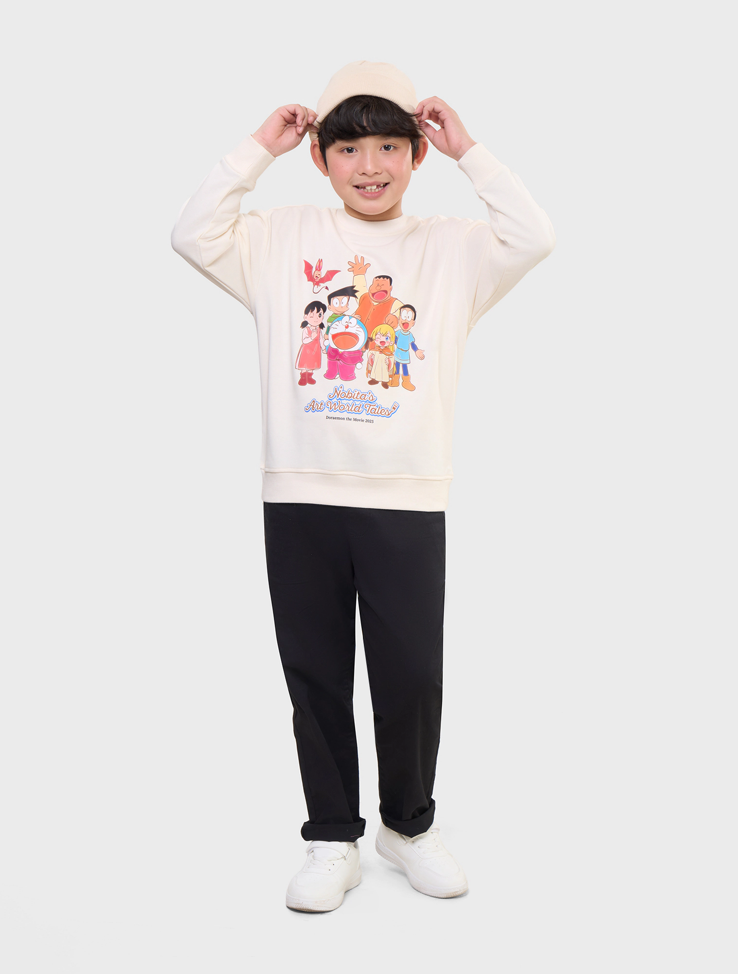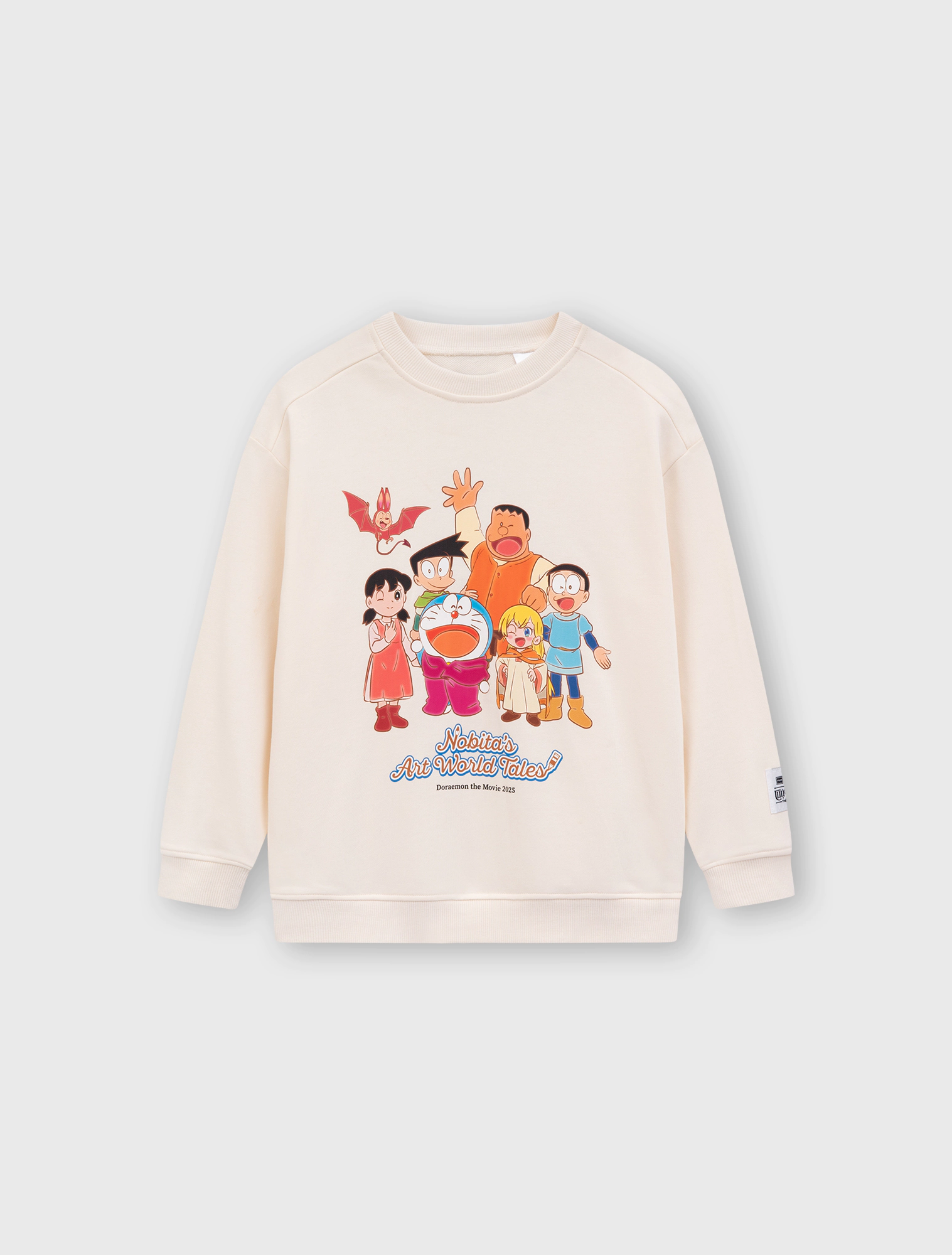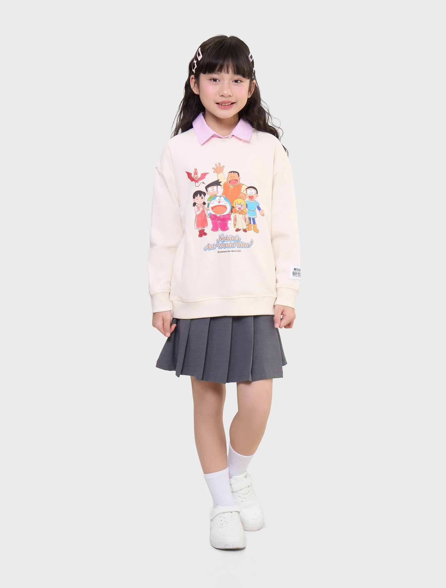 Áo nỉ vòng lông unisex trẻ em. Phom dáng cơ bản dễ mặc. Màu sắc trung tính phù hợp cả bé trai và bé gái. HÌnh in Doraemon hiện đại, dễ thương, tay áo có may mác trang trí. Chất liệu Cotton pha mềm mại giữ ấm tốt.