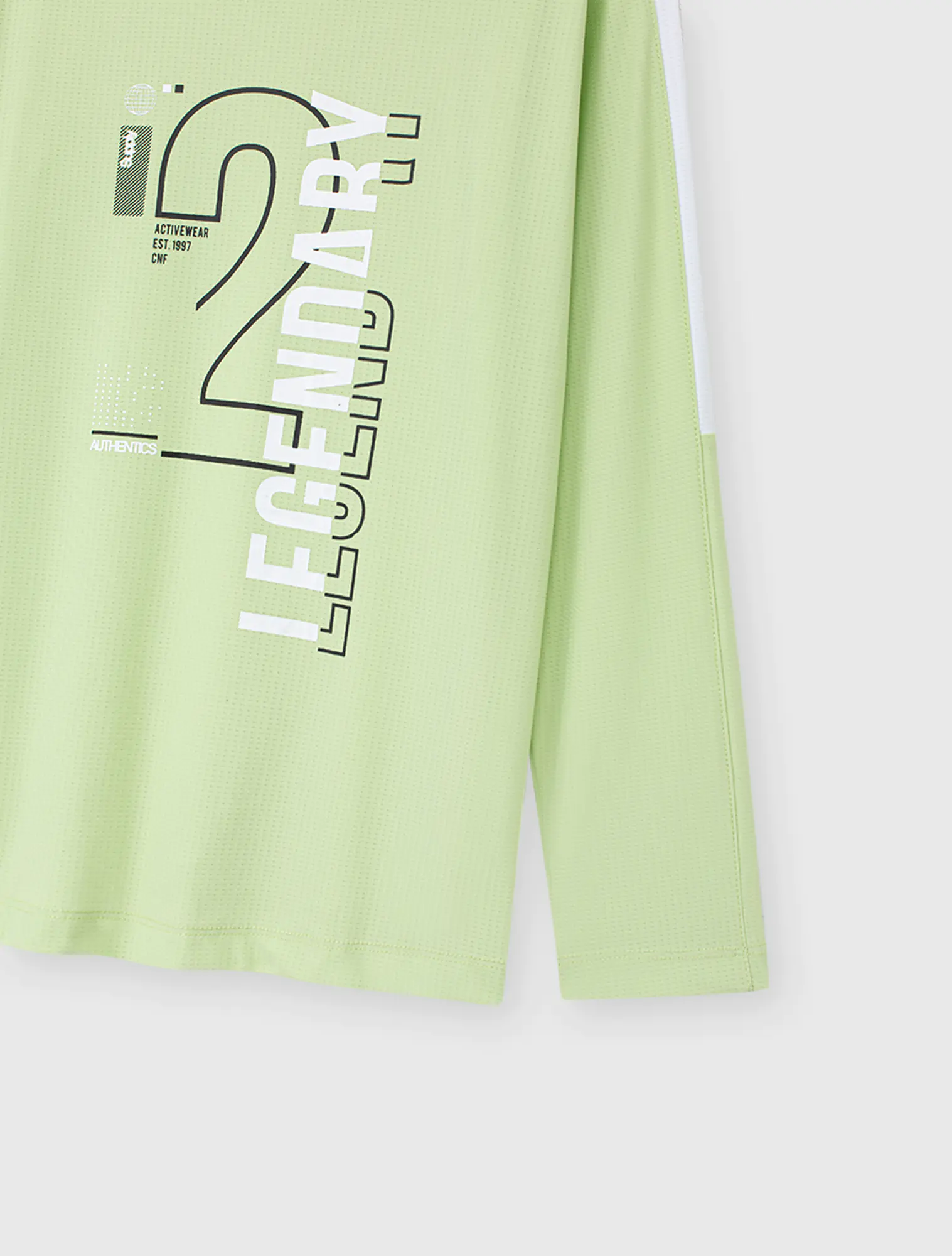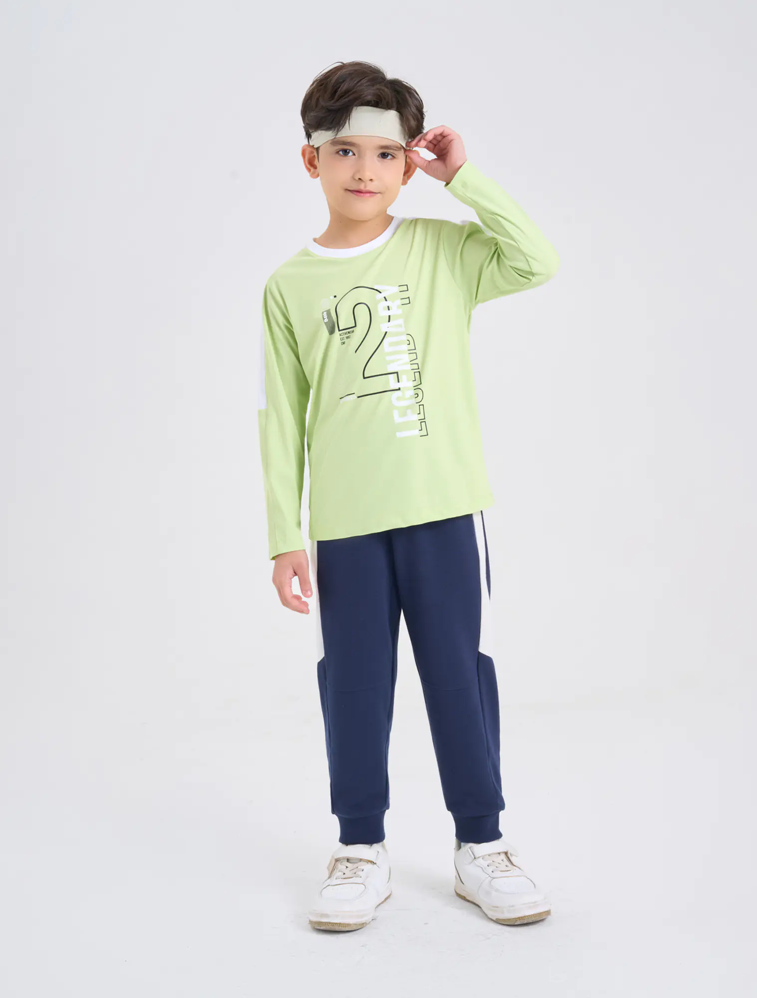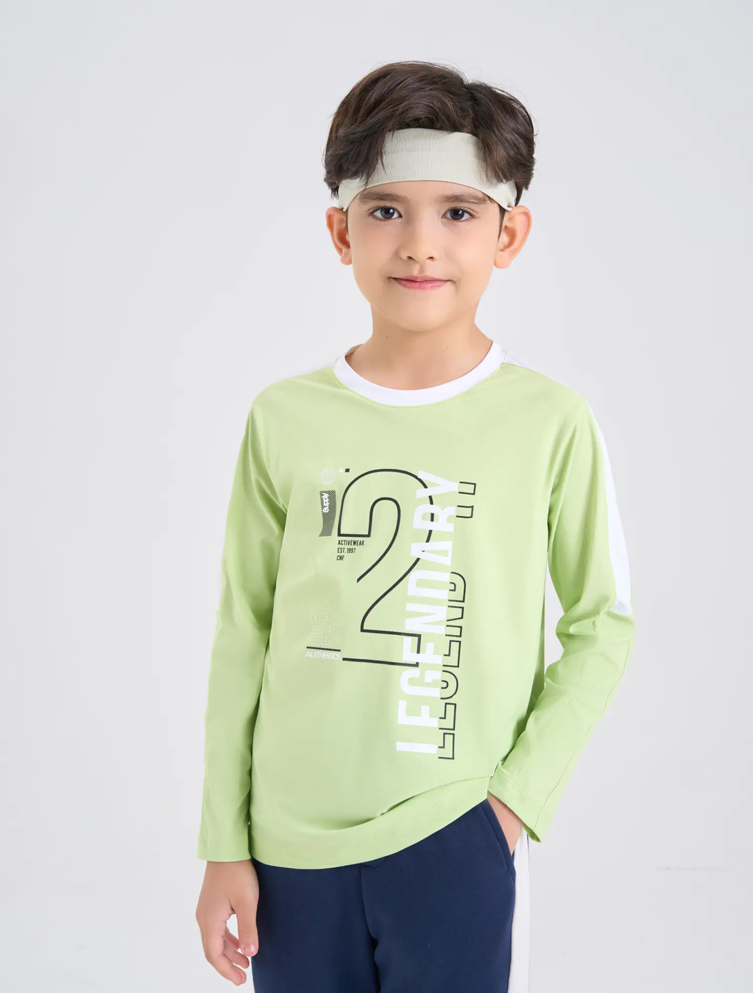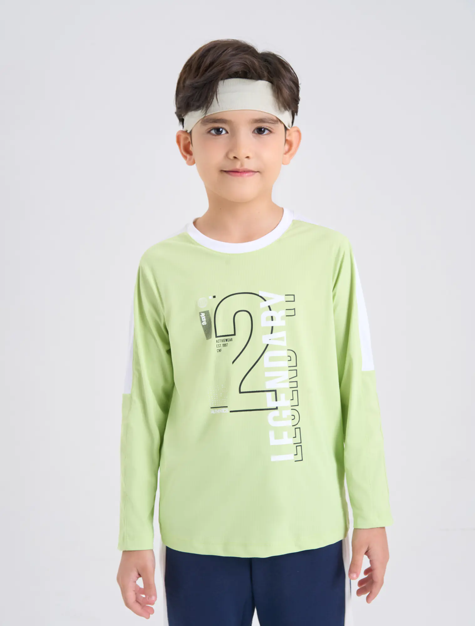 Áo phông kiểu dáng thể thao cho bé, mix màu can phối khỏe khoắn, chất liệu active, phom dáng cơ bản phù hợp cho trẻ vận động và chơi thể thao.