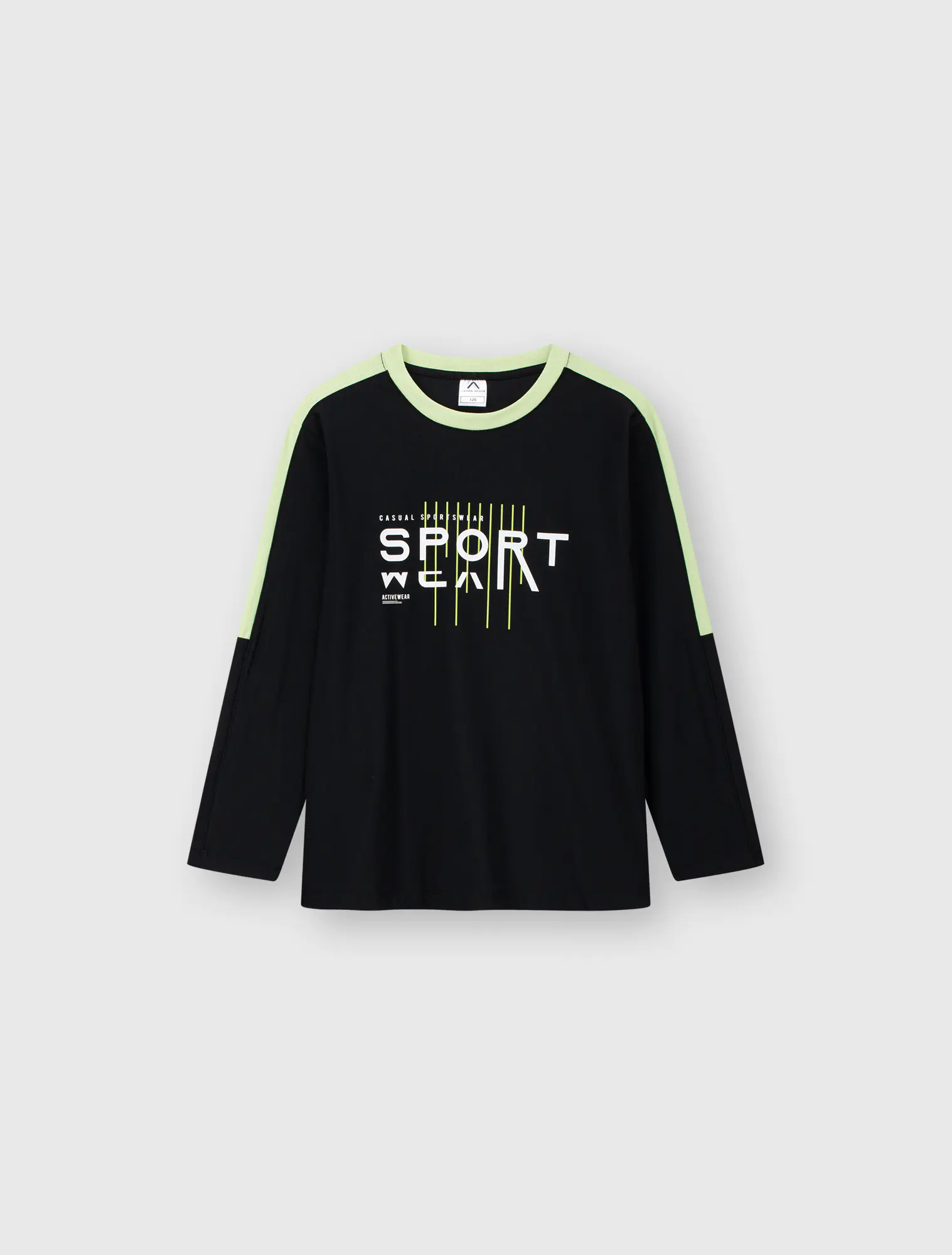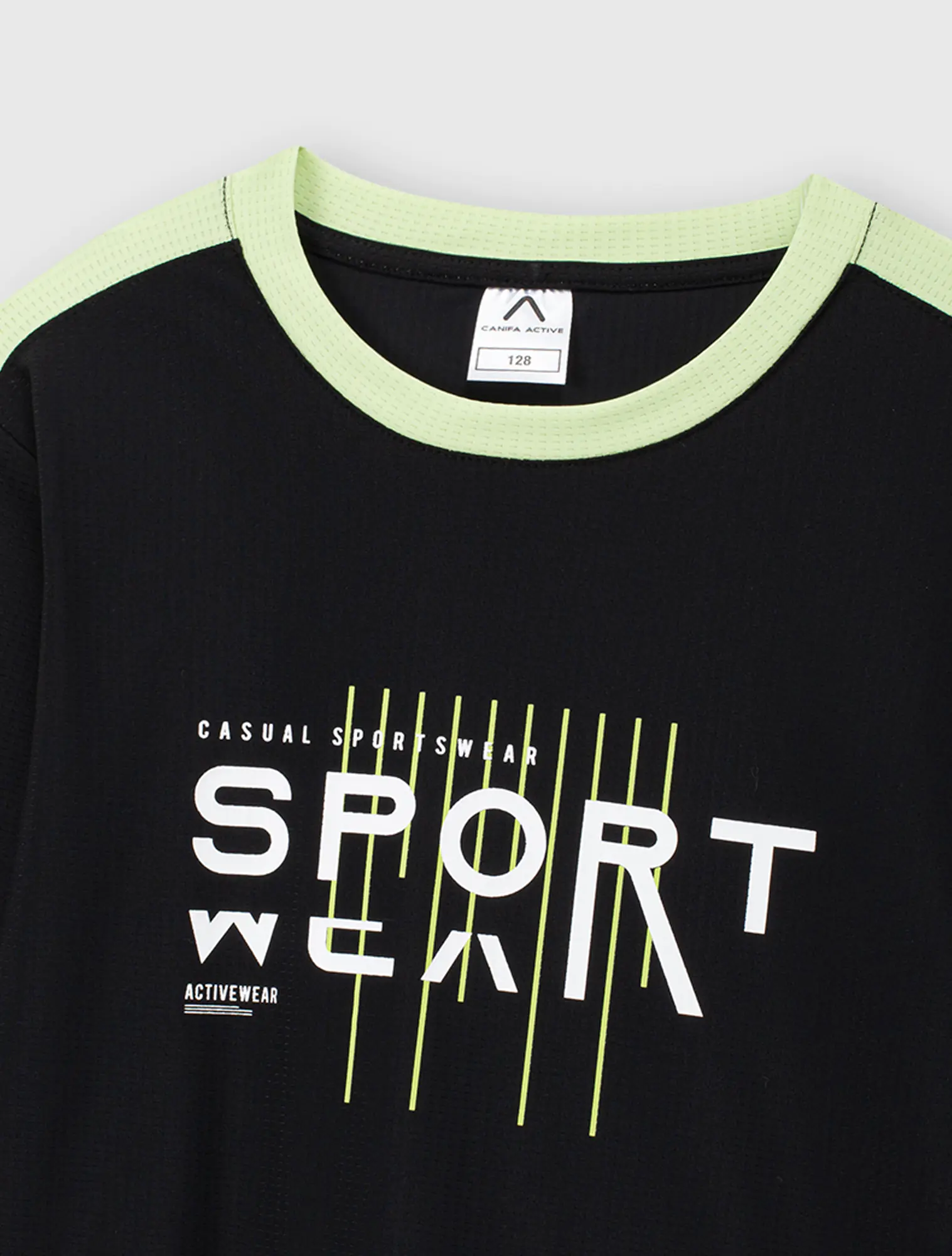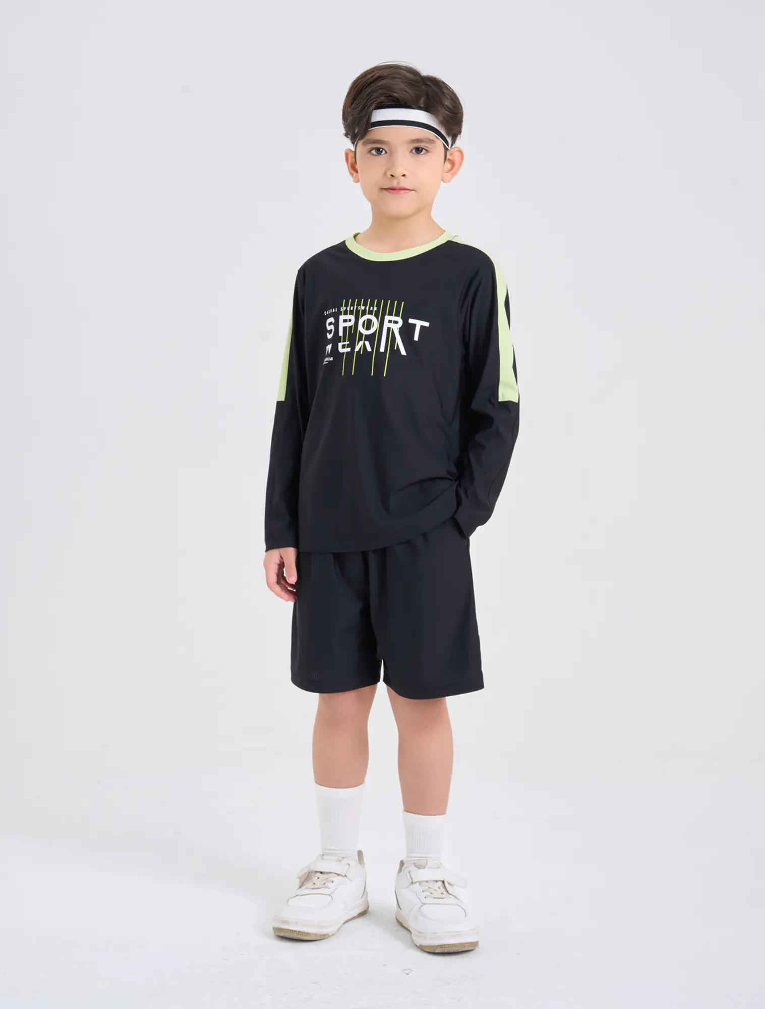 Áo phông kiểu dáng thể thao cho bé, mix màu can phối khỏe khoắn, chất liệu active, phom dáng cơ bản phù hợp cho trẻ vận động và chơi thể thao.
