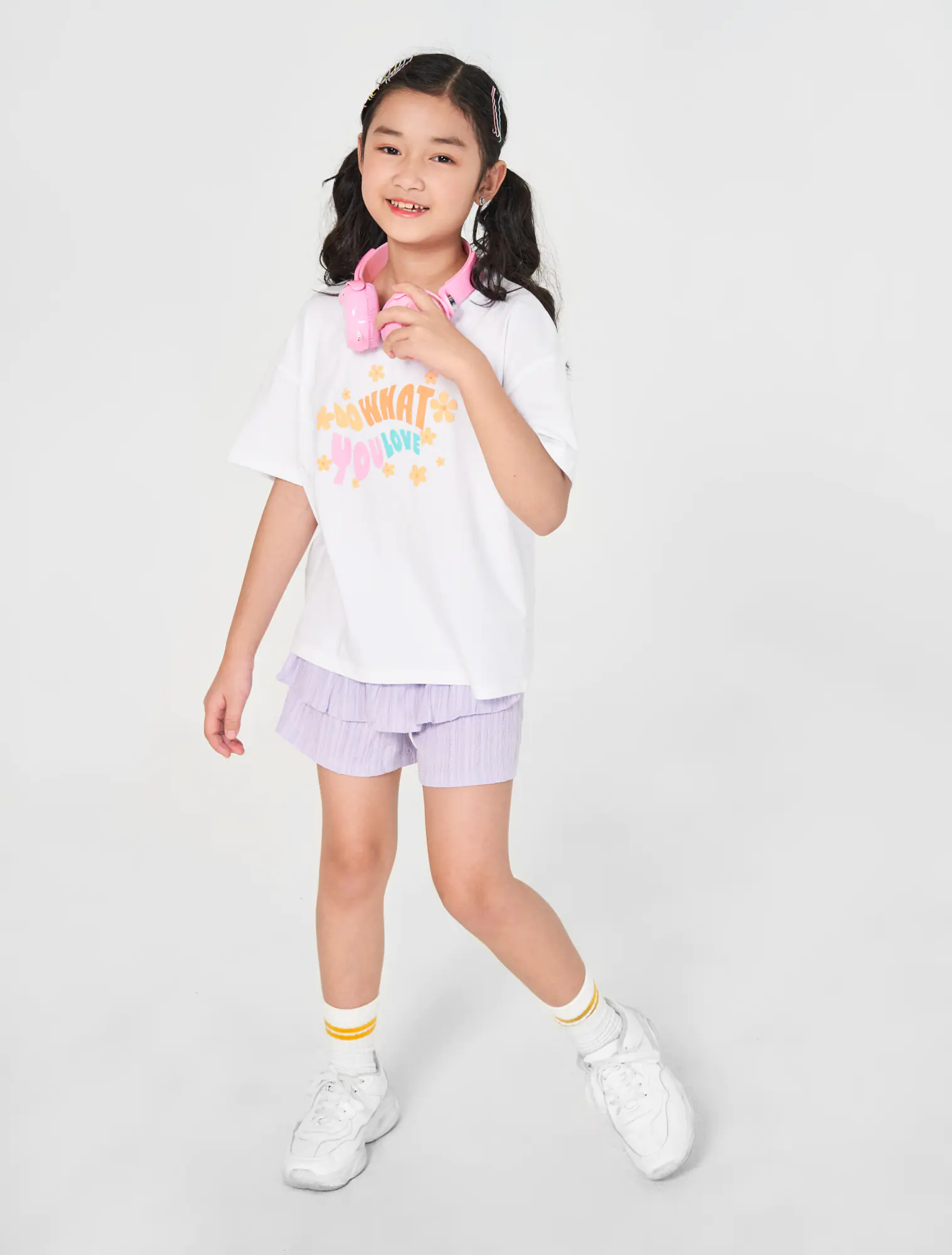 Áo phông bé gái in họa tiết dễ thương, chất liệu cotton spandex.