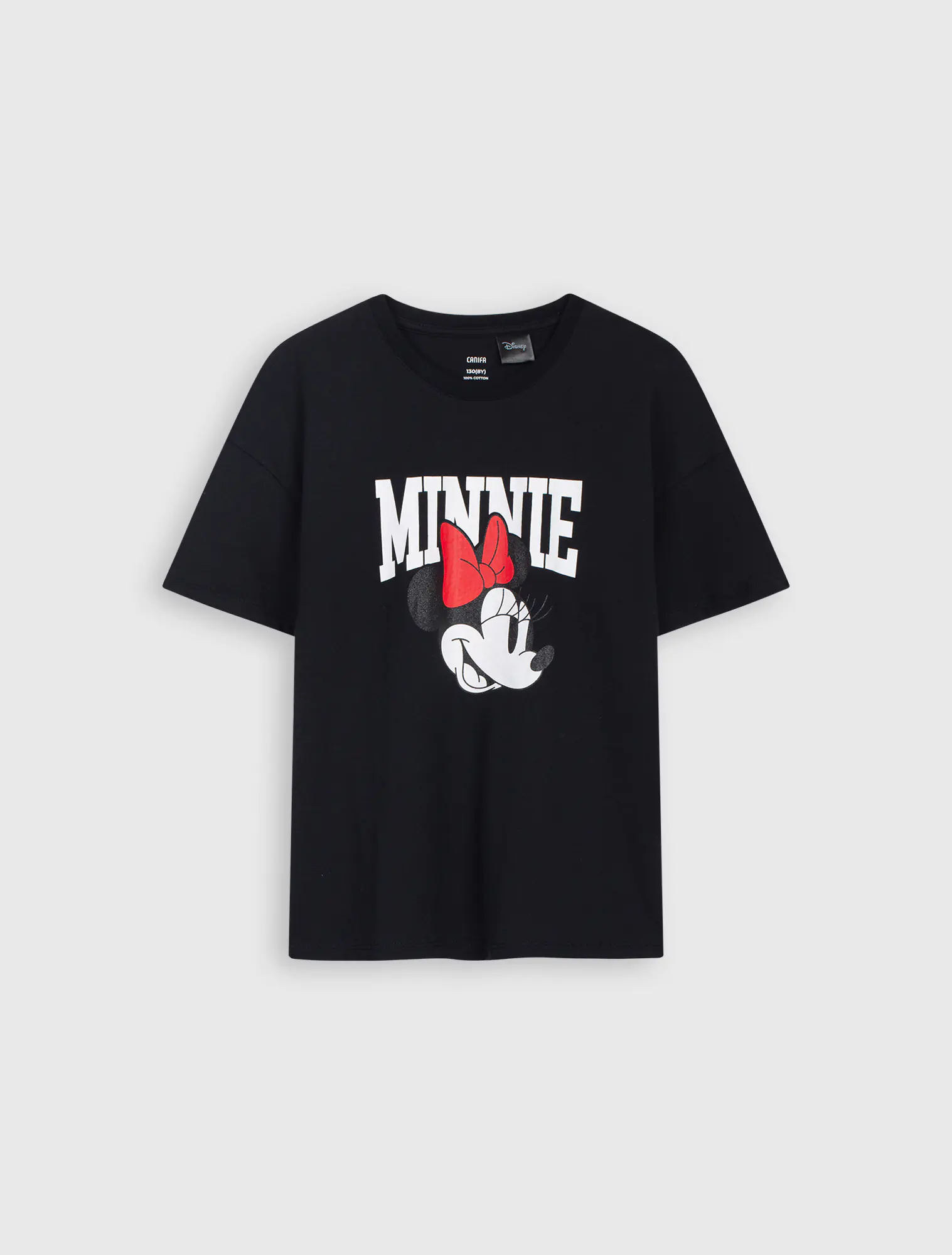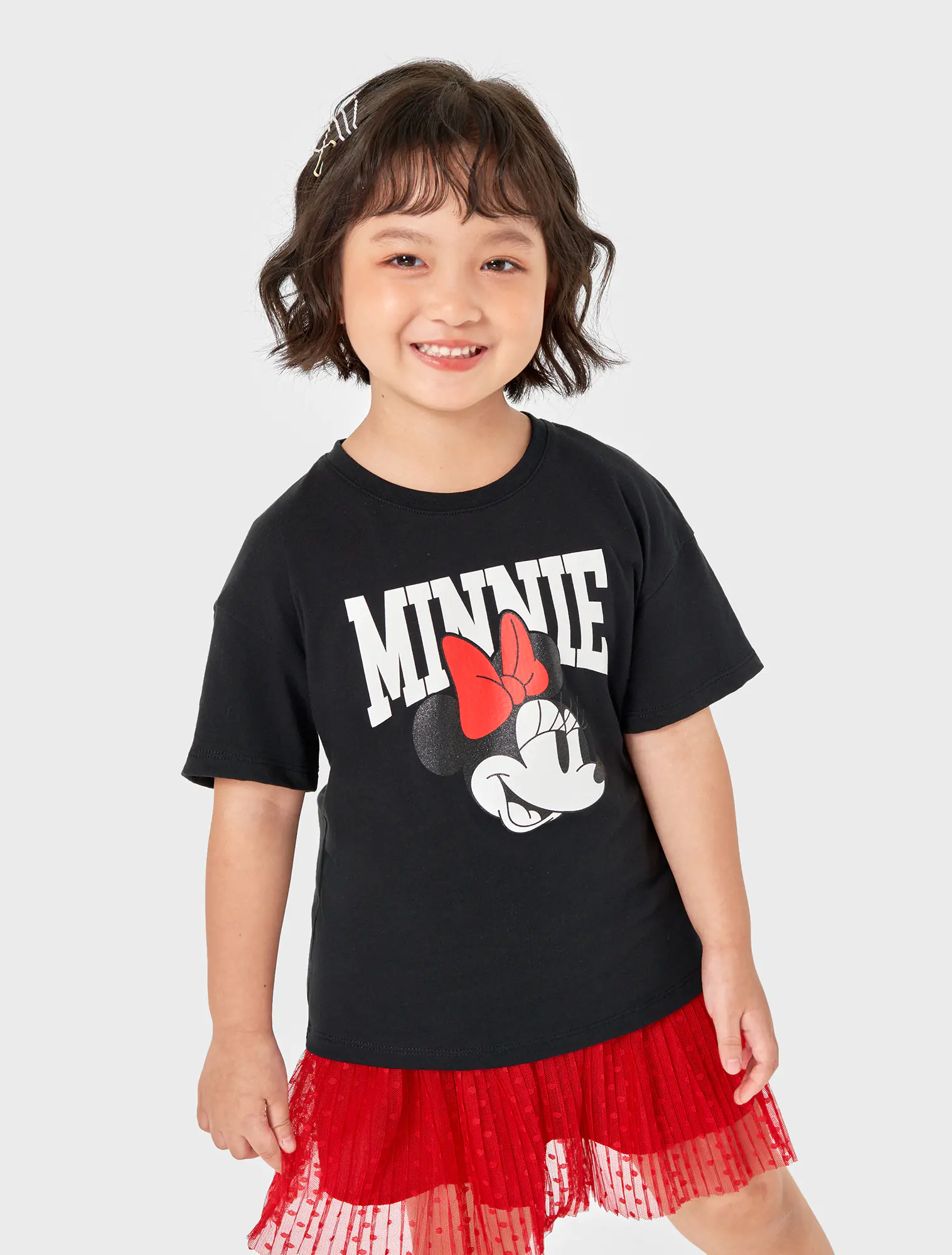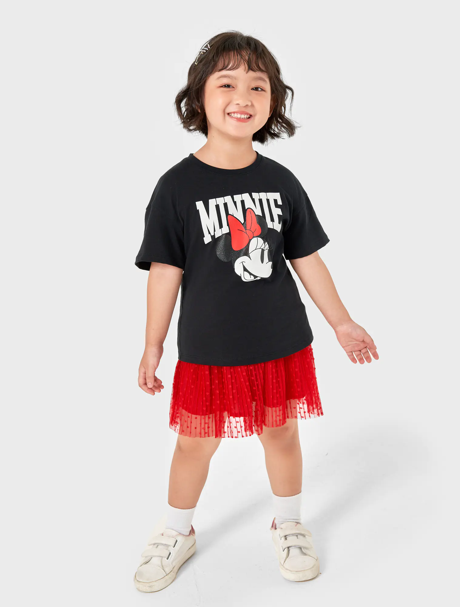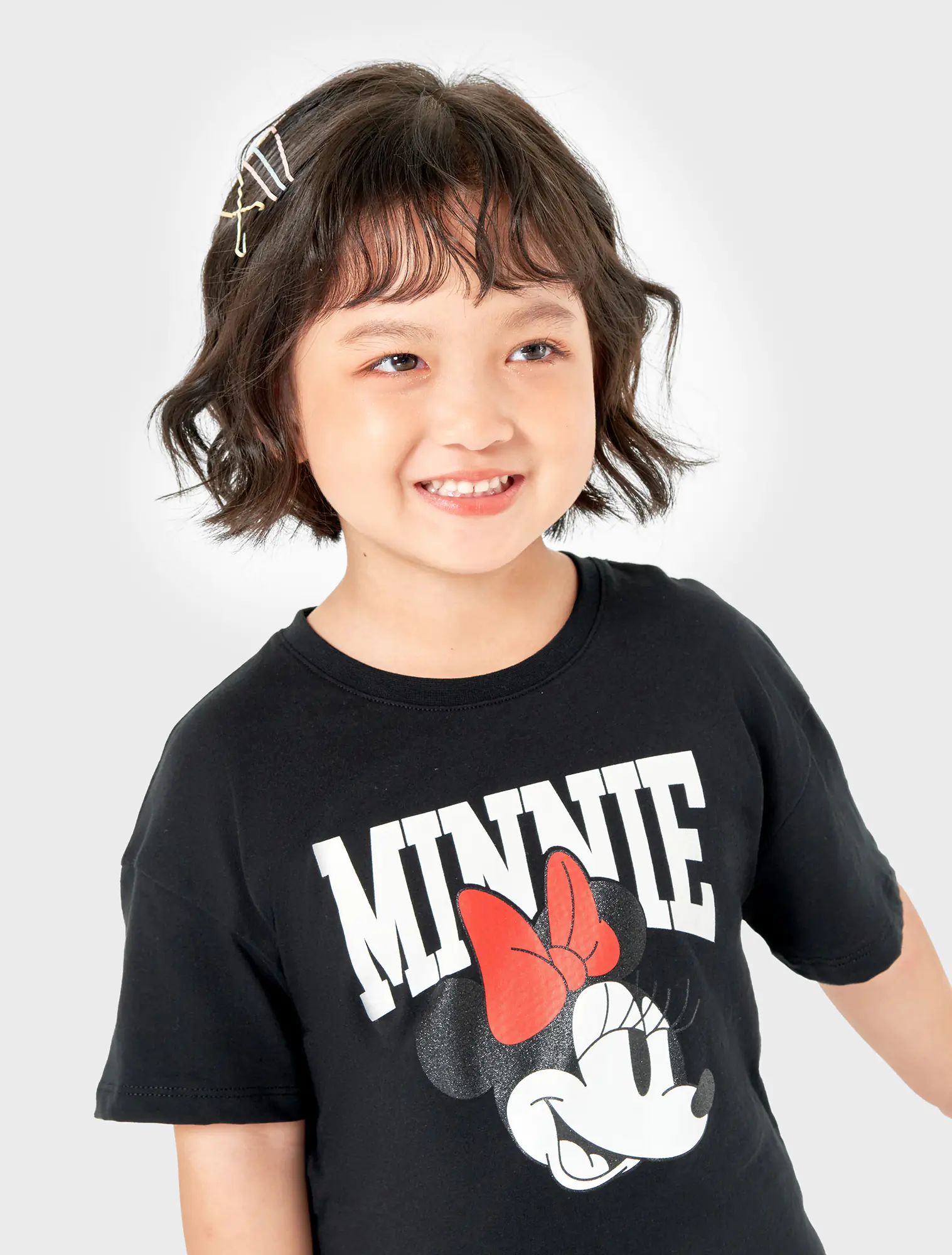 Áo phông bé gái cotton cổ tròn cộc tay có hình in Minnie