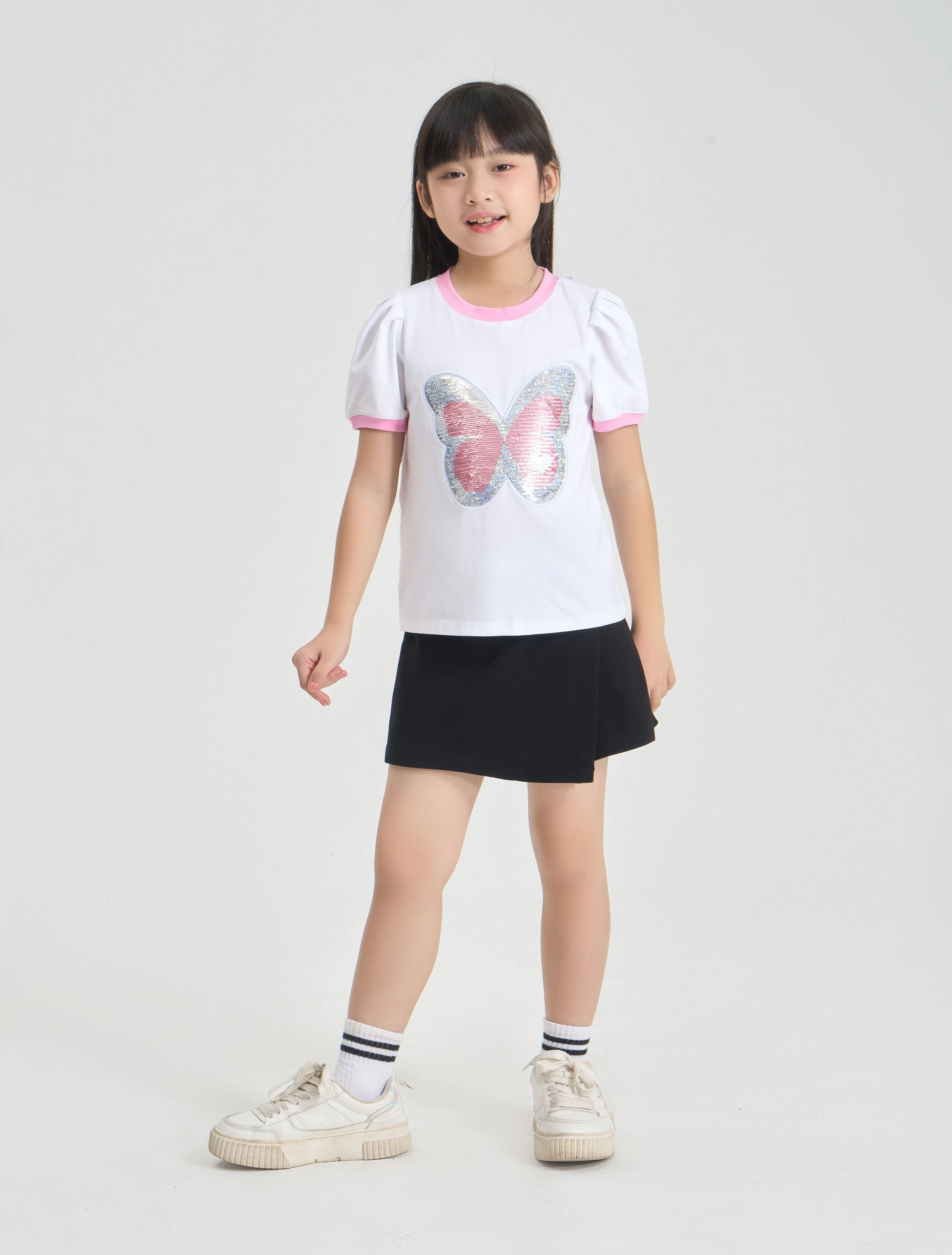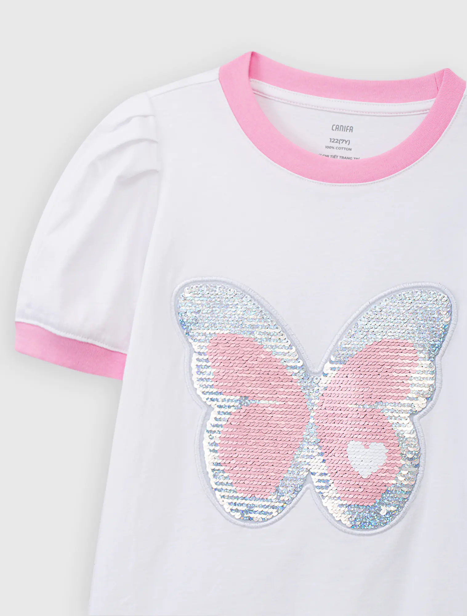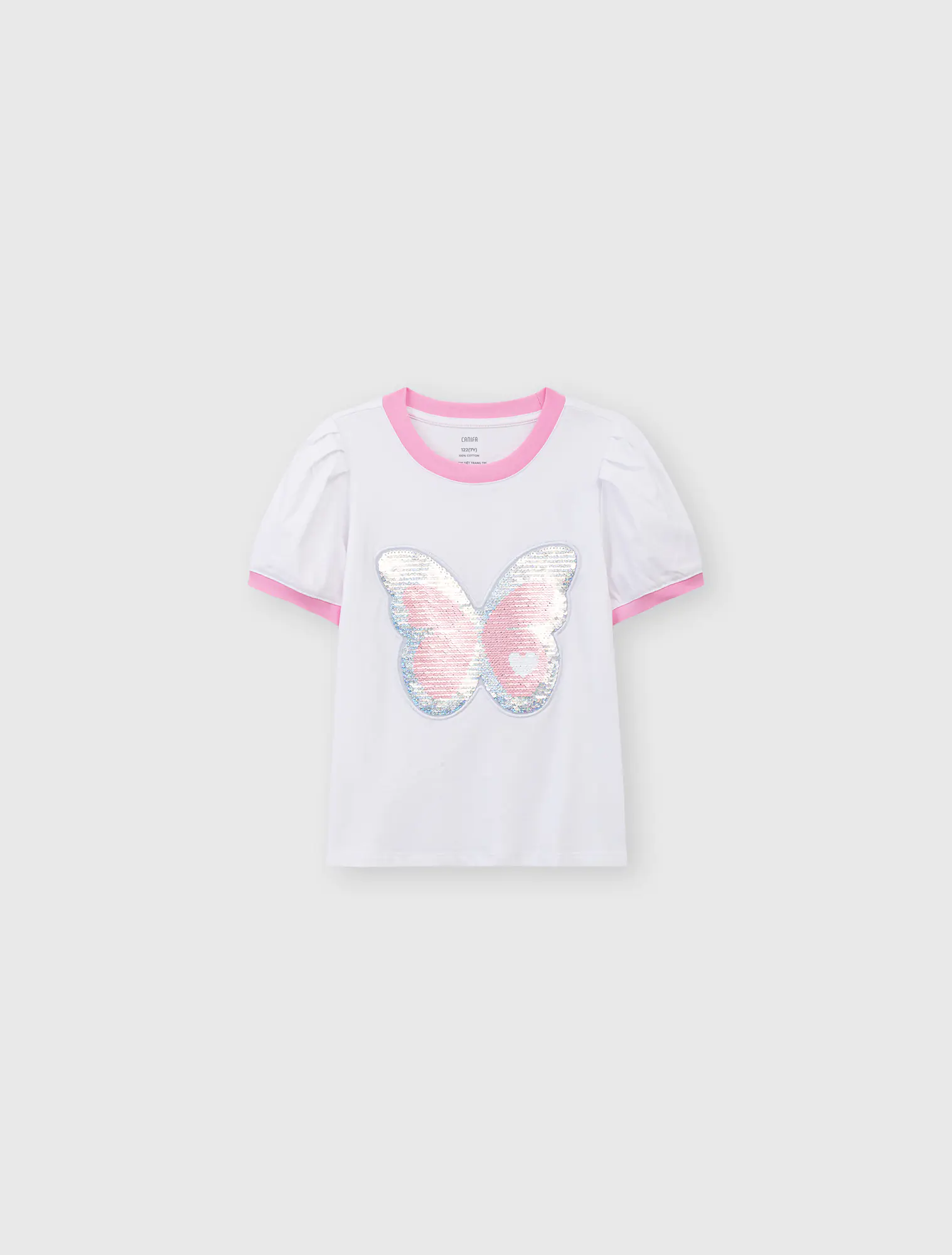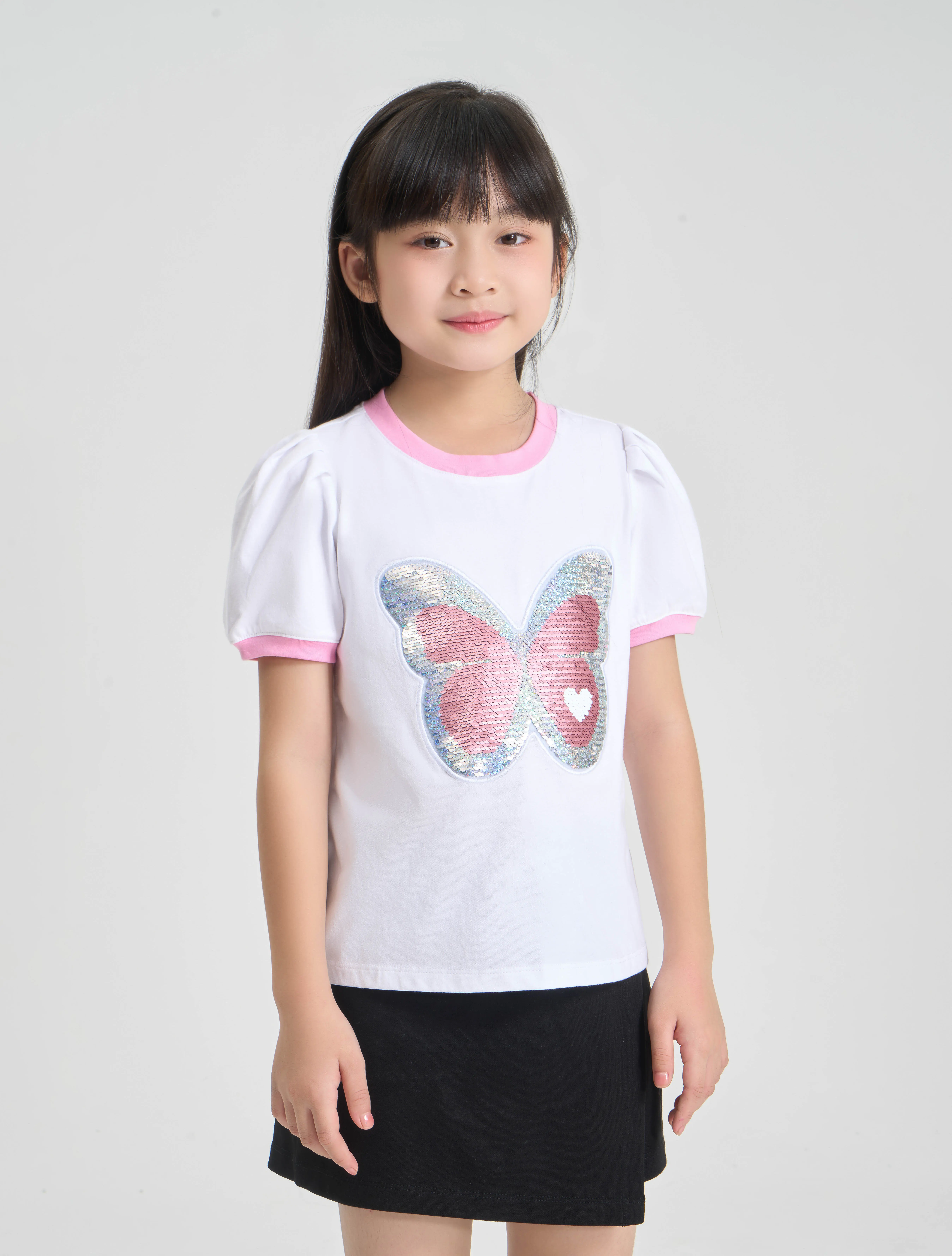 Áo phông bé gái chất liệu cotton USA thoáng mát mền mại, hình in nữ tính, phối màu tay áo, phù hợp sở thích của bé gái.