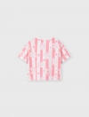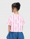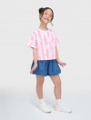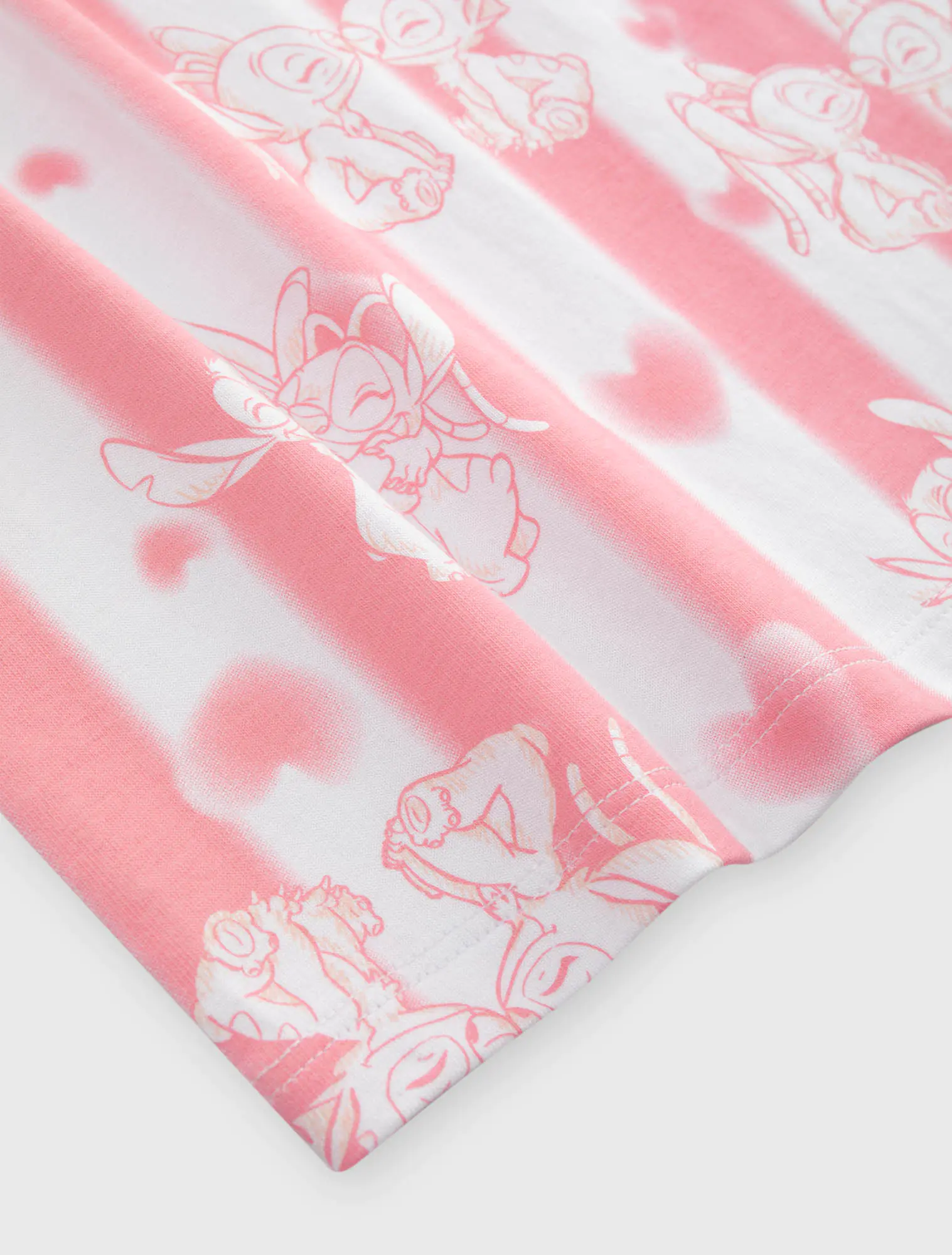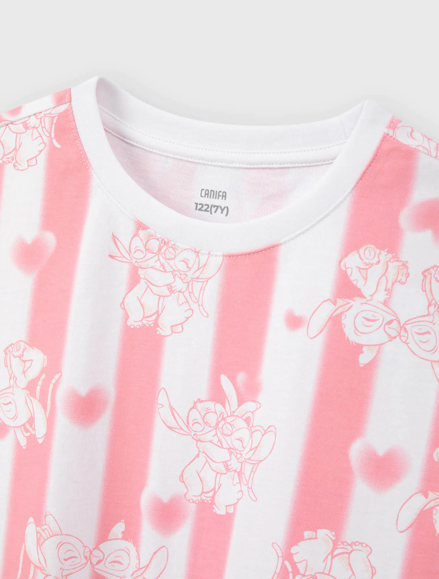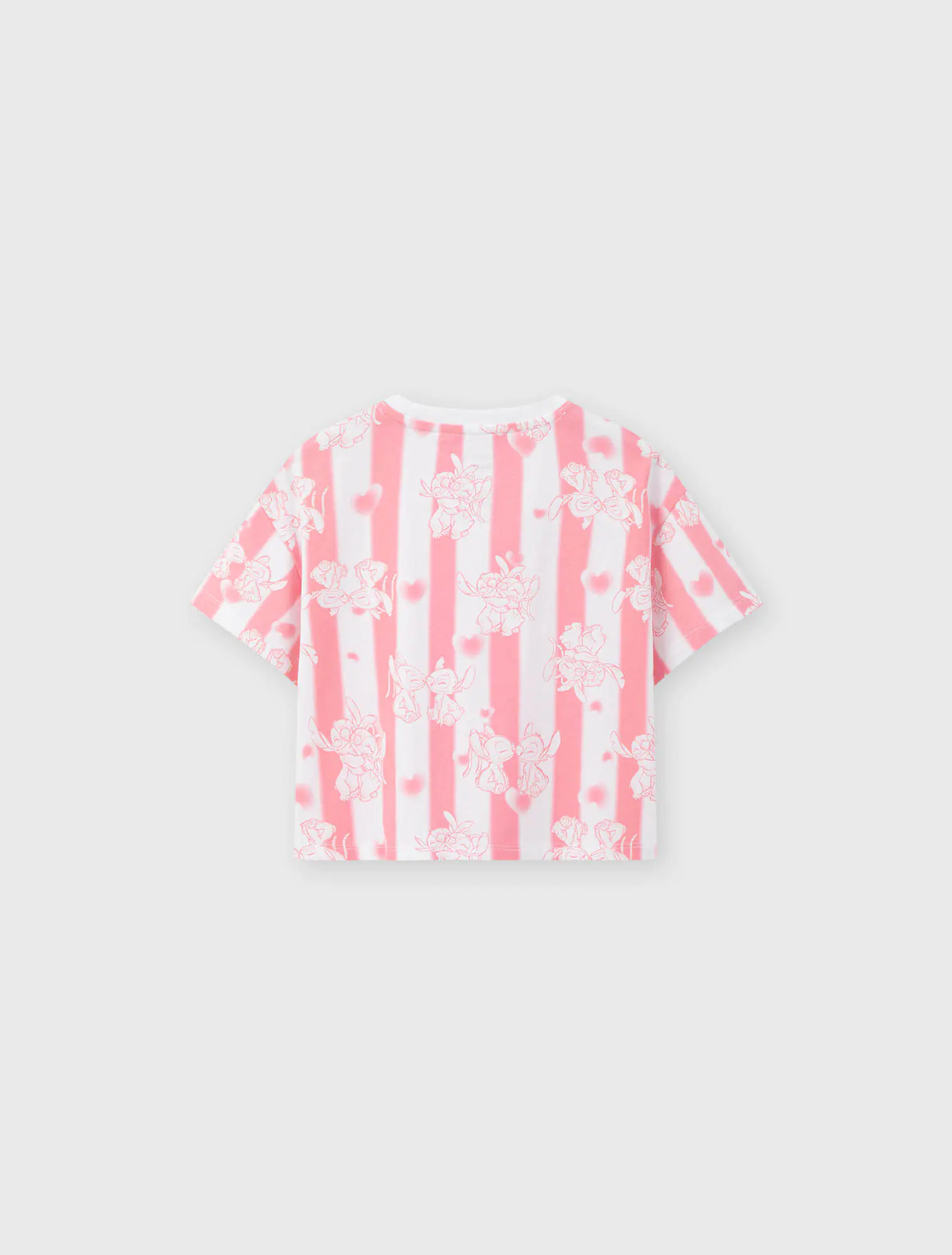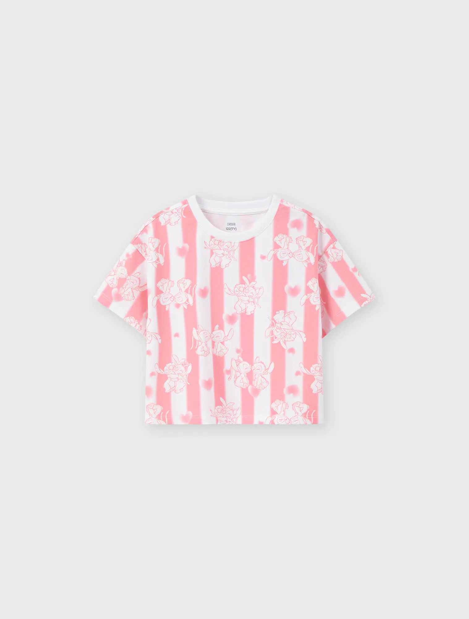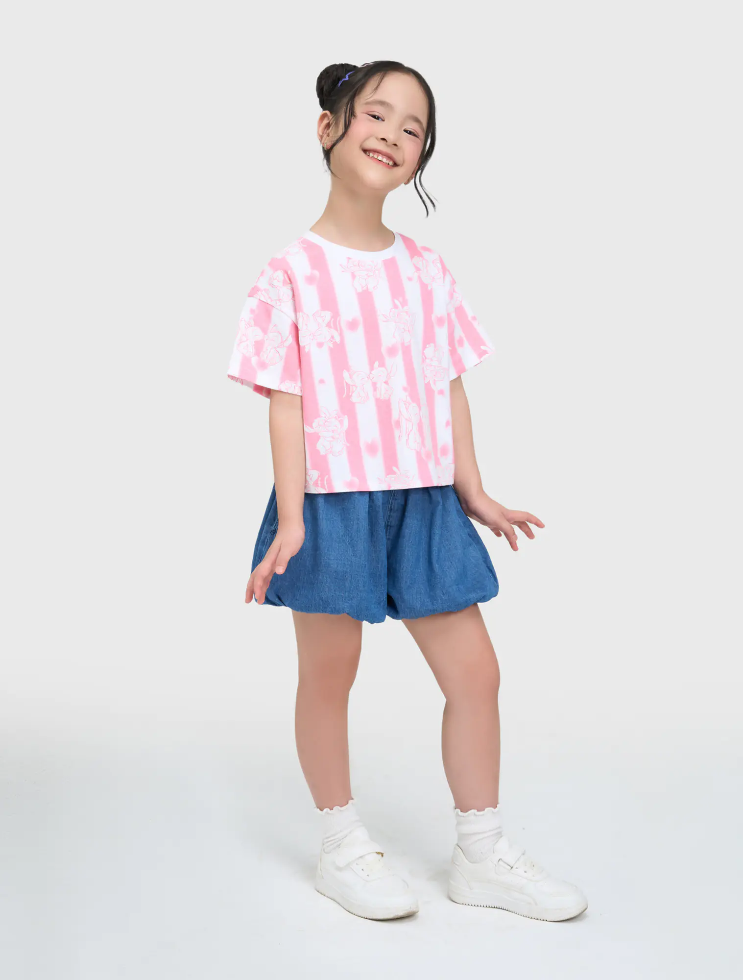 Áo thun cộc tay bé gái in hình Stitch, phom dáng crop vừa phải tạo sự khỏe khoắn cá tính cho các bé, hình in nhân vật đáng yêu, chất liệu cotton thoáng mát phù hợp cho thời tiết mùa hè.