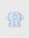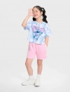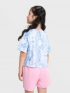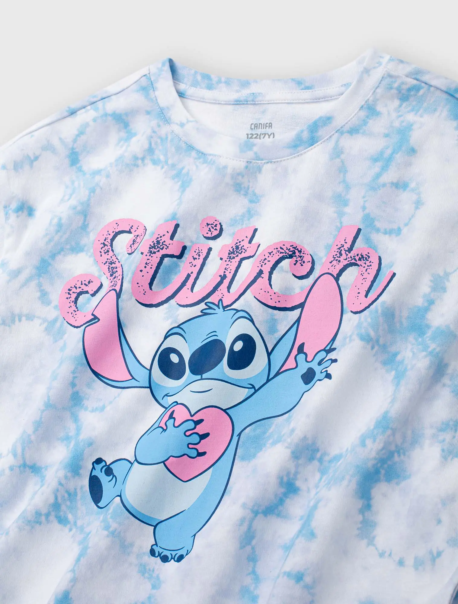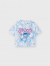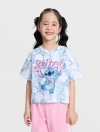 Áo thun cộc tay bé gái in hình Stitch, phom dáng crop vừa phải tạo sự khỏe khoắn cá tính cho các bé, hình in nhân vật đáng yêu, chất liệu cotton thoáng mát phù hợp cho thời tiết mùa hè.