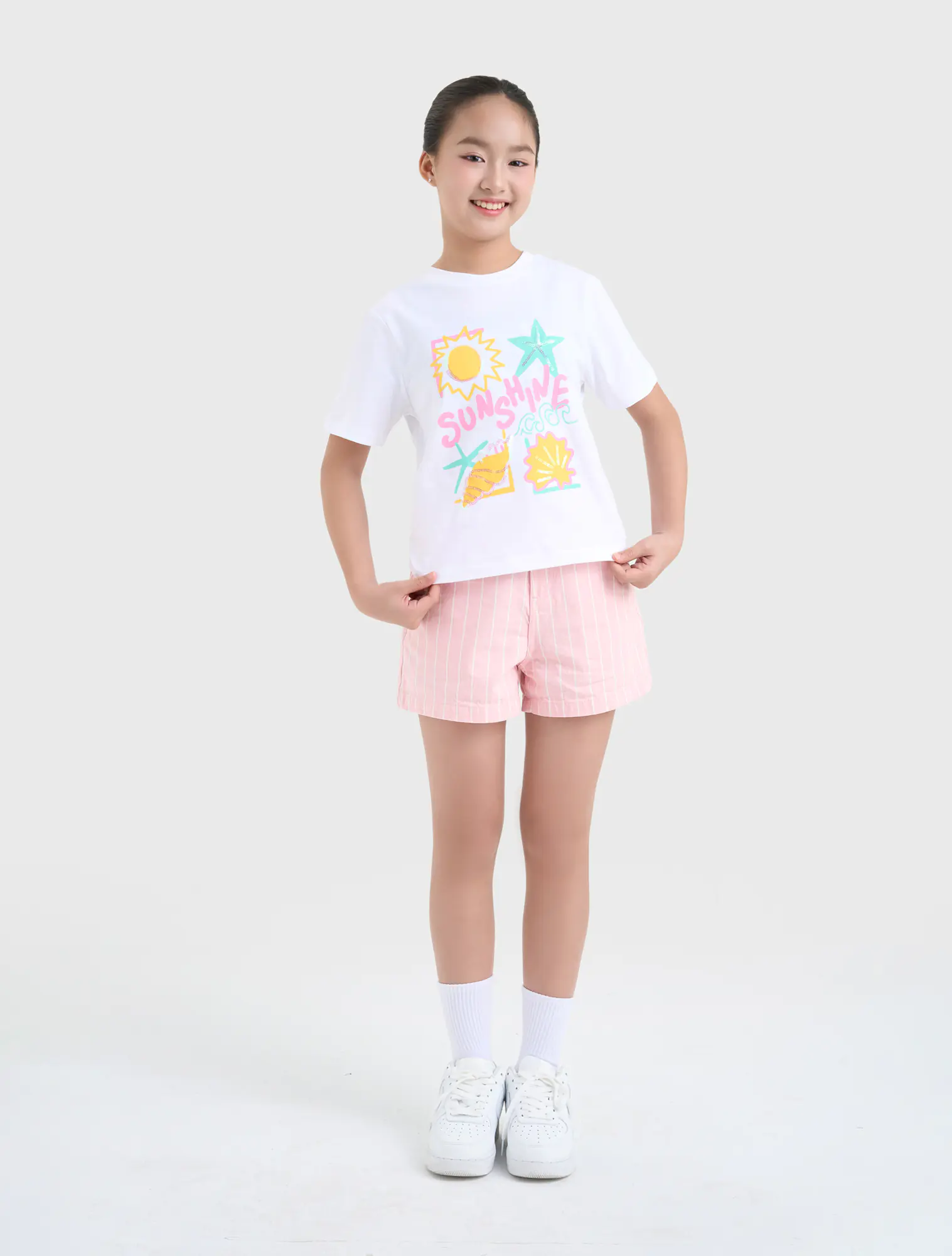 Áo phông bé gái cotton USA dáng croptop có hình in