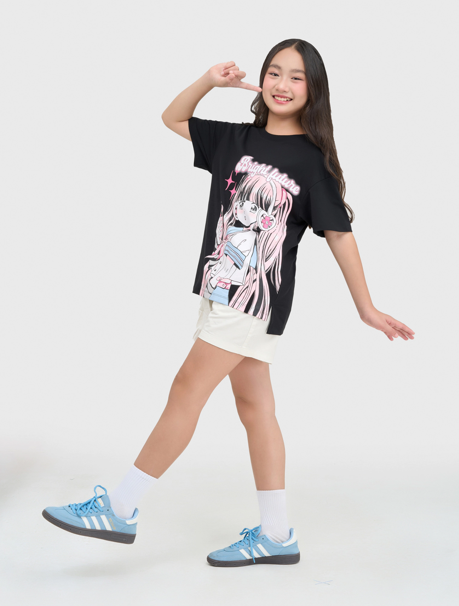 Áo phông bé gái, chất liệu 100% cotton USA thoáng mát, dáng oversize. Hình trang trí cá tính đúng sở thích của nhóm tuổi teen.