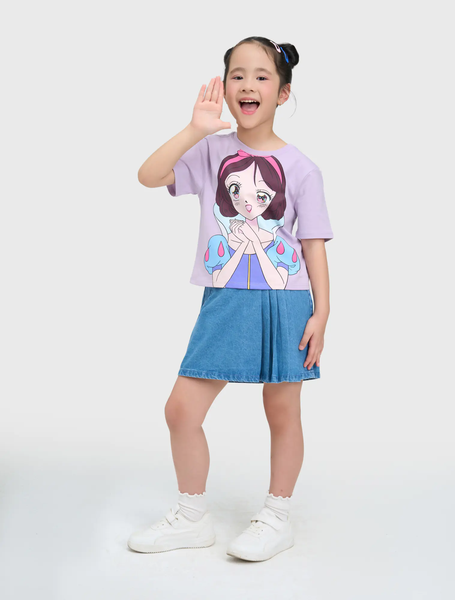Áo phông bé gái dáng ngắn thời trang, hình in, màu sắc nữ tính, đáng yêu, thích hợp nhiều hoàn cảnh sử dụng.