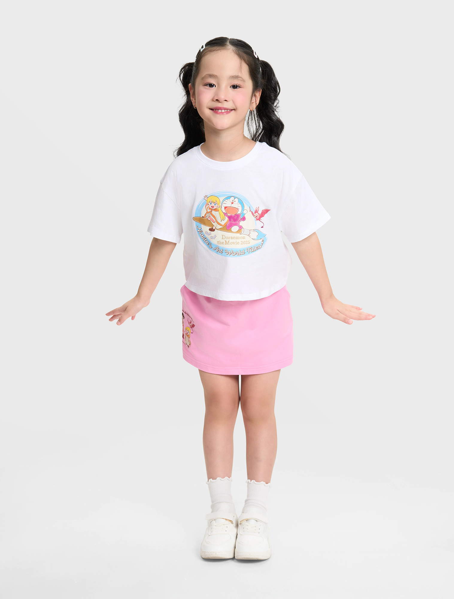 Áo phông cho bé gái với màu sắc tươi sáng và hình in Doraemon dễ thương. Màu sắc ngọt ngào, dáng crop-top năng động, dễ phối đồ. Chất liệu cotton mềm mịn, êm ái thoáng mát cho mùa hè.